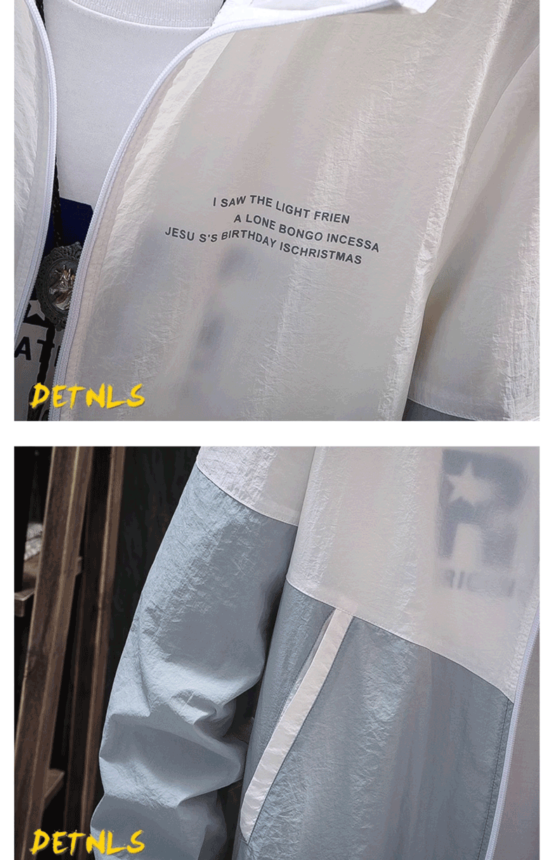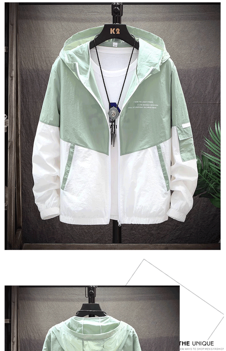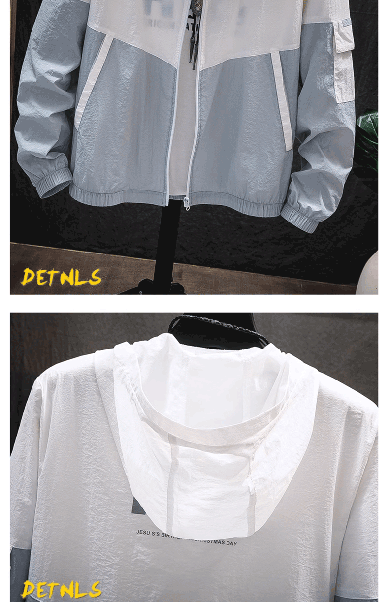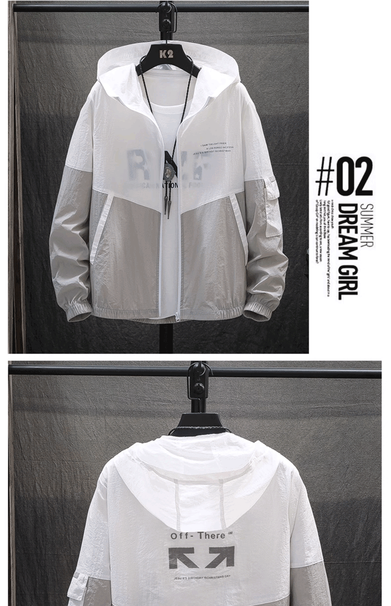 Woodpecker Ice Silk Sun Protection Jacket Men's Summer Thin Breathable Hooded Fishing Cycling Casual Outdoor Men's Jacket Top White and Bottom Blue XL