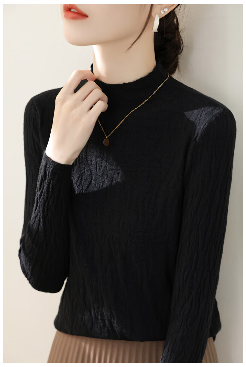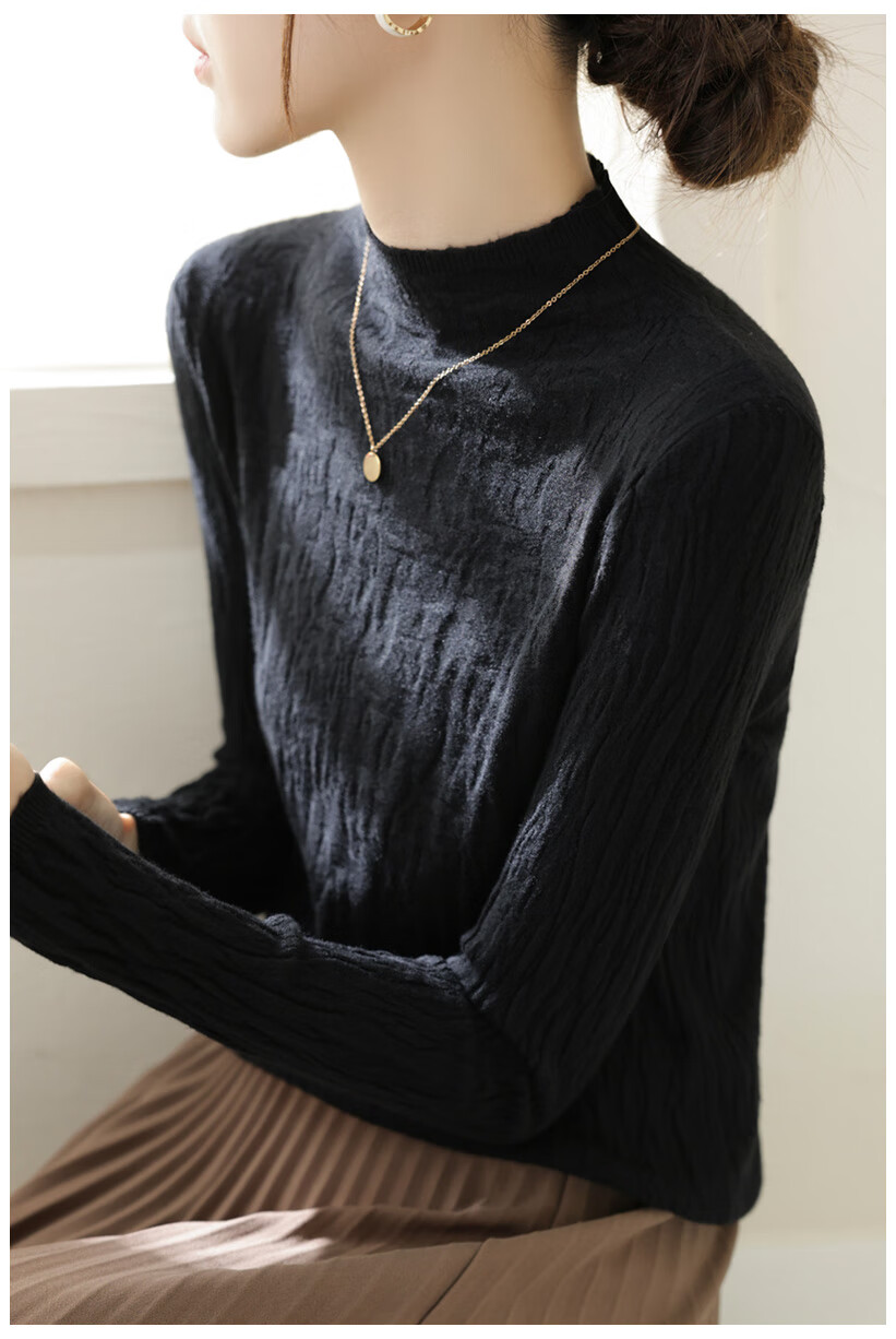 Yu Zhaolin (YUZHAOLIN) soft and waxy half-high collar knitted bottoming shirt with texture for women in autumn and winter new style with high-end western style slim sweater black