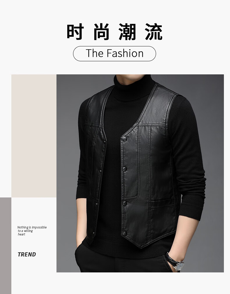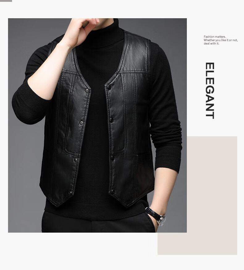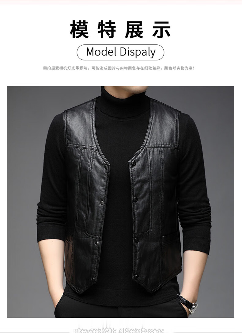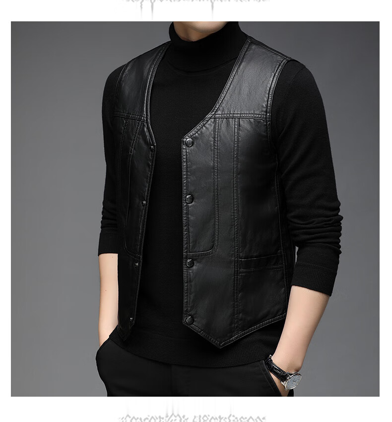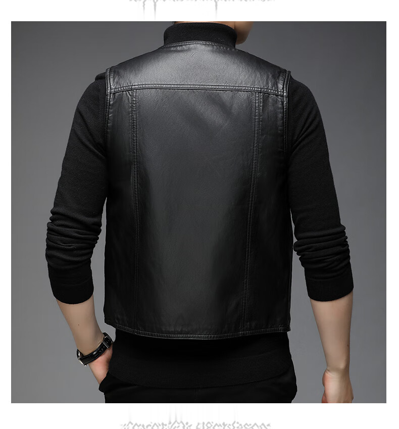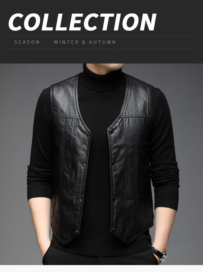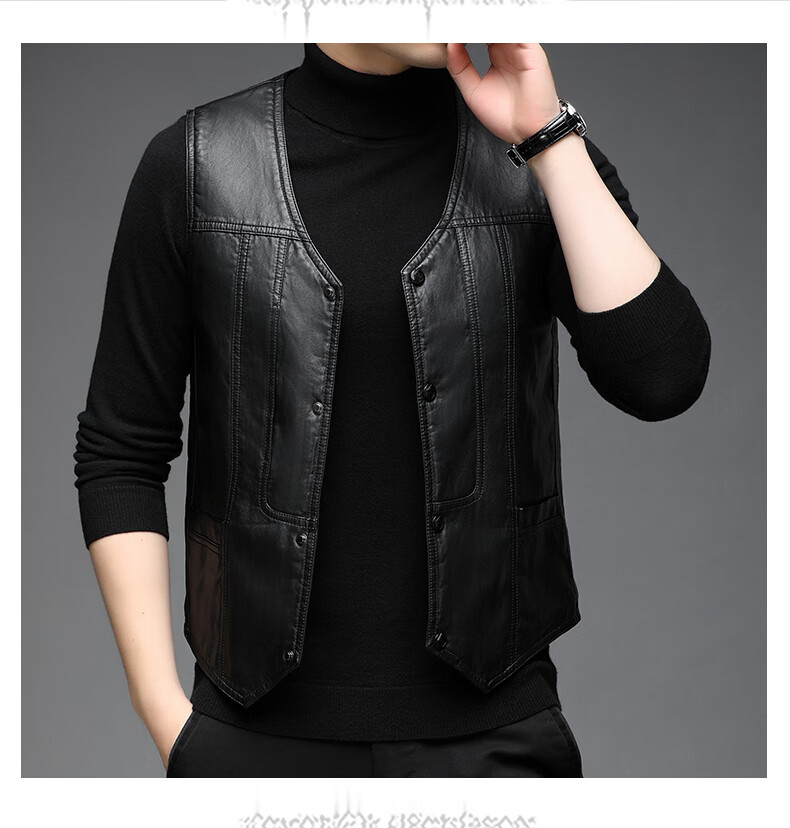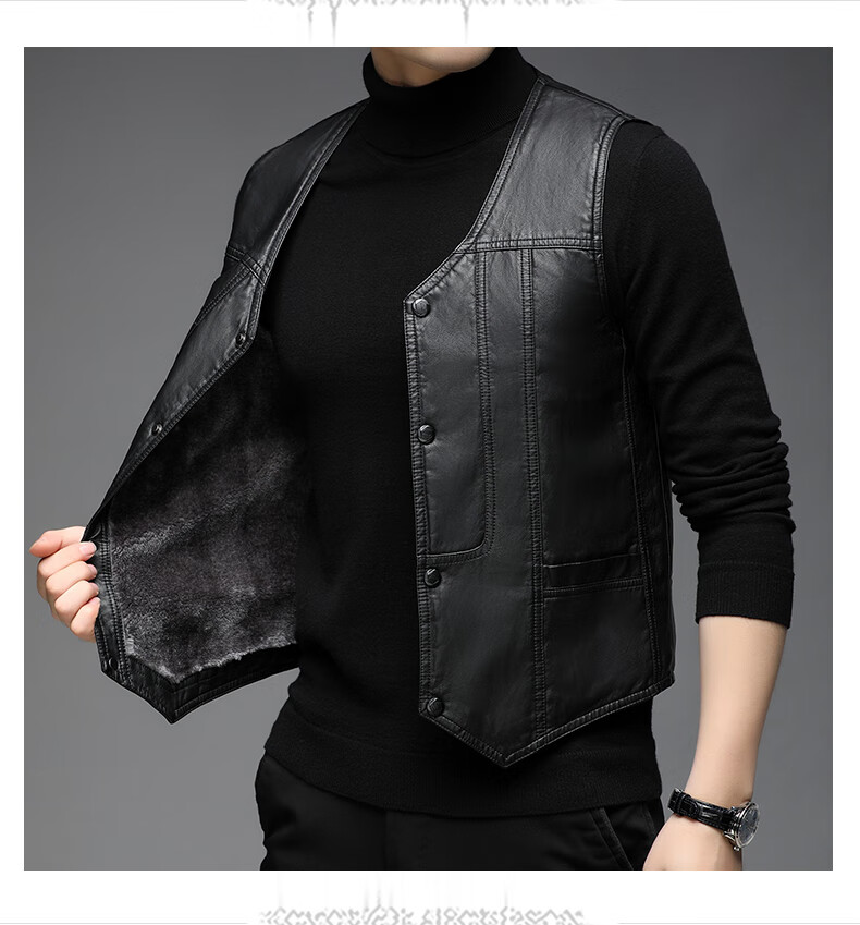 ROMON men's autumn and winter new sleeveless PU leather vest, fashionable and casual, velvet and thickened, trendy and can be worn outside, warm vest