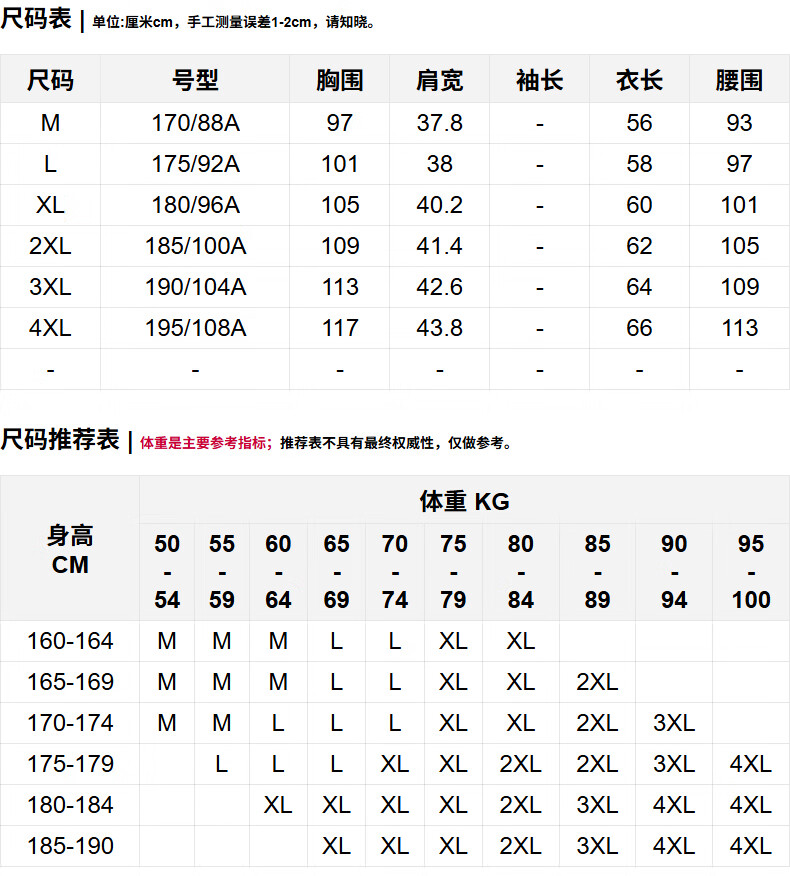 China (cm) 160-165/84-86 165-170 / 88-90 167-172 / 92-96 168-173 / 98-102 170-176 / 106-110
