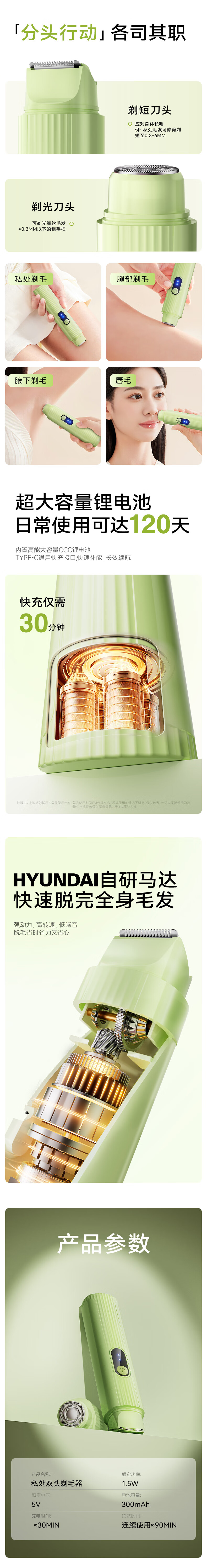 HYUNDAI double-head electric private part shaver for men and women, vaginal armpit hair removal instrument, hand hair and leg hair shaver, lip hair shaver, whole body, private part, birthday and Christmas gift