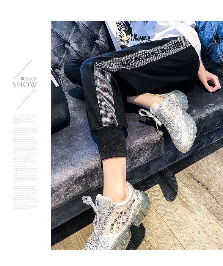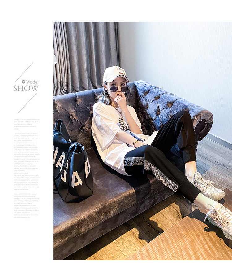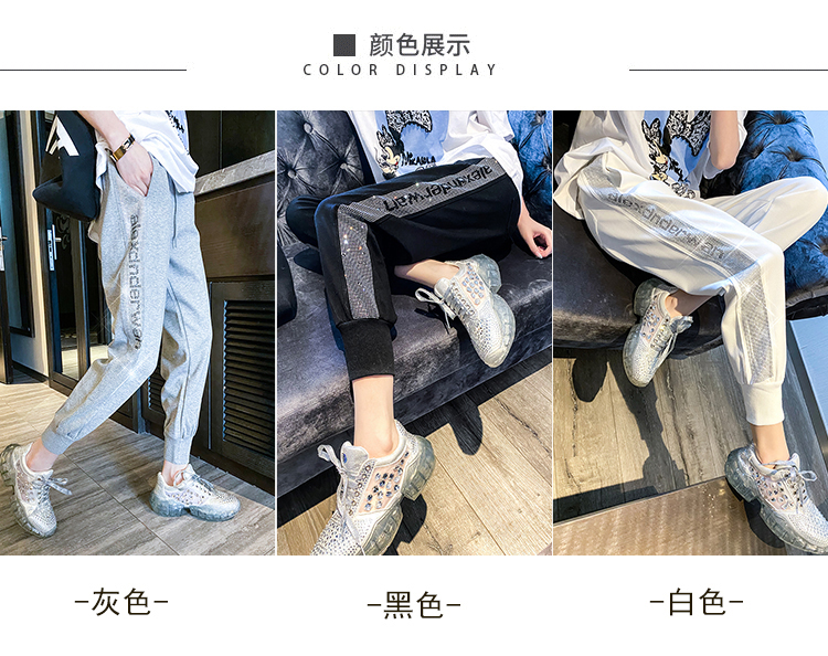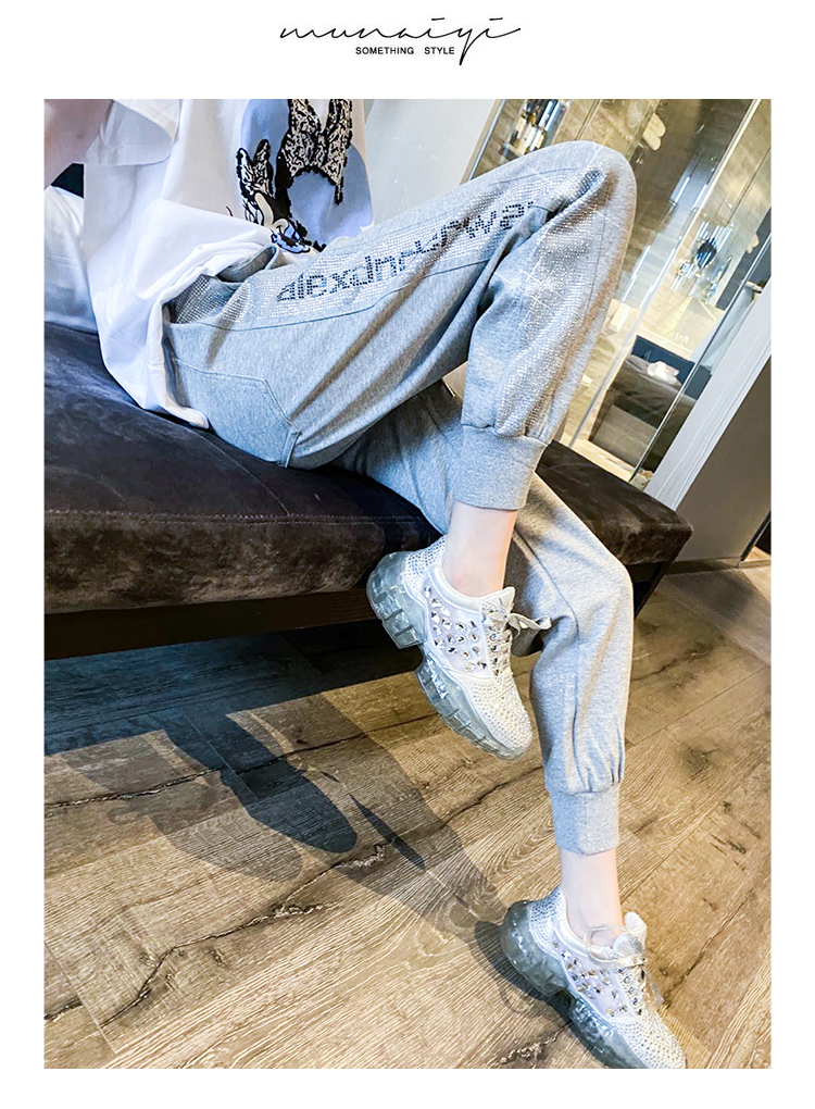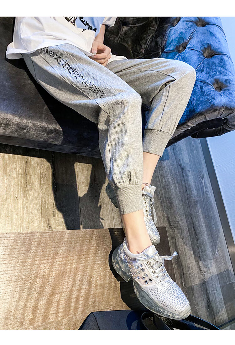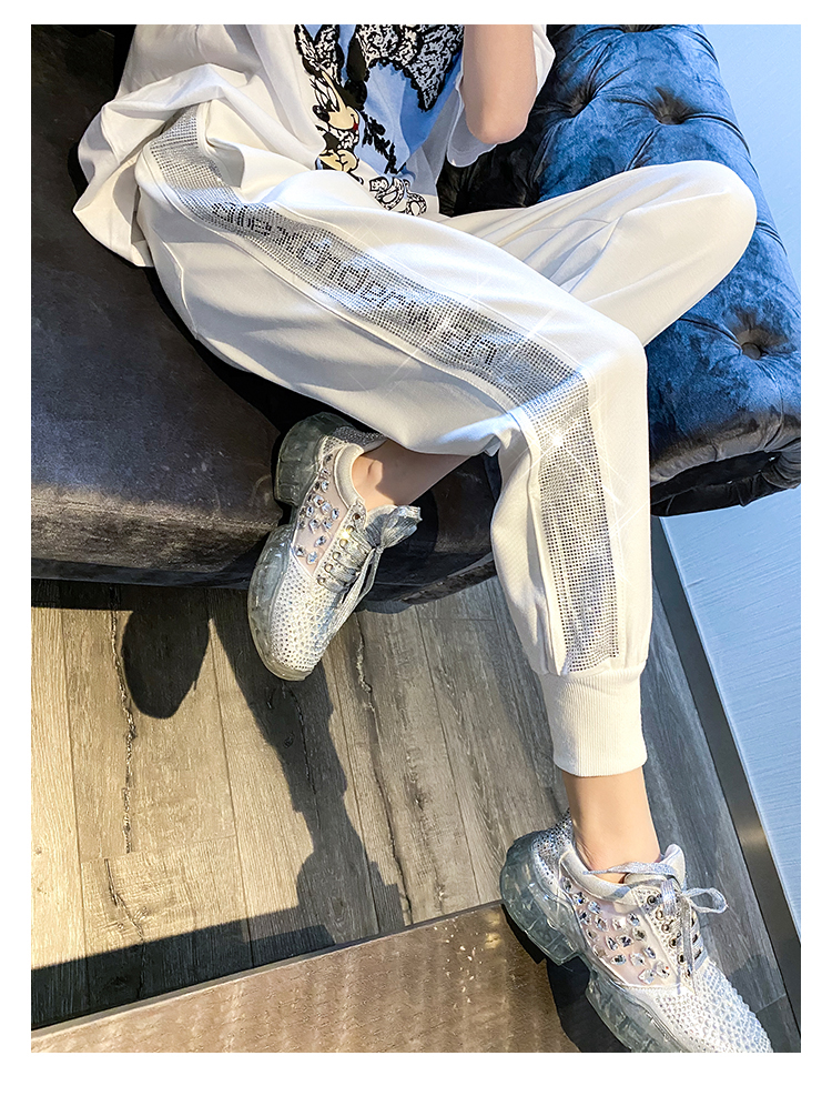 Mad Cortes Design Trendy Brand Sports Casual Pants Women's Summer Trendy Hot Diamond Nine-Point Pants Loose and Versatile Harem Pants White M