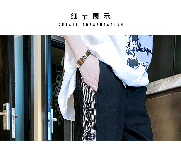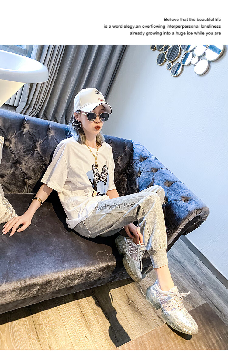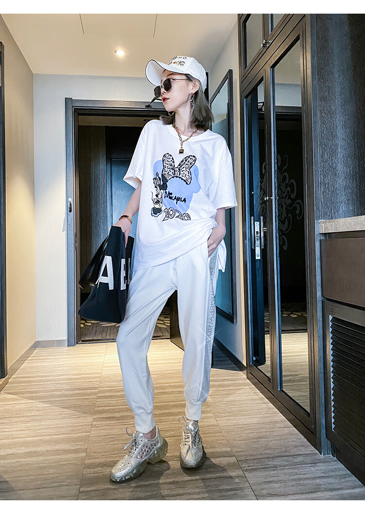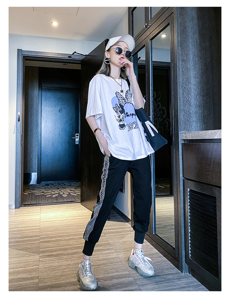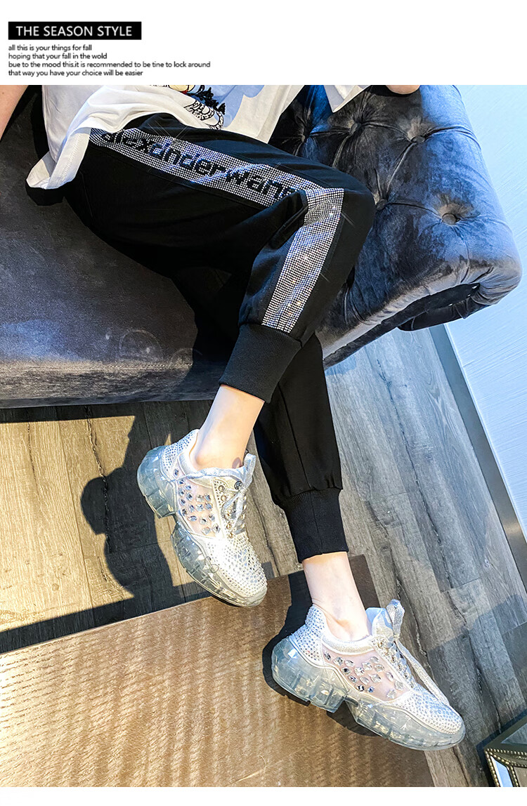 Mad Cortes Design Trendy Brand Sports Casual Pants Women's Summer Trendy Hot Diamond Nine-Point Pants Loose and Versatile Harem Pants White M