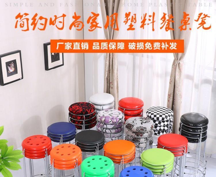 铁凳子圆的 叠放软面休闲软垫圆形快餐店简约家用铁发廊圆凳子的钢筋坐凳矮 黑色 1