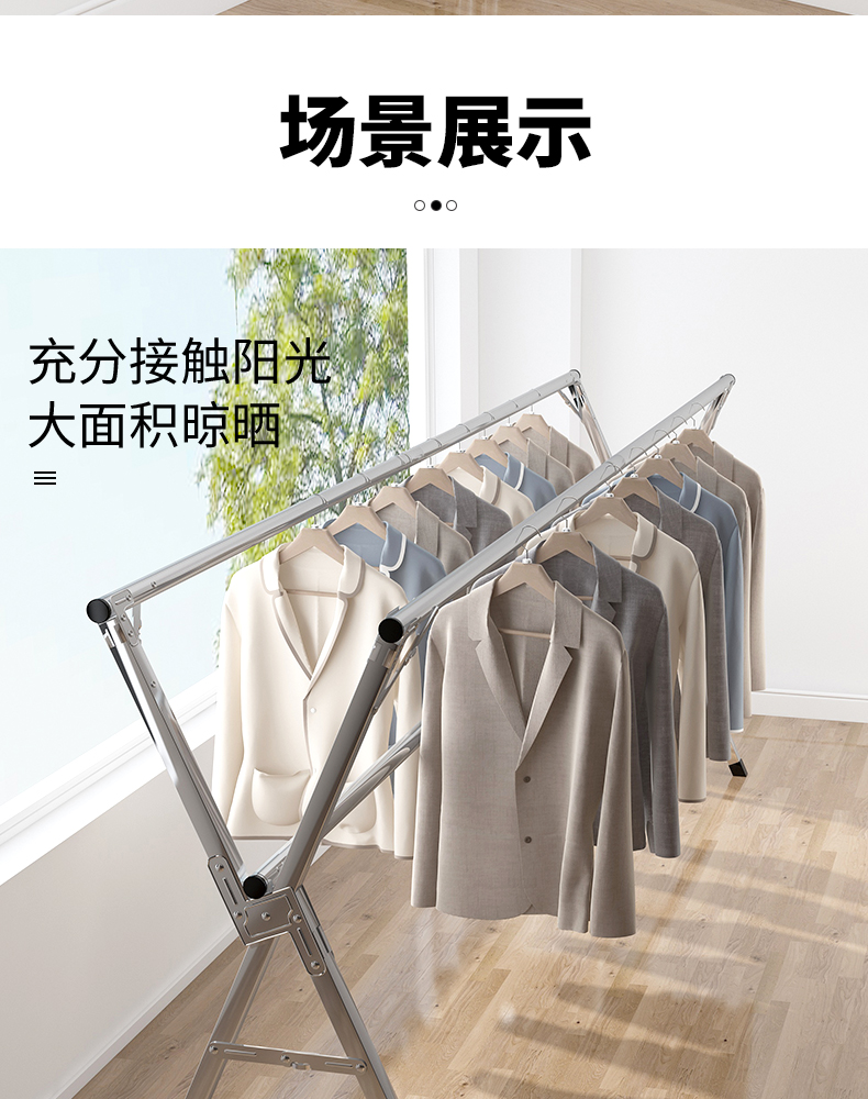 Clothes drying rack outdoor folding clothes drying rack floor-standing indoor home balcony bedroom stainless steel outdoor cool telescopic pole type quilt drying artifact bold double pole model 1.6 meters retractable contains 32 drying artifacts large