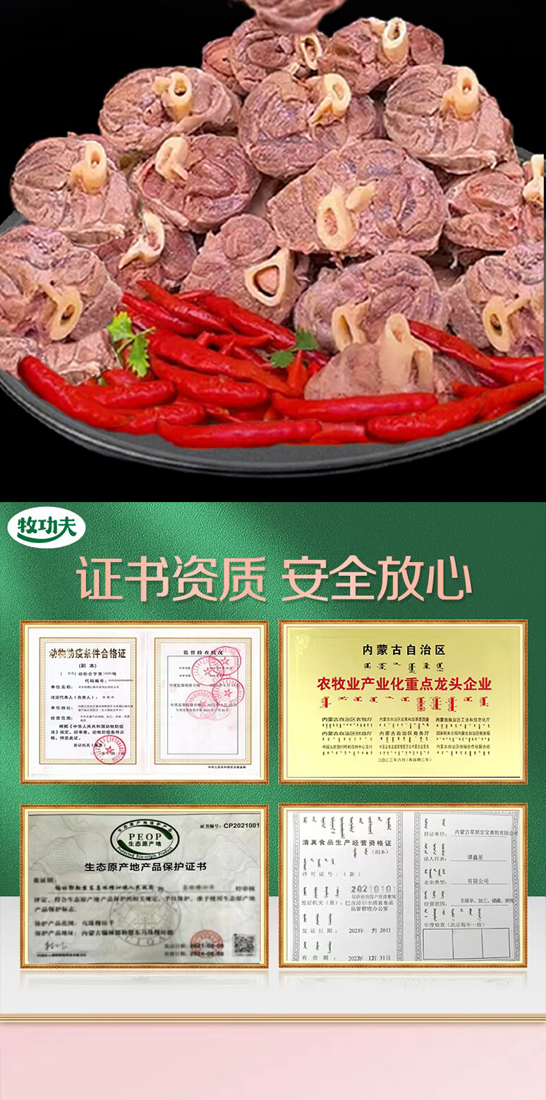 Mu Kungfu original cut lamb shank 2Jin Jin is equal to 0.5kg Inner Mongolia grassland free-range lamb grassland mutton roll hot pot ingredients