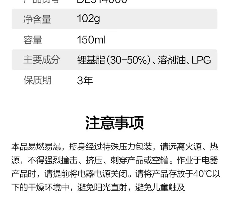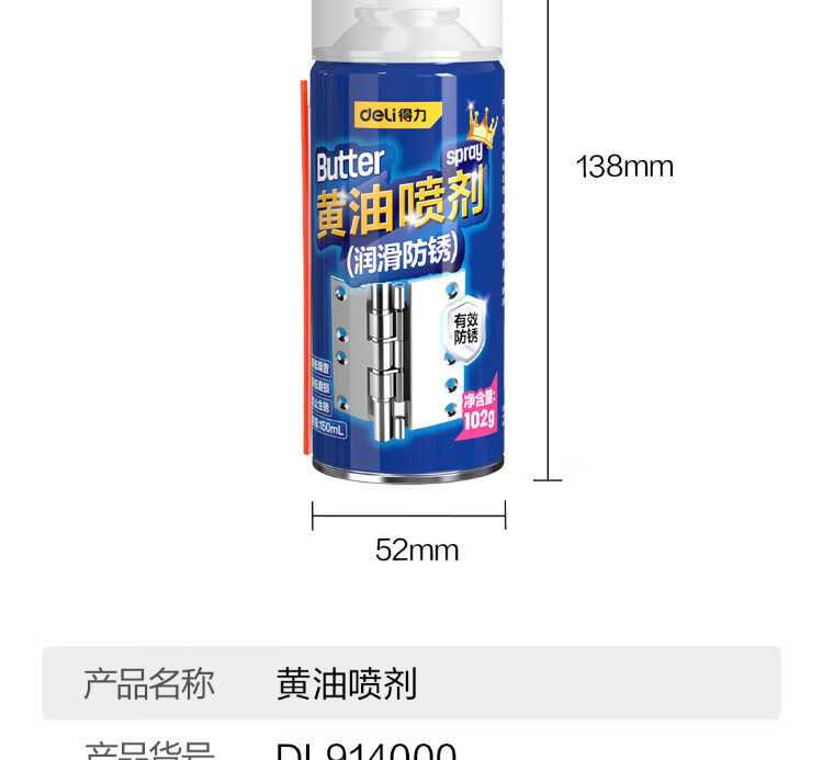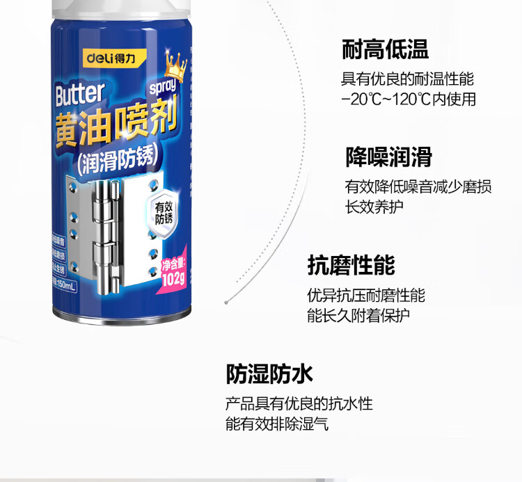 Deli liquid butter spray high temperature resistant door lock bearing gear abnormal noise mechanical lubrication butter grease anti-rust and anti-corrosion 150ml