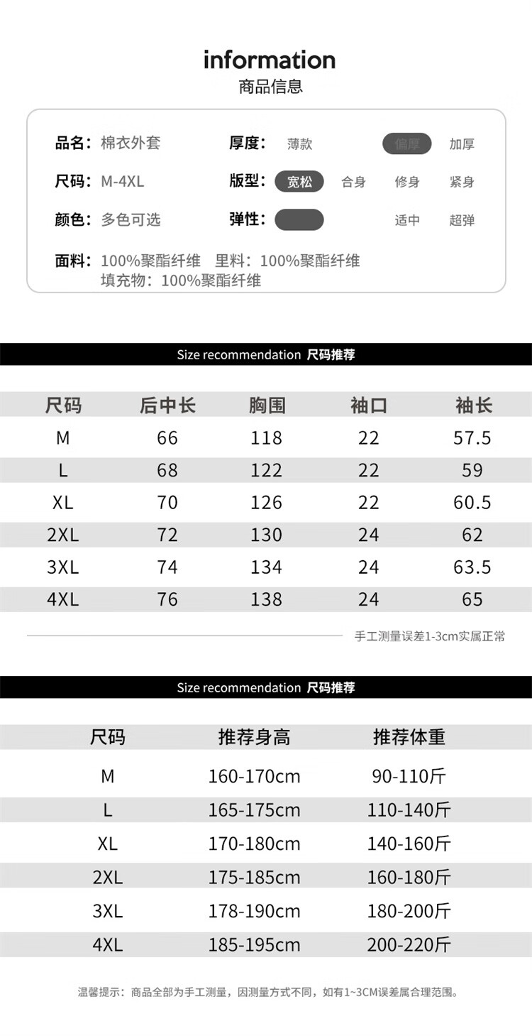 China (cm) 165 / 88-90 170 / 96-98 175 / 108-110 180 / 118-122 185 / 126-130