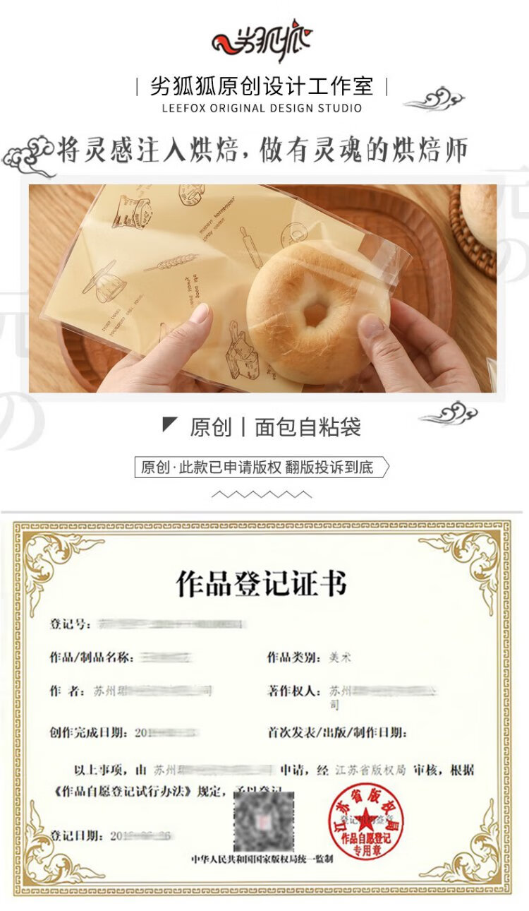 Bad Fox Bread Packaging Bag Self-adhesive Bag 16*12.8cm Baked Toast Bagel Ou Bao Donut Self-sealing Small Bag