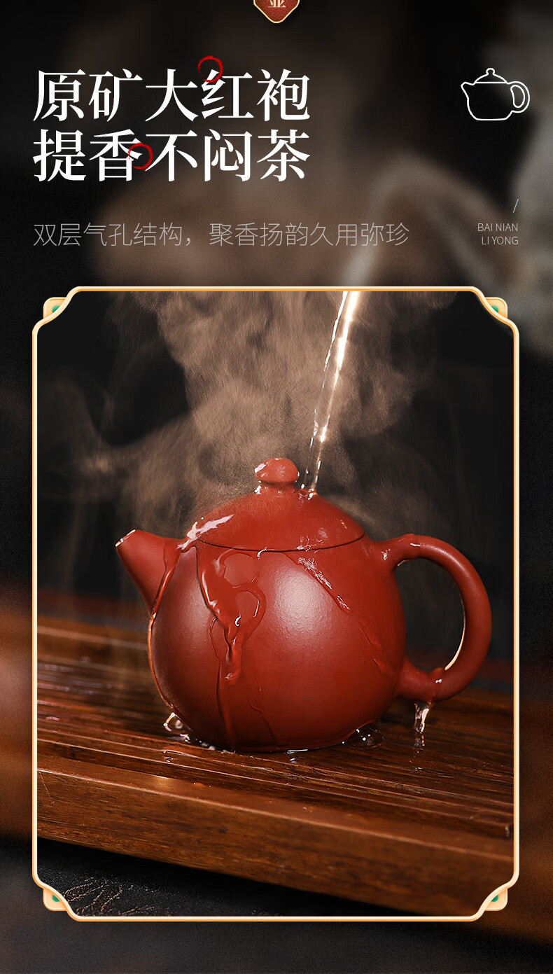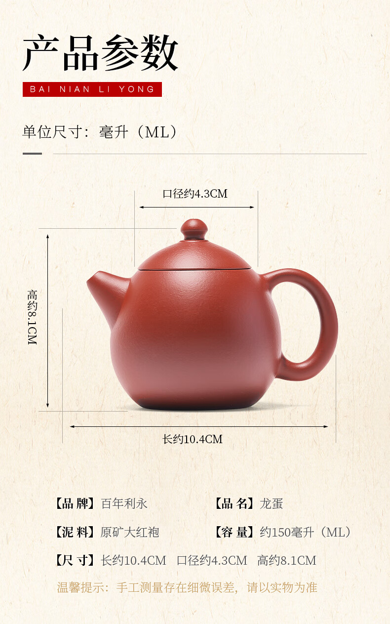 Centennial Liyong Yixing Zisha Pot Famous Handmade Raw Mineral Dahongpao Dragon Egg Home Kung Fu Tea Set as a Gift for Yourself Dahongpao 150ml