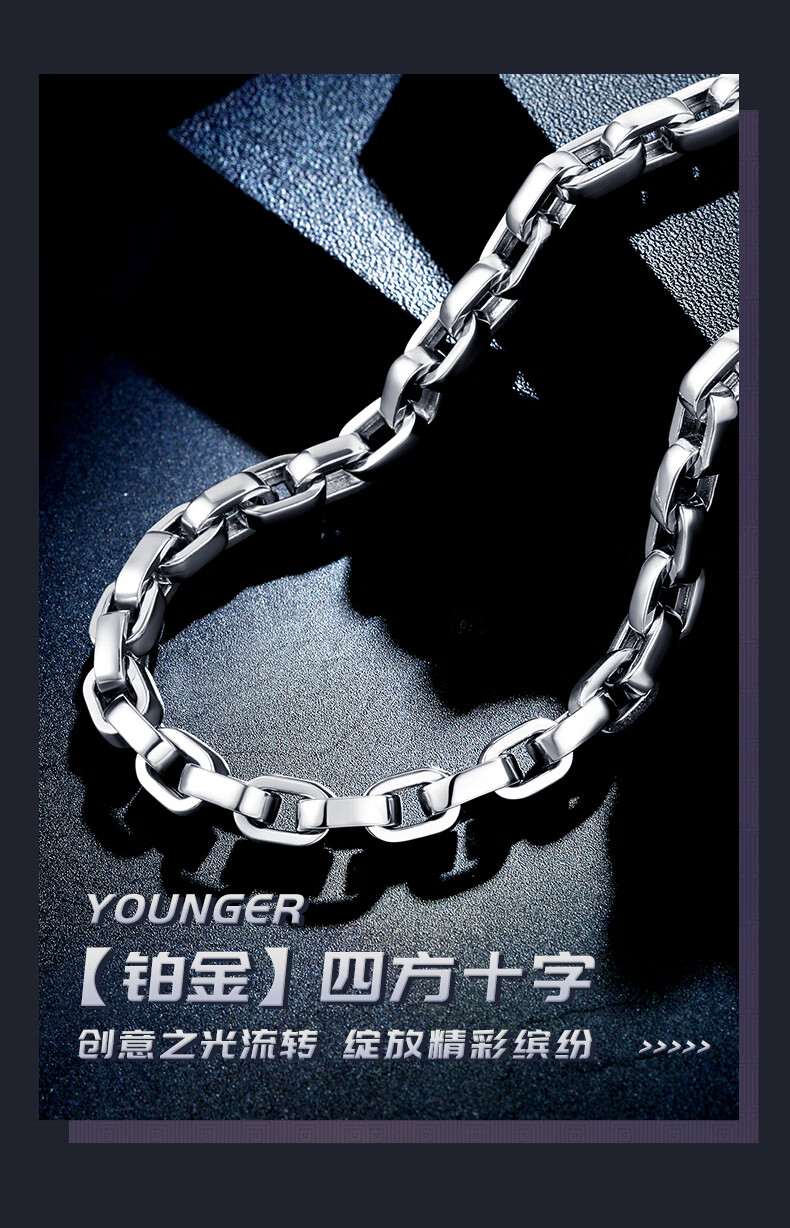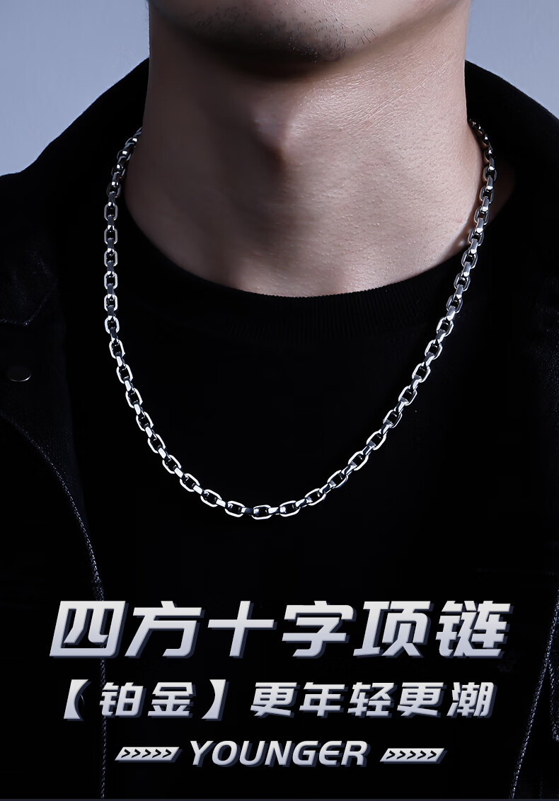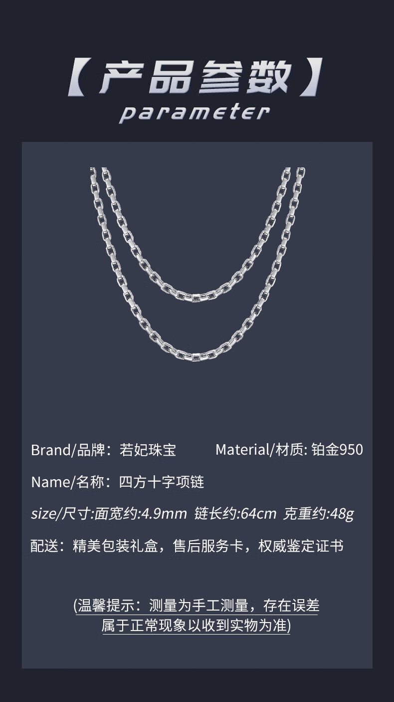 Ruofei Men's Platinum Necklace pt950 Platinum Men's Chain Fashion Square Chain Large Weight Boss Chain Clavicle Chain Platinum Jewelry Do Not Buy Deposit Order Specifications