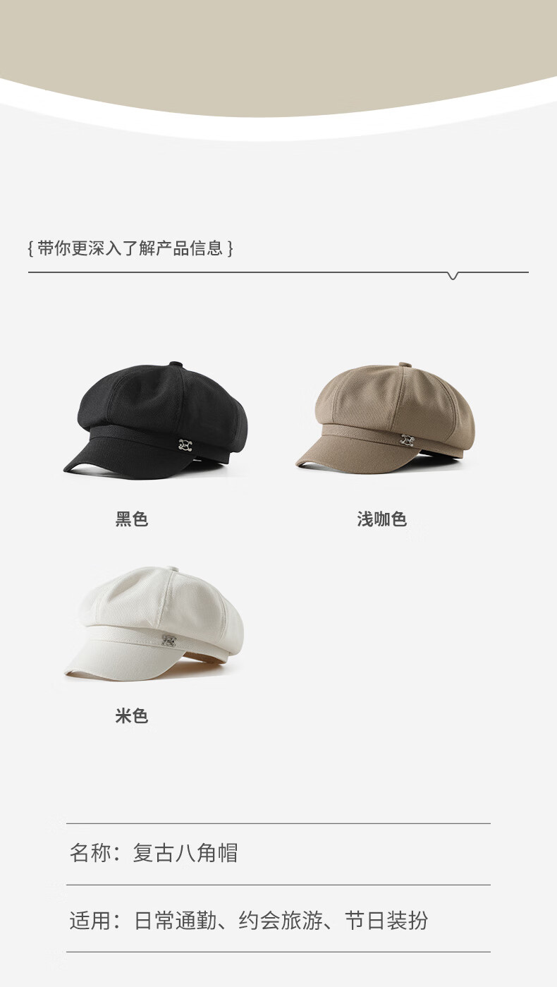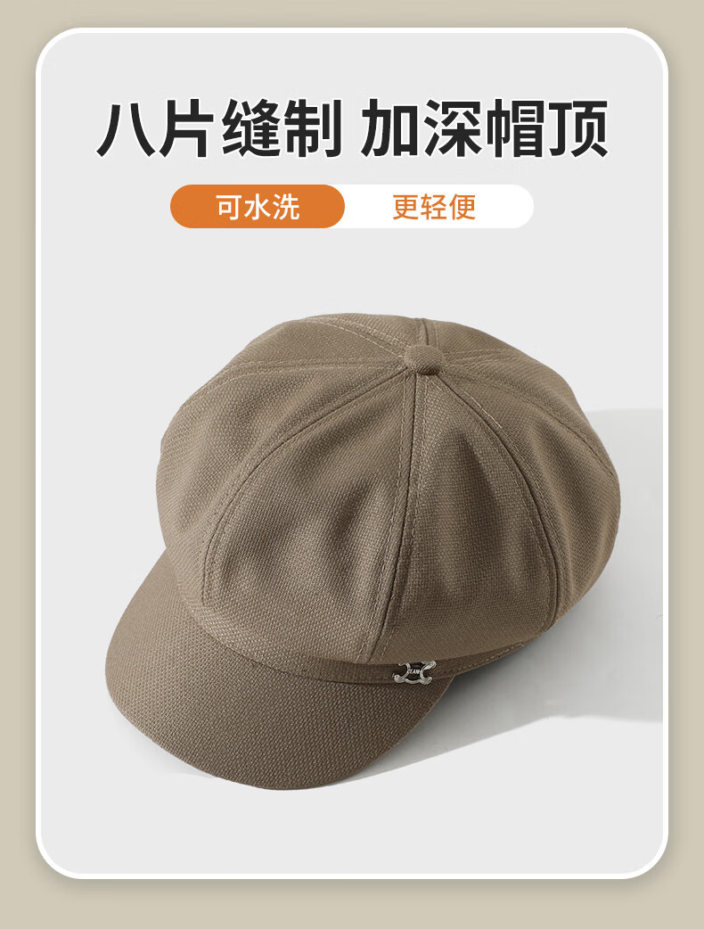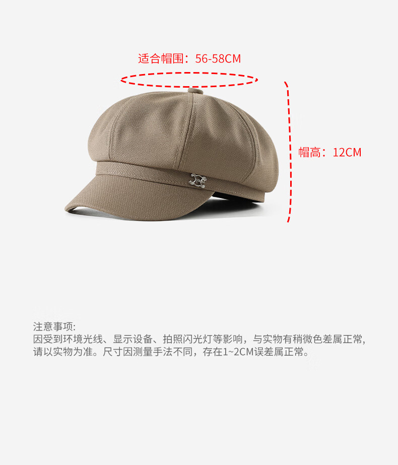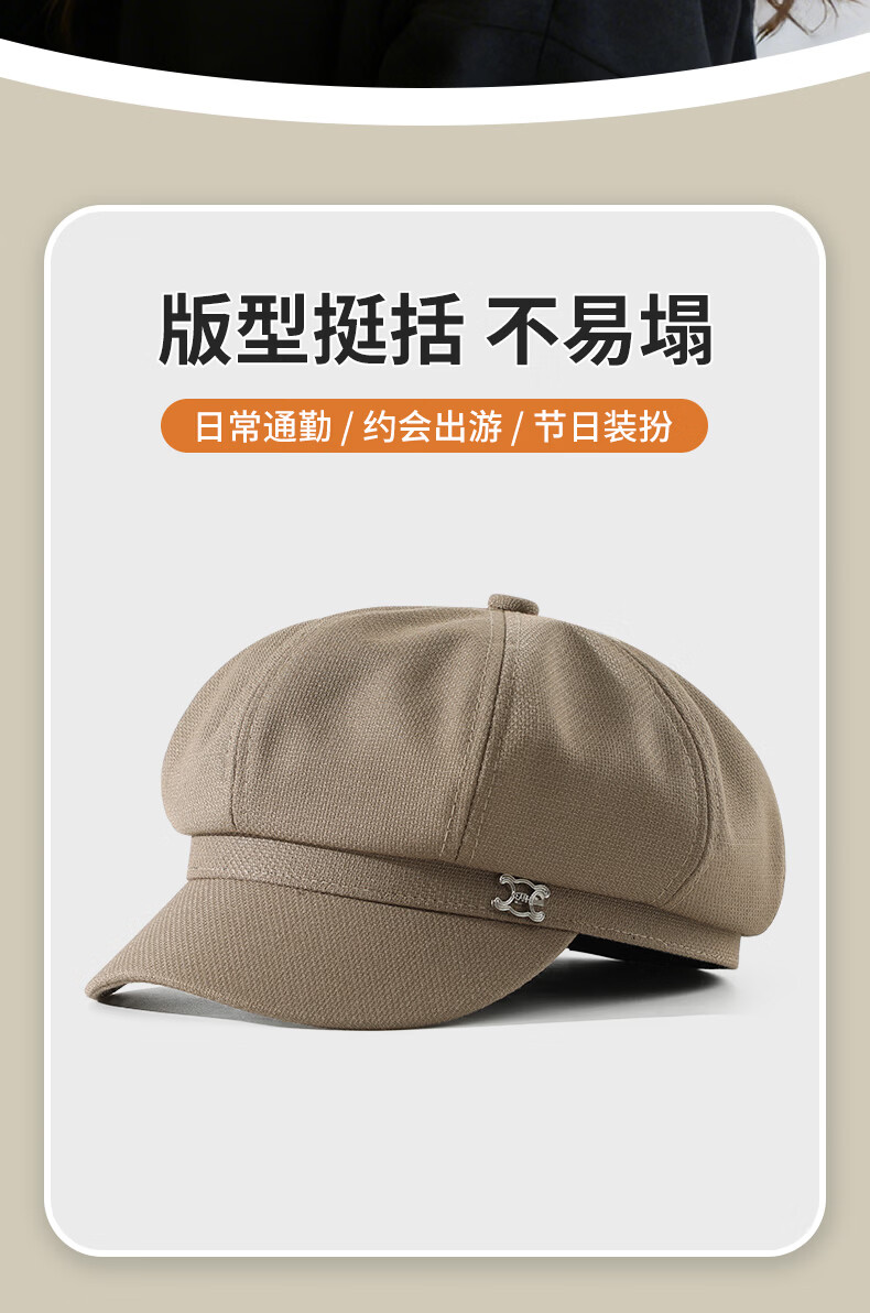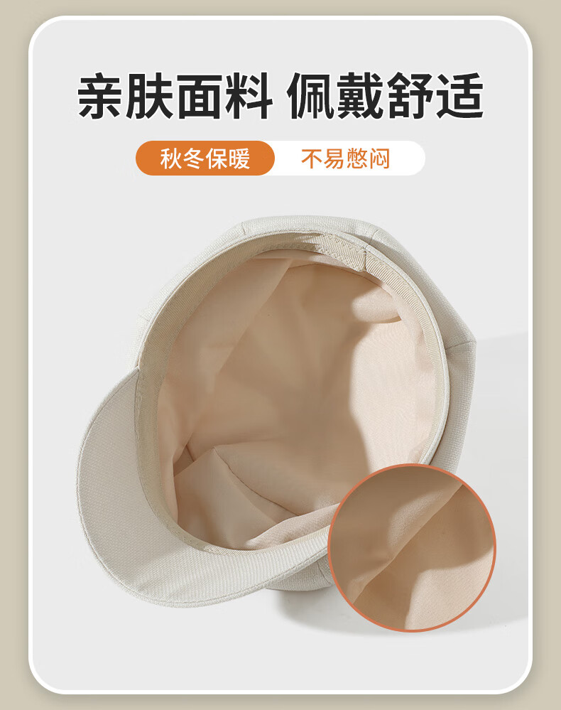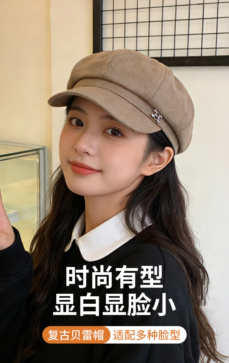 Seven-color spun beret for women in autumn and winter, simple, casual, versatile, big head circumference, small face, fashionable retro ladies hat, light coffee