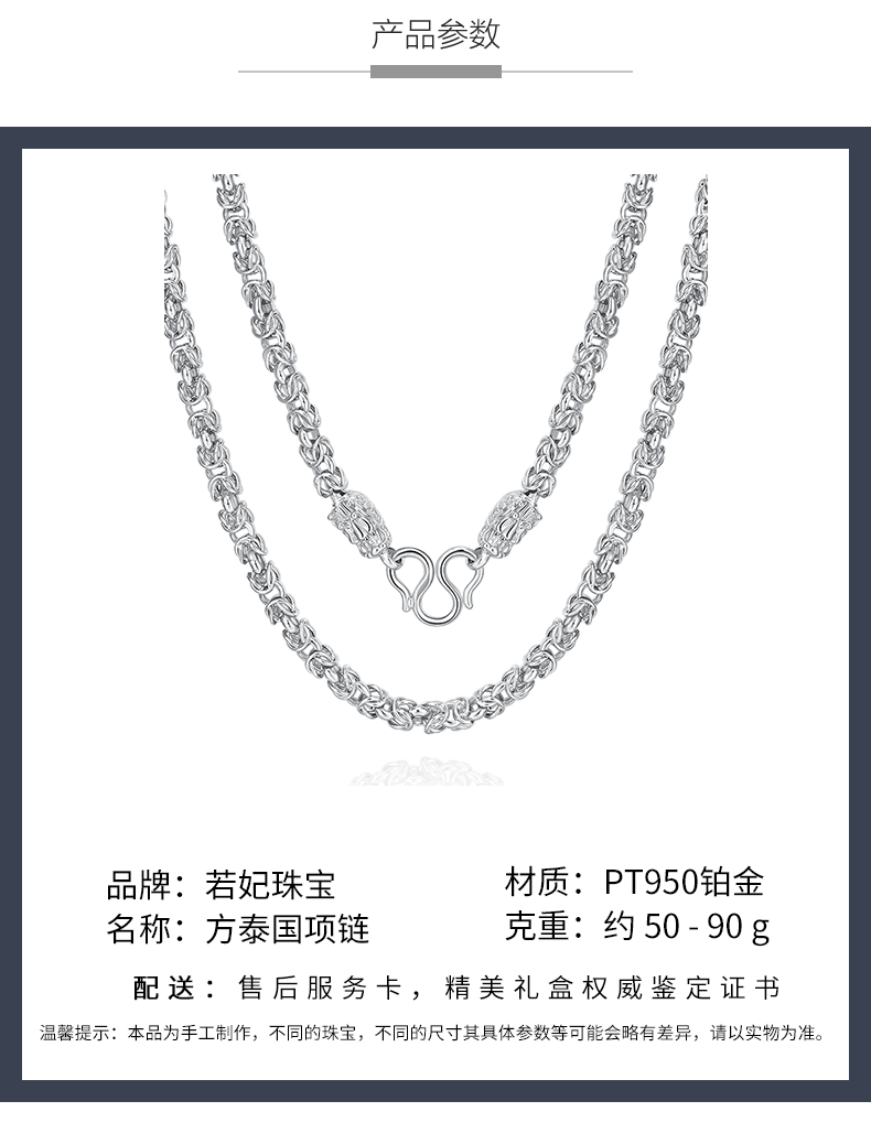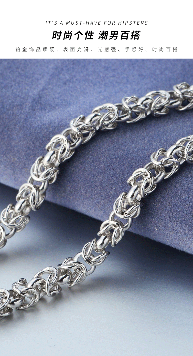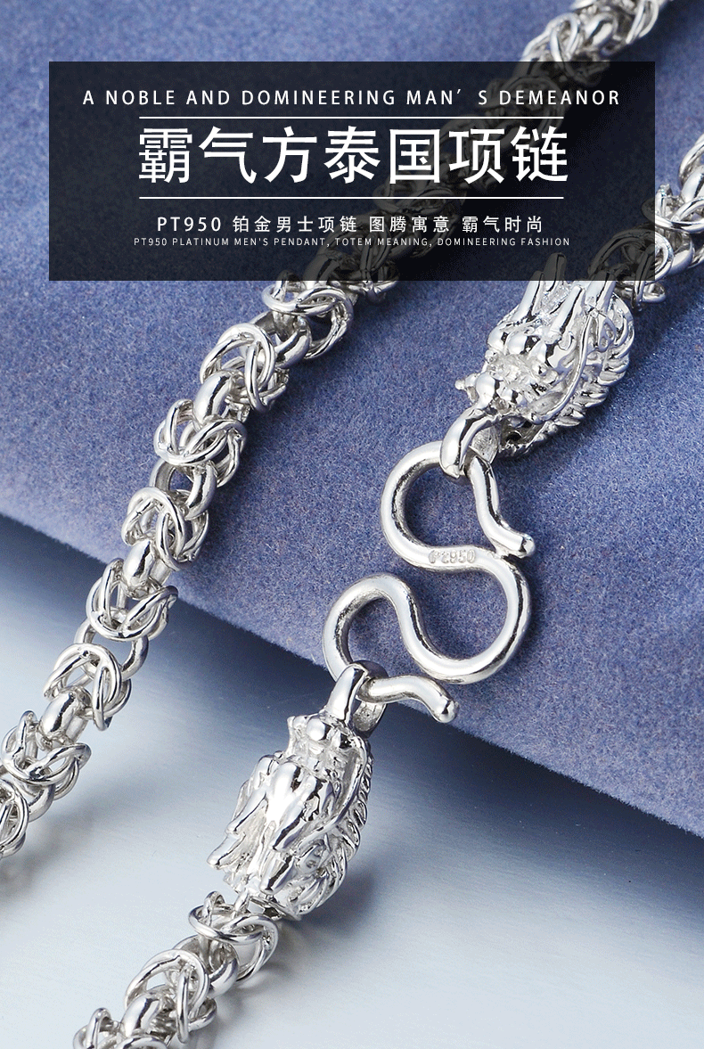 Ruofei men's platinum necklace pt950 platinum men's chain domineering thick chain faucet buckle chain fashionable gold chain platinum jewelry platinum 950 50-52 cm 52-54 g