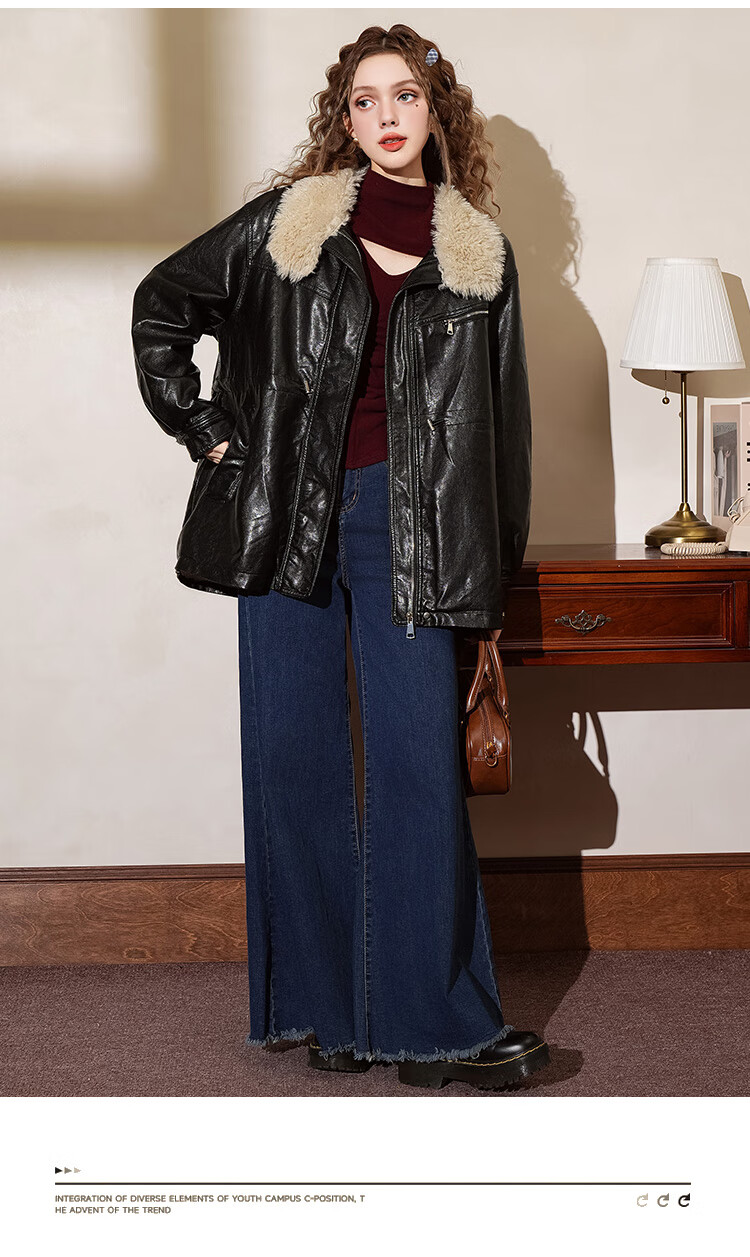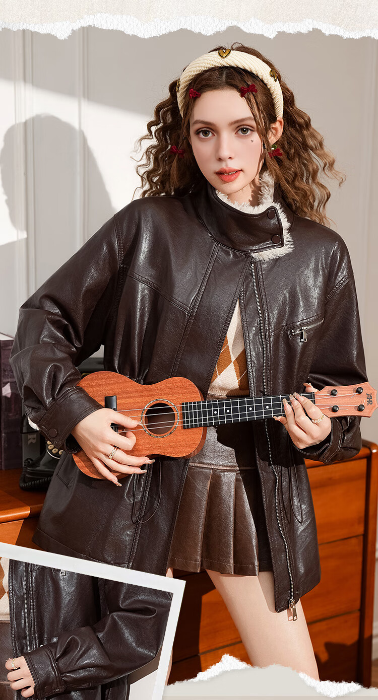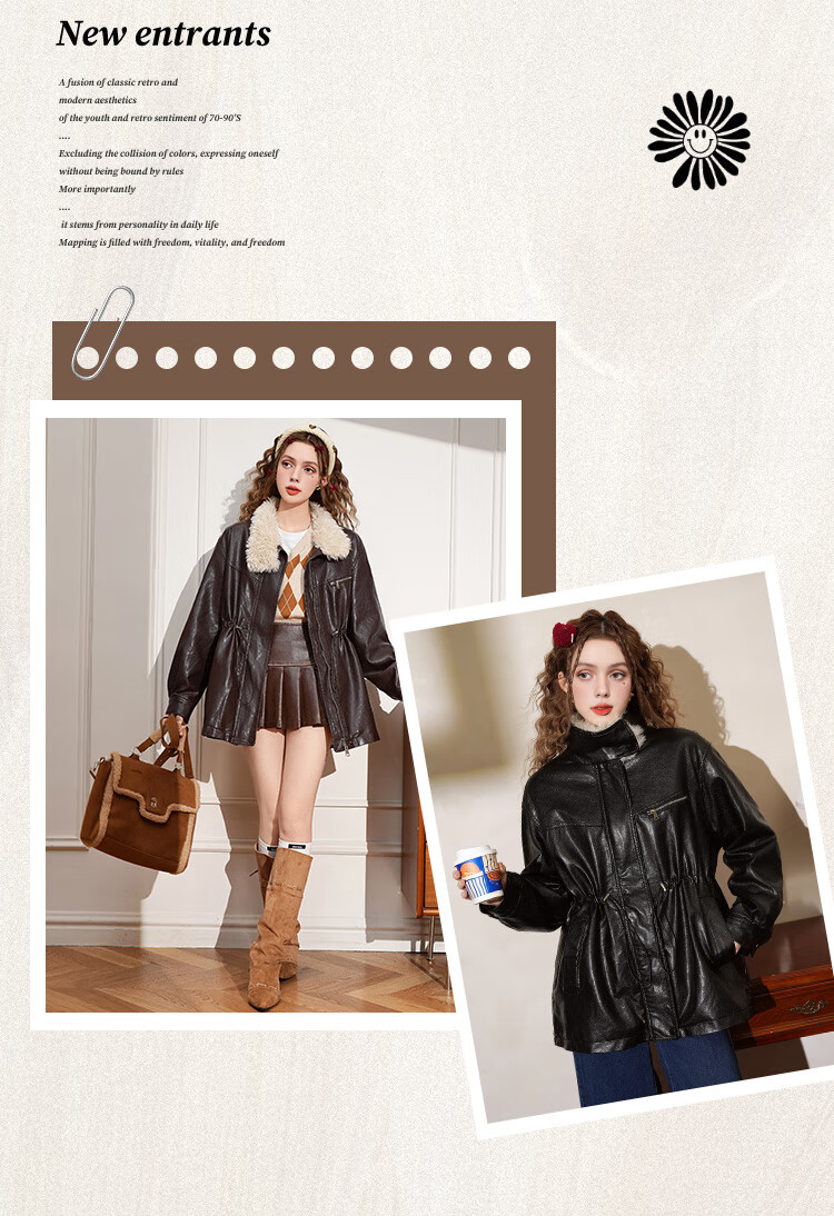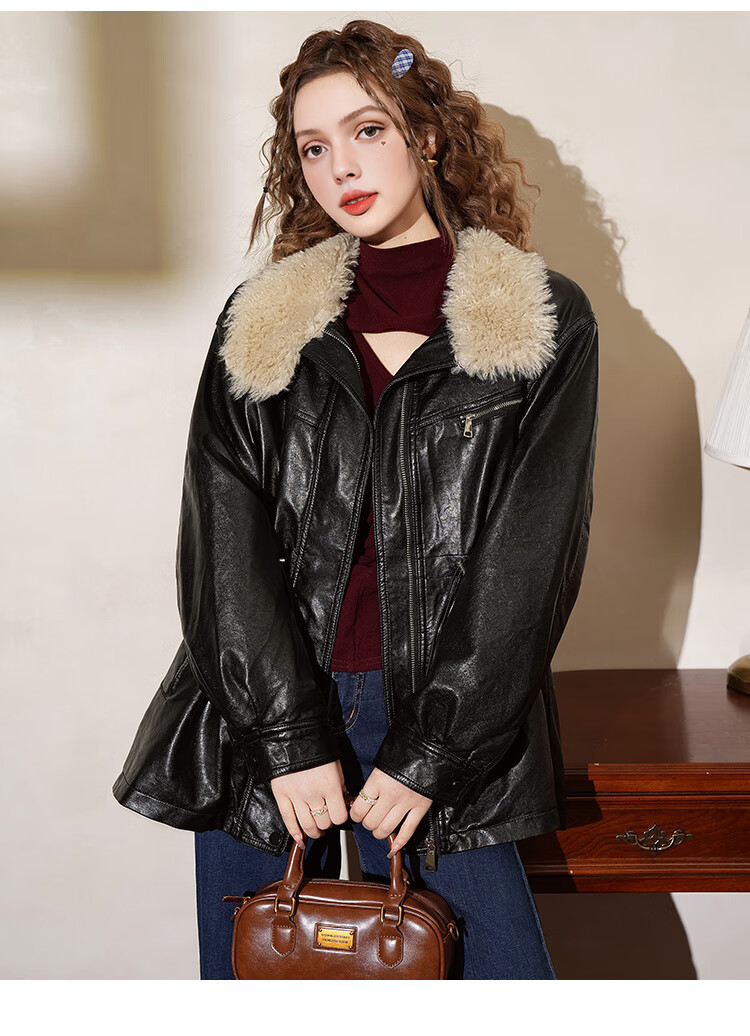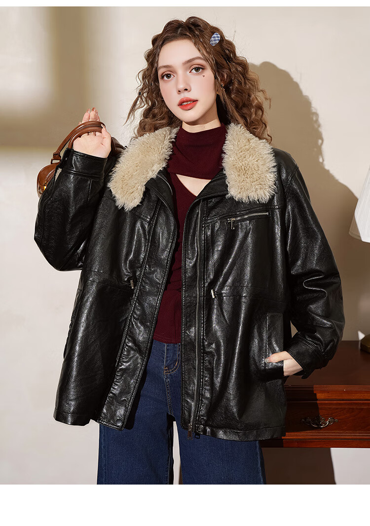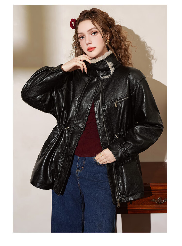 TERRE BLEUEpu leather jacket women's velvet thickened 2025 winter new style high-end small waist cotton-padded jacket for women