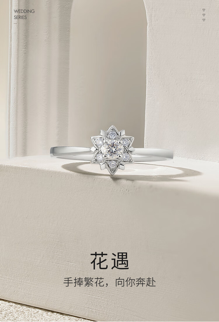 Saturday Fortune (ZLF) 18K gold diamond ring women's flower cluster set sparkling proposal wedding diamond ring T 11