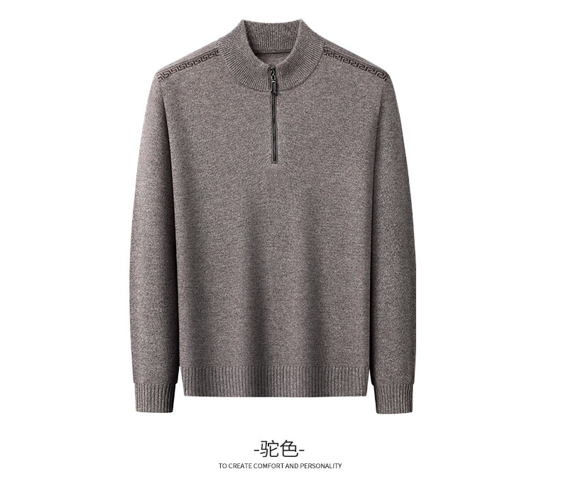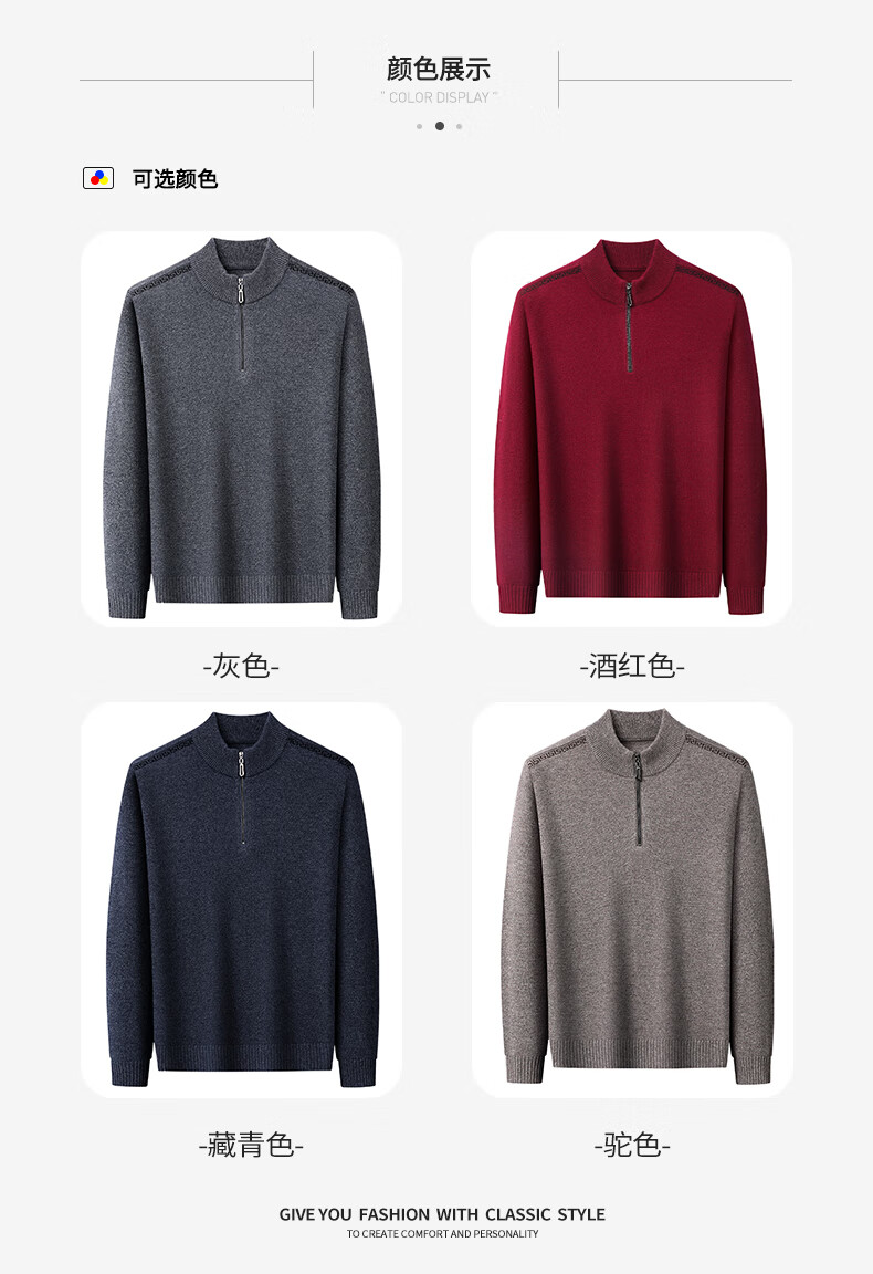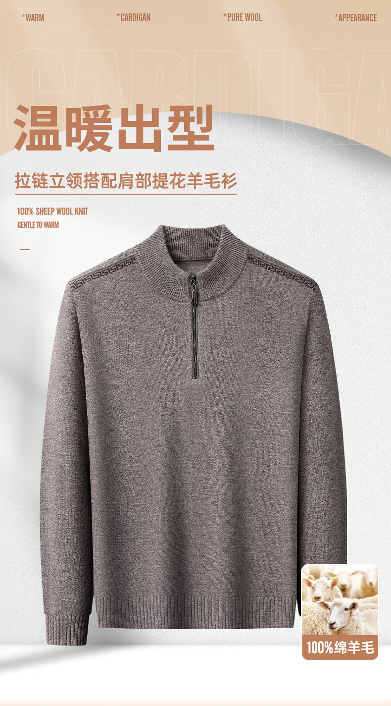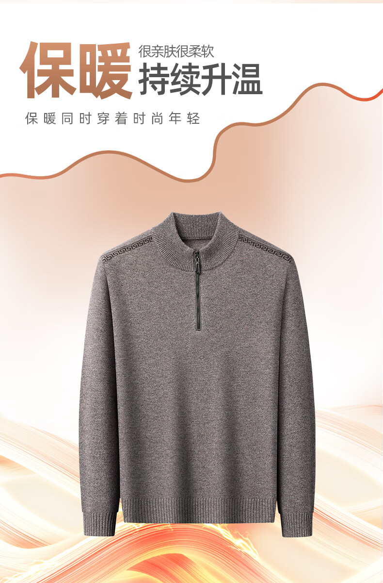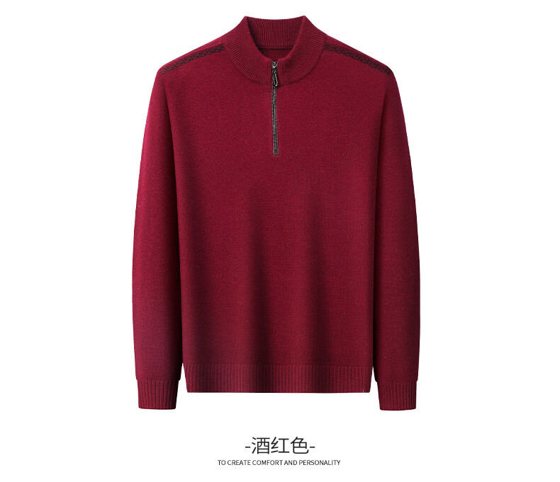 恒源祥羊毛衫男士加厚100%纯羊毛冬季新款红色毛衣拉链半高领打底针织衫