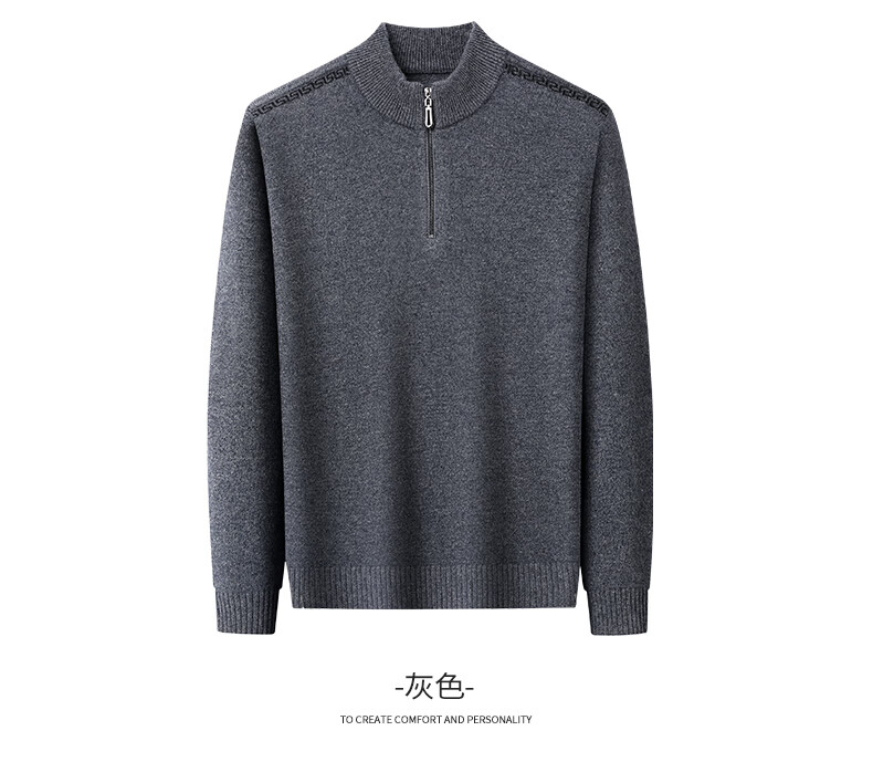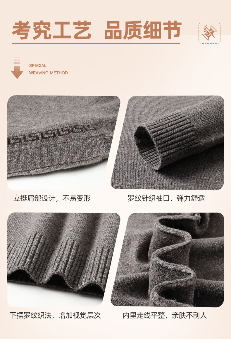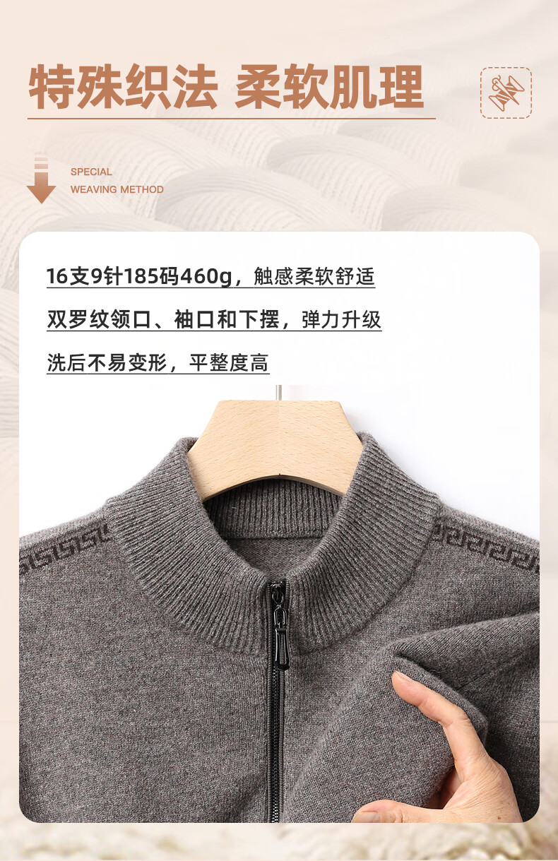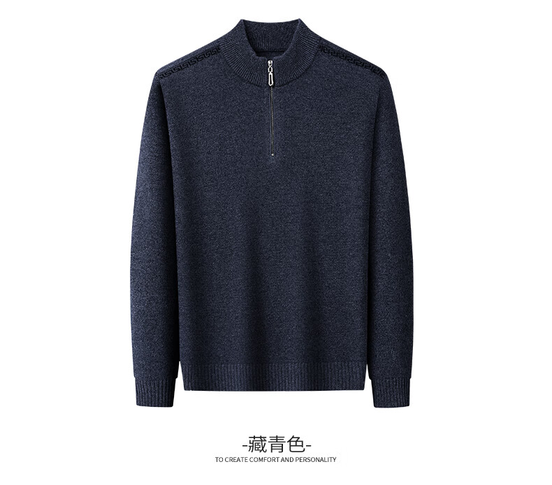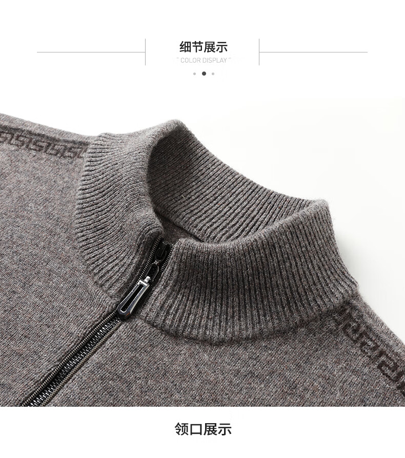 恒源祥羊毛衫男士加厚100%纯羊毛冬季新款红色毛衣拉链半高领打底针织衫