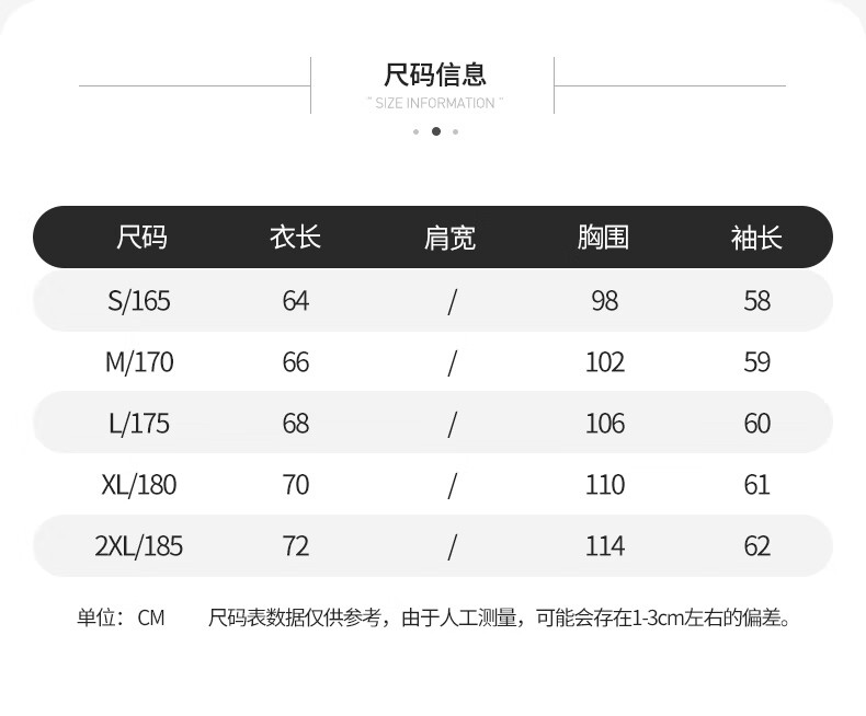 China (cm) 165 / 88-90 170 / 96-98 175 / 108-110 180 / 118-122 185 / 126-130