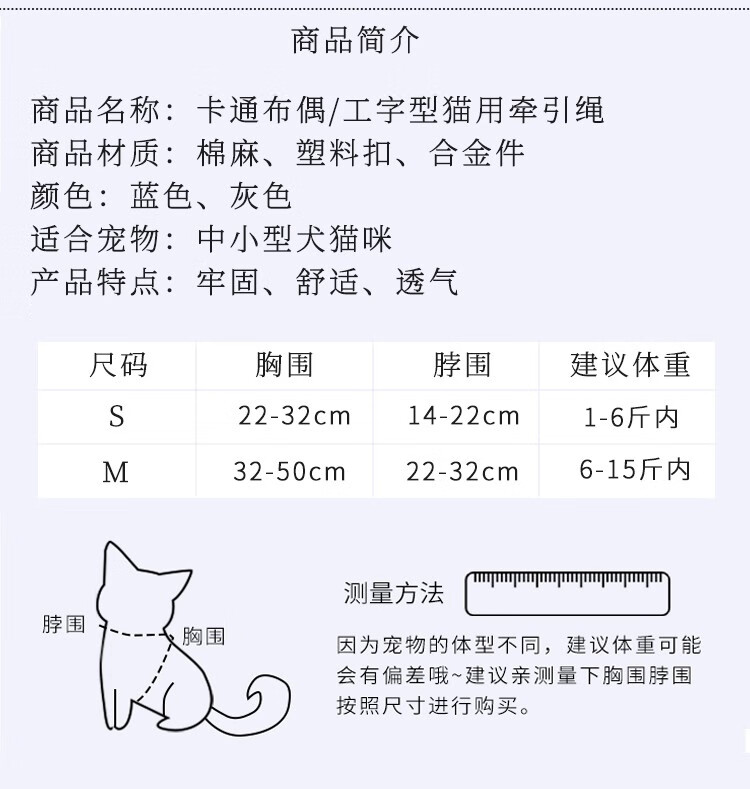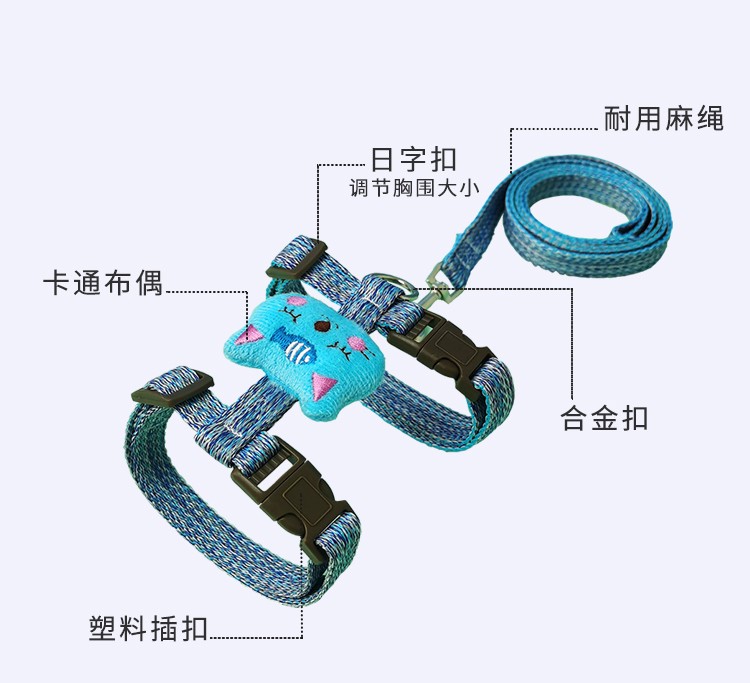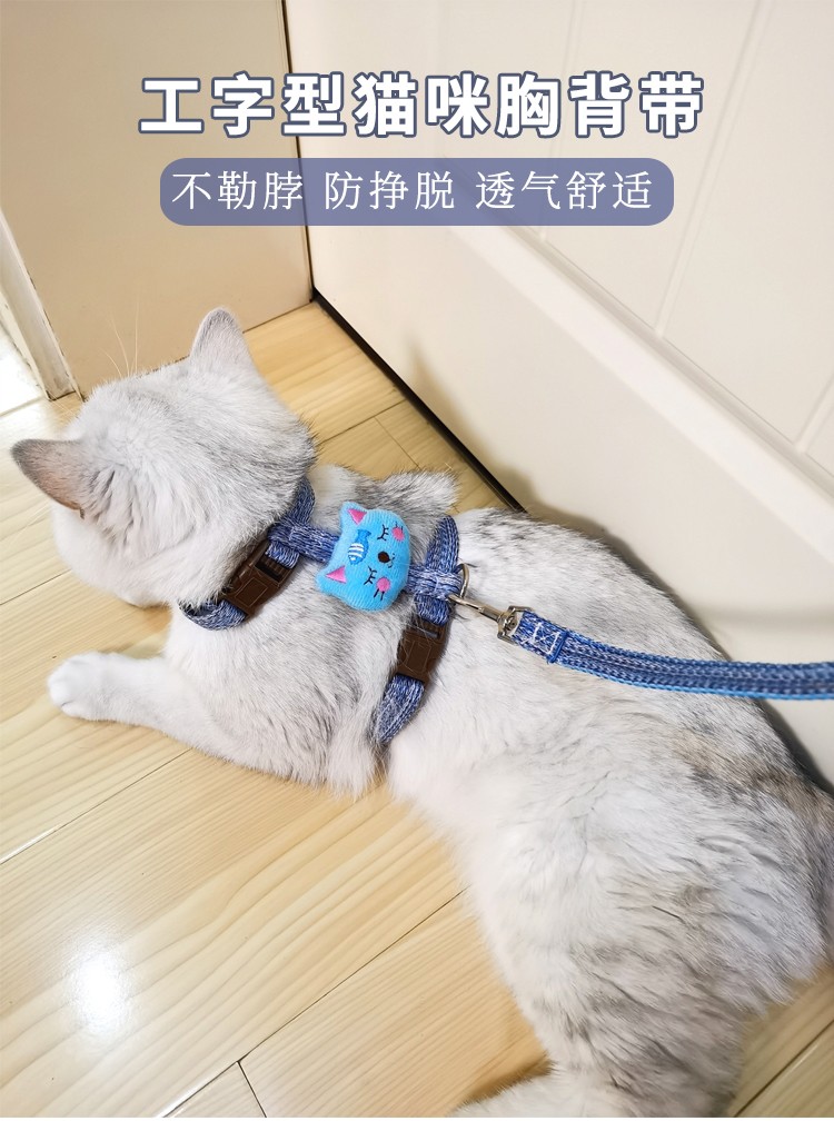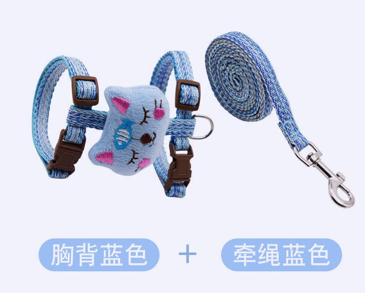 Kangbeini cat rope traction rope I-shaped cat harness to prevent breakaway kitten and adult cat walking rope cat supplies blue S small size/1-6Jin Jin equal to 0.5kg for cats
