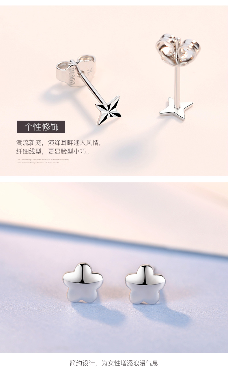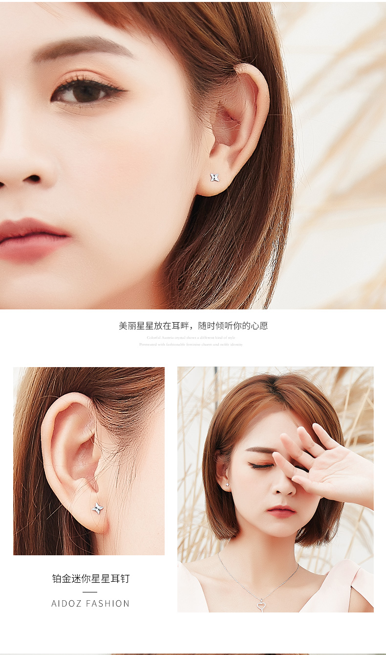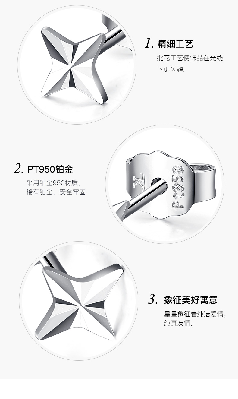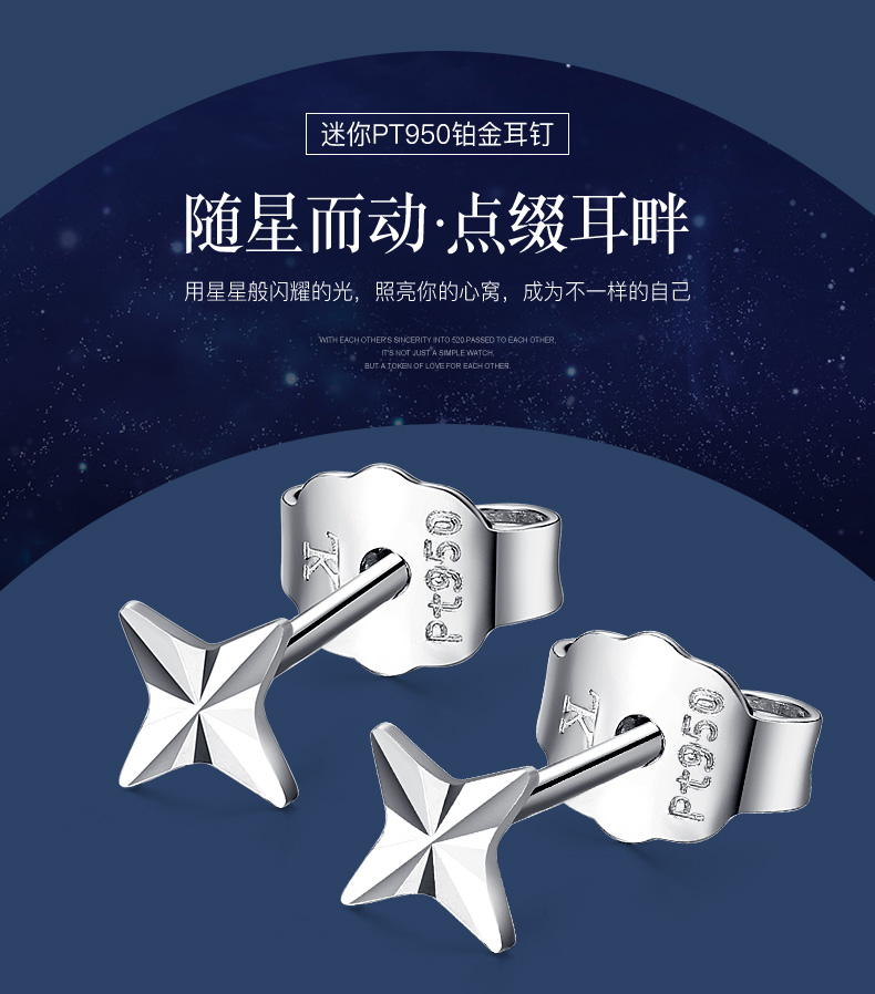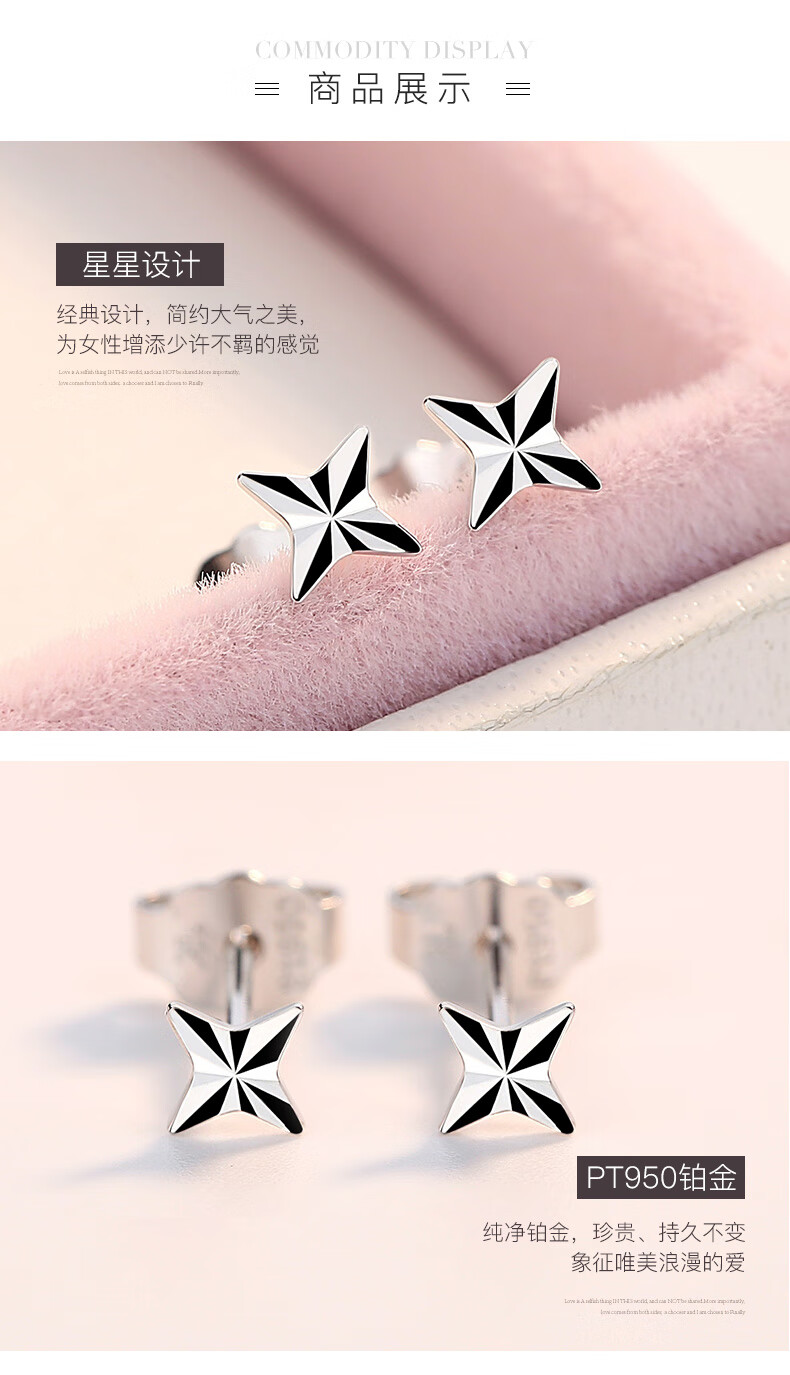 Huiyoulan pt950 platinum small earrings for women platinum earrings for men simple fashion earrings mini star earrings Chinese Valentine's Day gift Christmas gift four-pointed star (single) about 0.4-0.6 grams