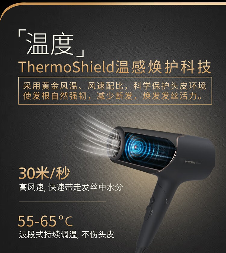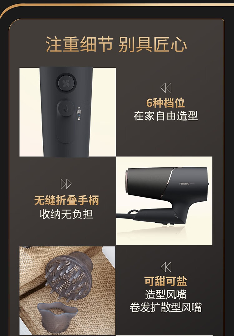 Philips hair dryer fluffy barrel household high-power hair dryer constant temperature hair care high negative ion dual ion care hair dryer birthday gift for girlfriend BHD538/25