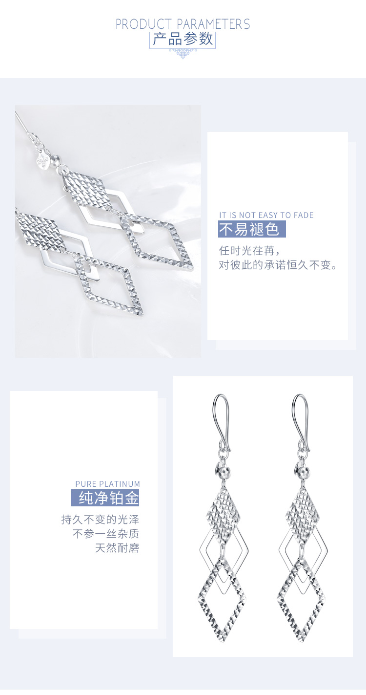 Huiyoulan platinum earrings for women pt950 platinum earrings pt999 ear wire gold earrings platinum ear hooks long jewelry Chinese Valentine's Day gift Christmas gift Pt950 platinum earrings pair about 3.2g + certificate