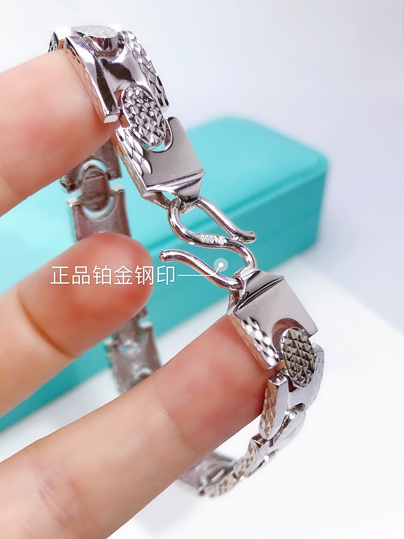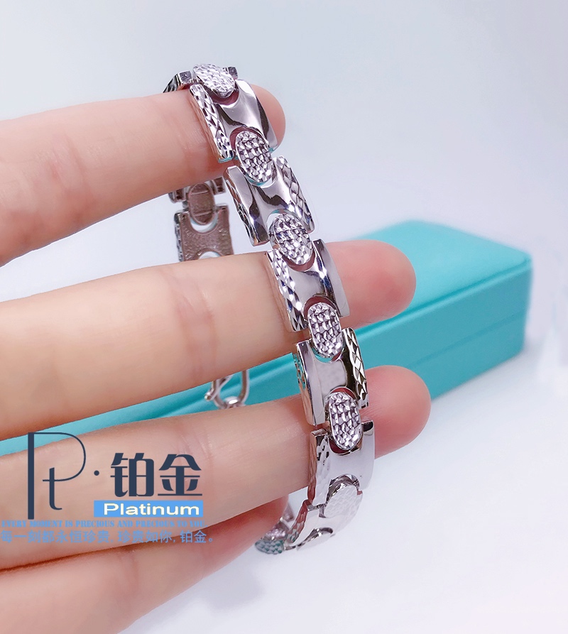 Huiyoulan super flash oval imitation diamond car flower bracelet gold pt950 women's and men's platinum bracelet platinum men's and women's Chinese Valentine's Day gift Christmas gift spot 34.52 grams 11MM wide 19.5 cm long in stock