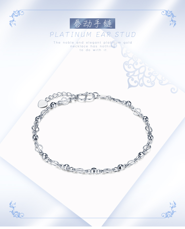Huiyoulan Pt950 platinum bracelet for women Pt999 platinum bracelet fashionable super flash simple couple bracelet platinum anklet Chinese Valentine's Day gift Christmas gift PT950 platinum bracelet + certificate, about 3.4 grams, with extension chain available