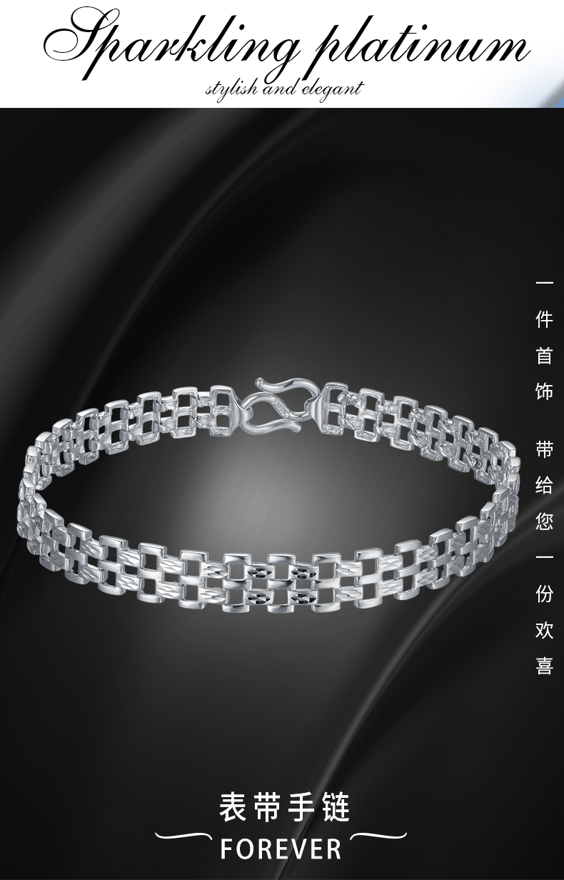 Huiyoulan pt950 platinum bracelet for men, fashionable, classic, wide strap chain, platinum bracelet, men's gift, Chinese Valentine's Day gift, Christmas gift, custom deposit, about 17 3g, 19cm