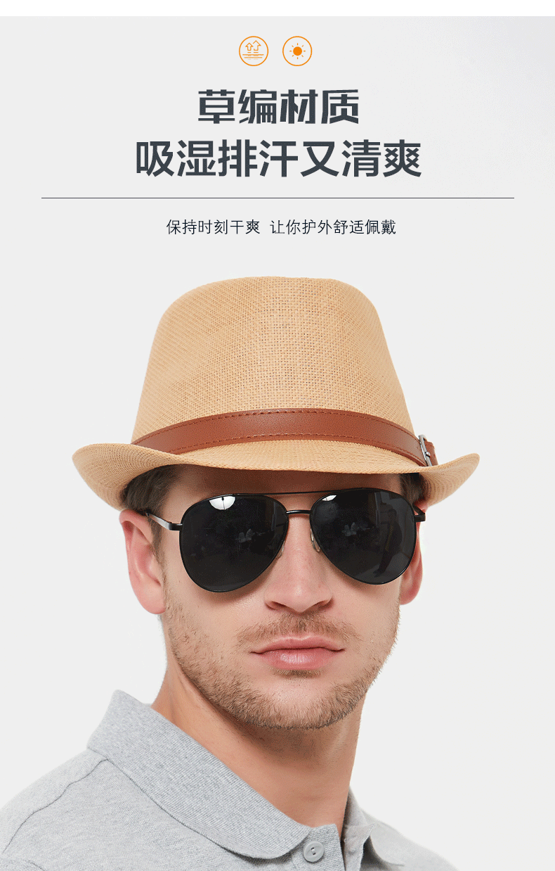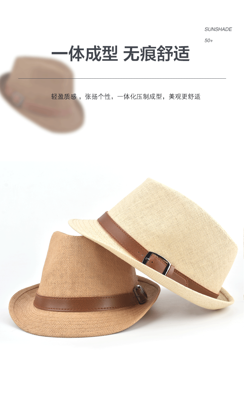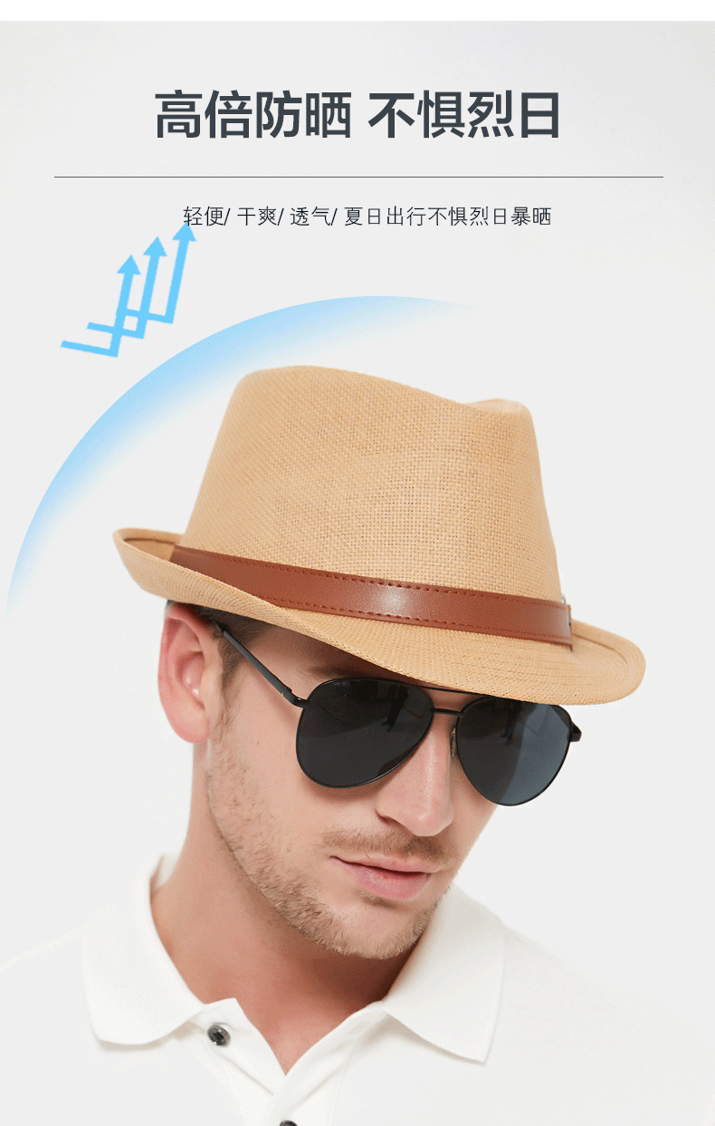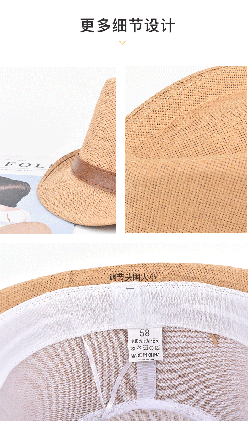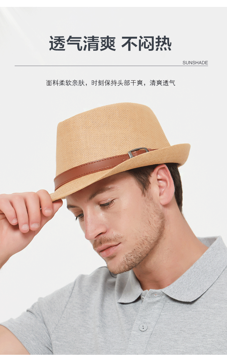Sumu Bai British top hat men's summer breathable travel vacation beach hat jazz hat outdoor sun protection sun hat sun straw hat khaki regular size