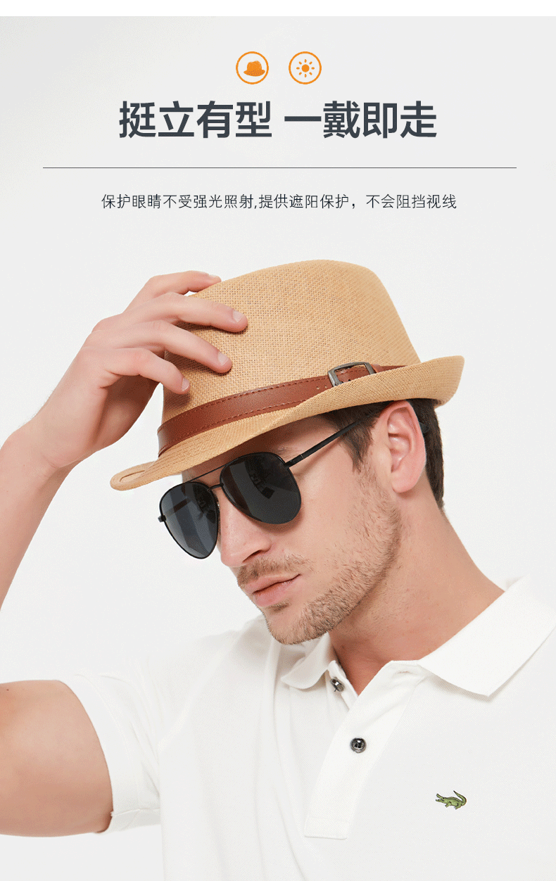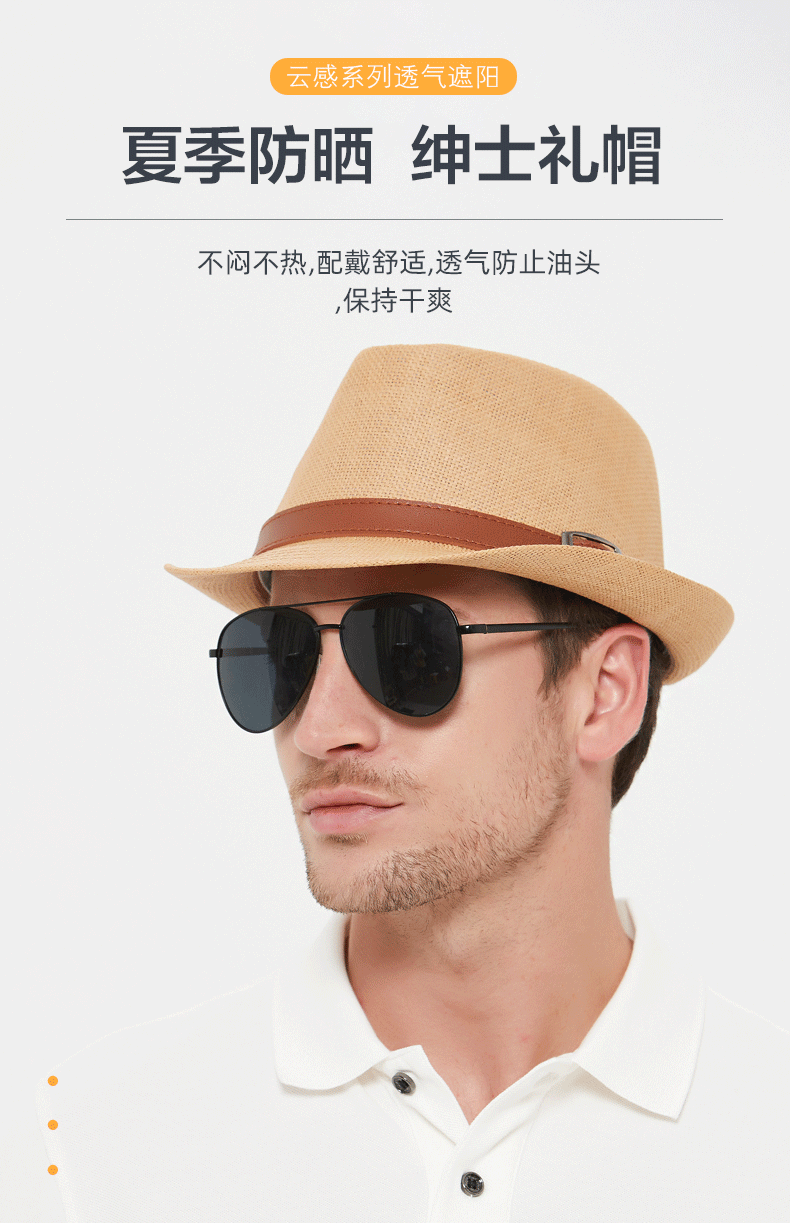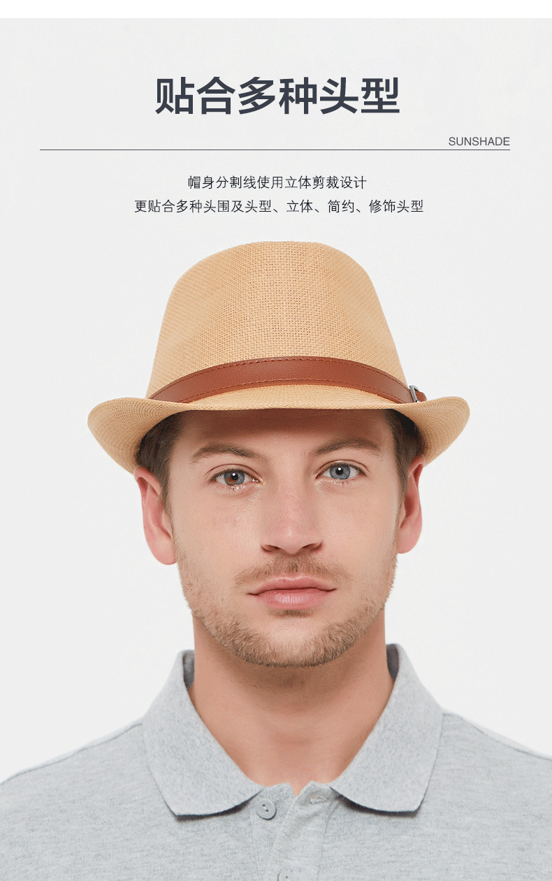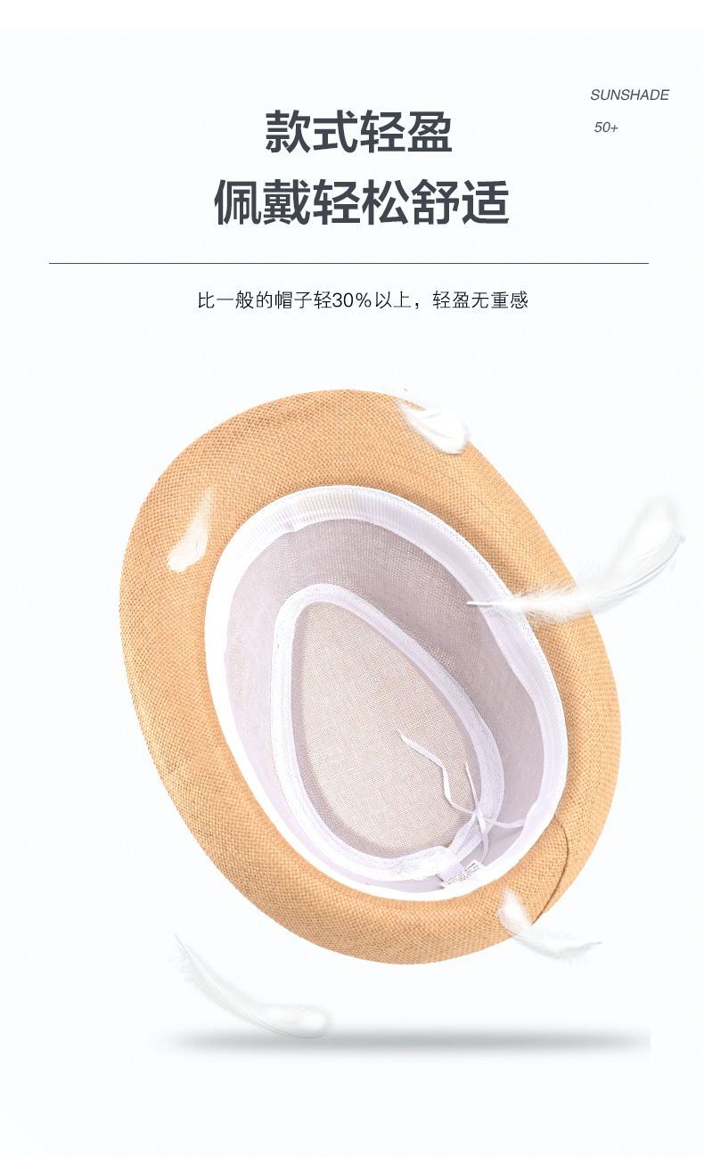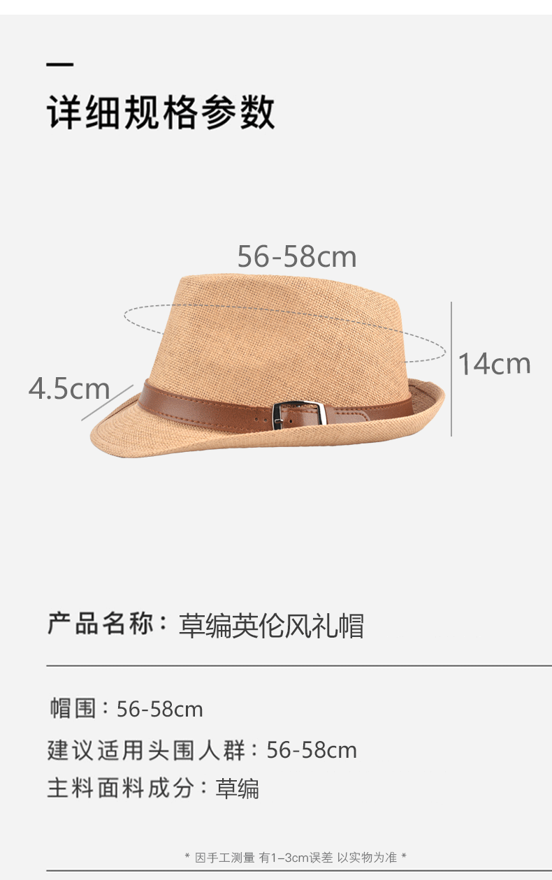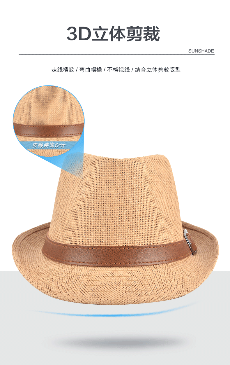 Sumu Bai British top hat men's summer breathable travel vacation beach hat jazz hat outdoor sun protection sun hat sun straw hat khaki regular size