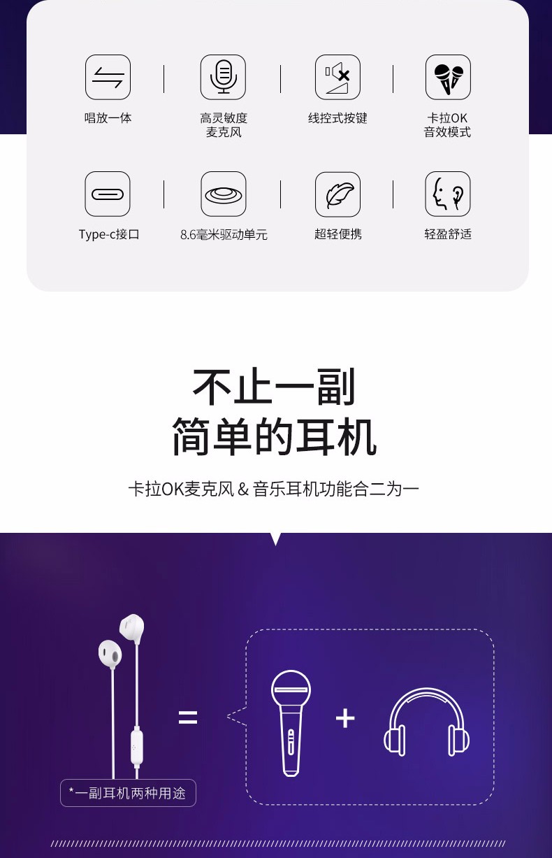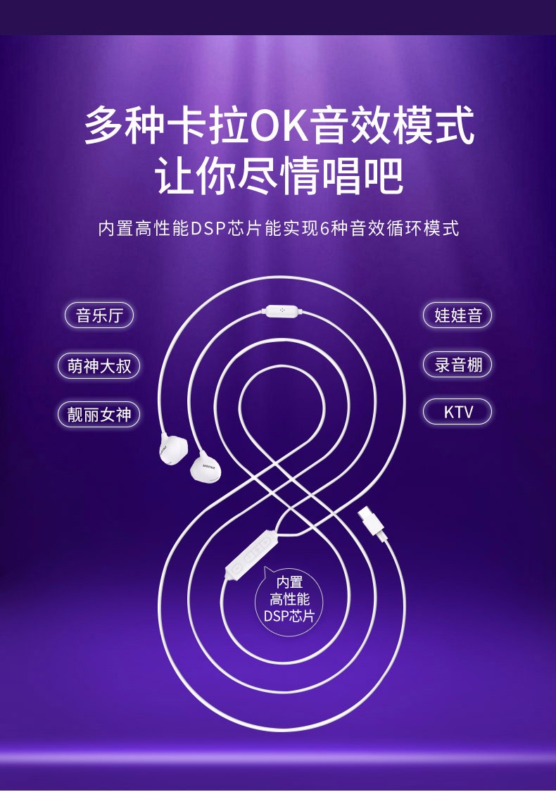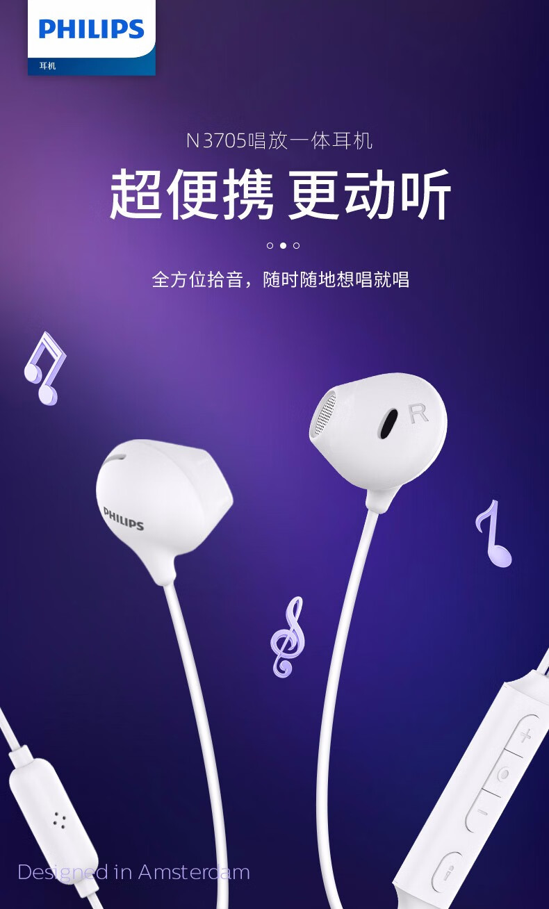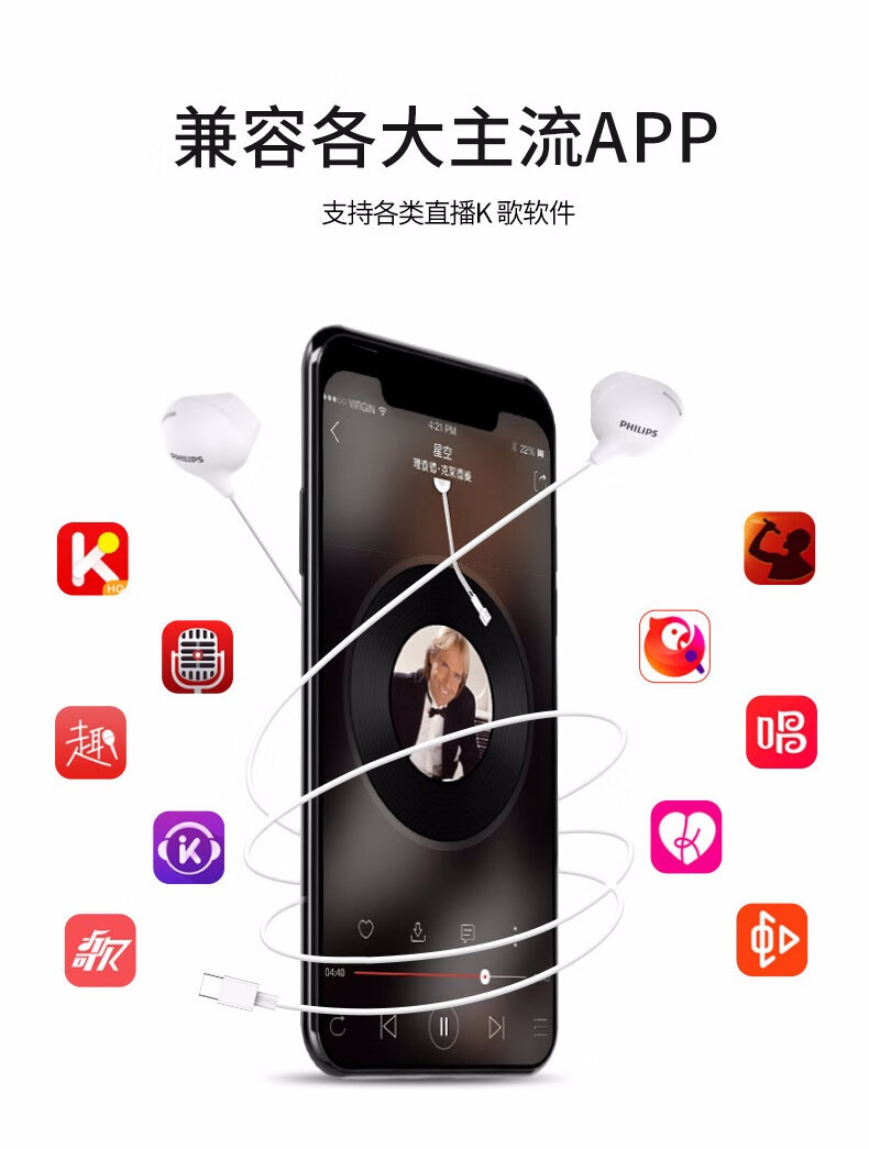 Philips type-c headphones wired semi-in-ear karaoke headphones eating chicken game with microphone music singing live broadcast sound card headphones white