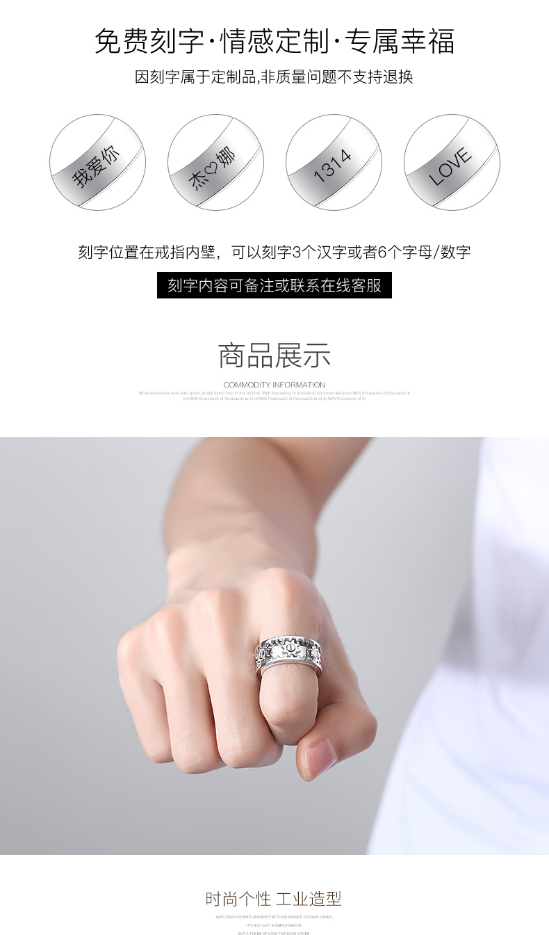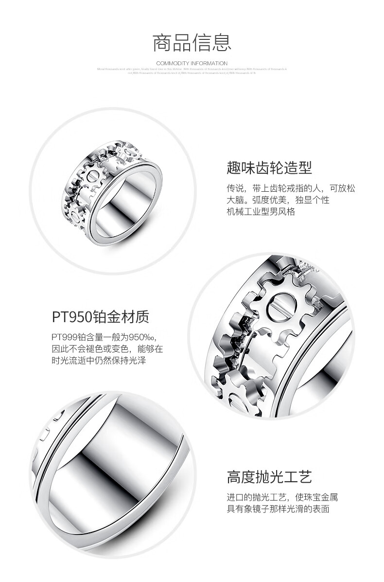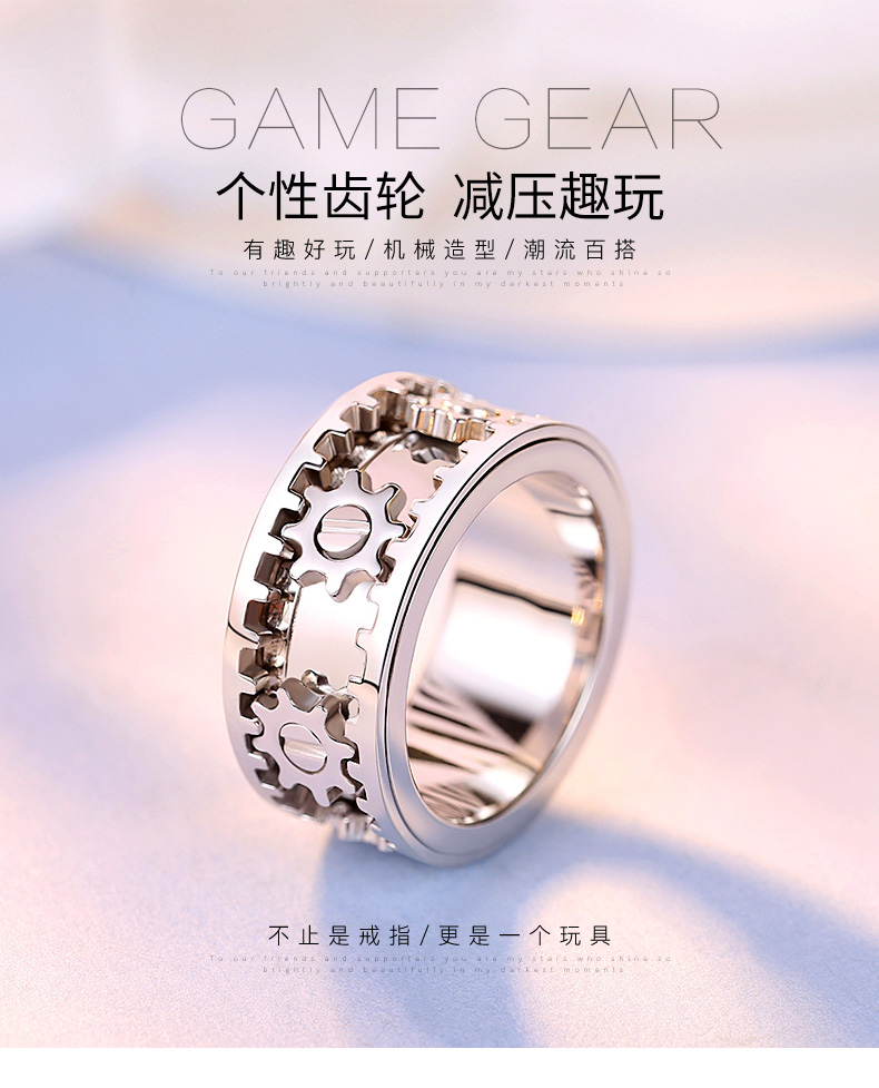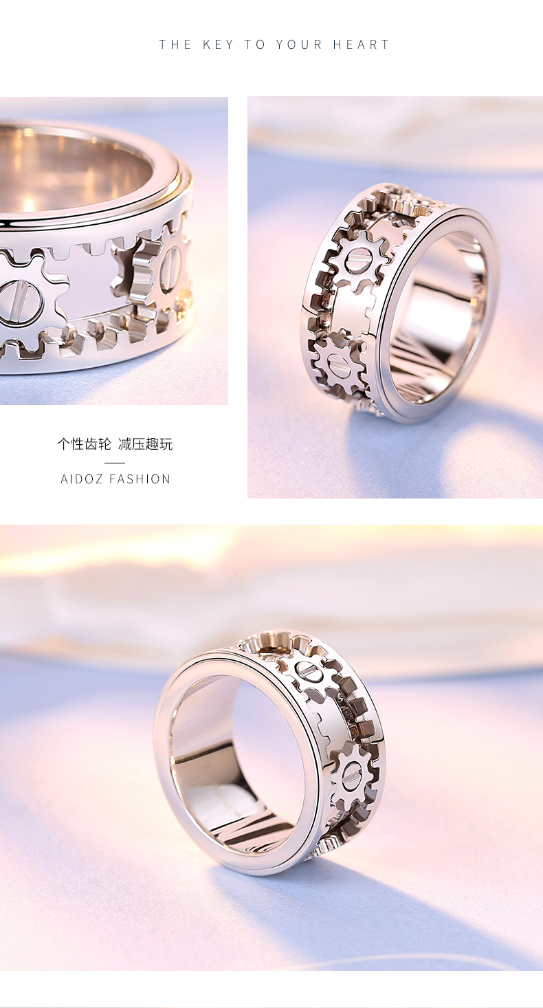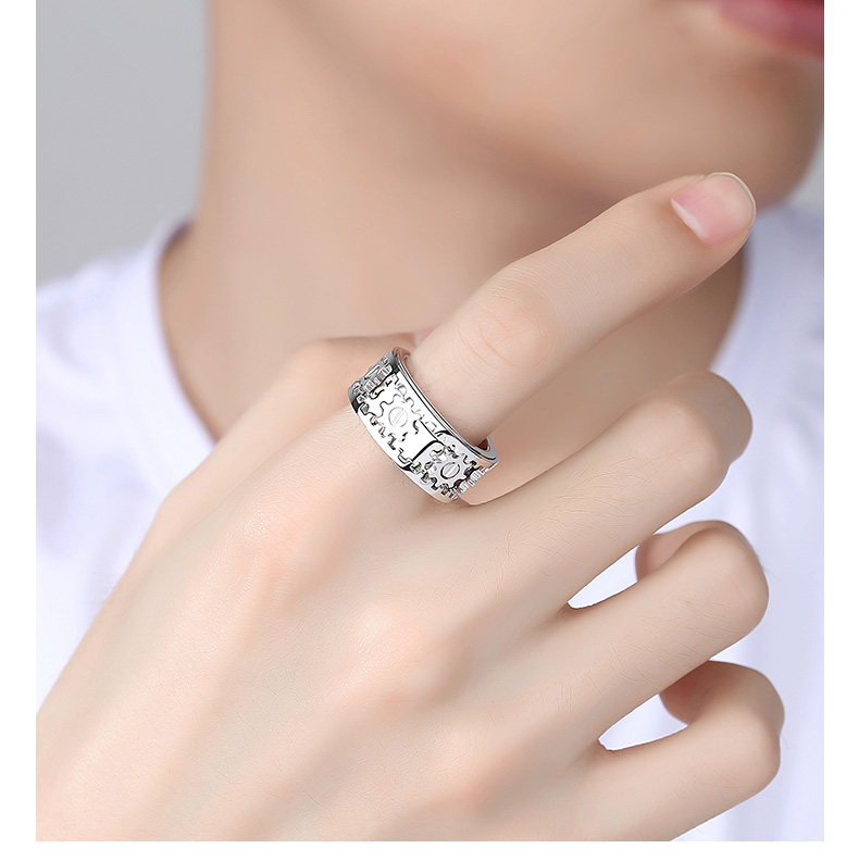 Huiyoulan pt950 platinum gear ring for men, rotatable, fashionable and personalized platinum CNC ring, gift for boyfriend Chinese Valentine's Day, Christmas gift, PT950 gear ring, size 15, 12.9-12.99