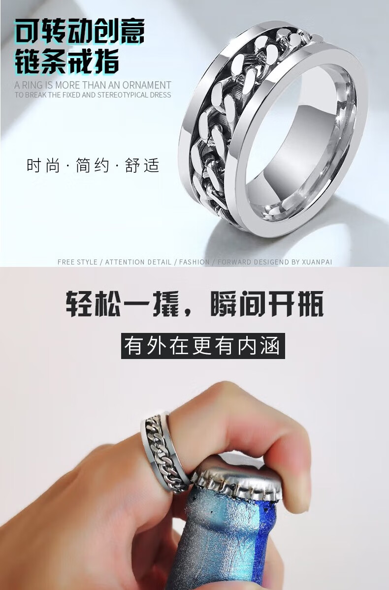 Qi Xiaomi engraved beer bottle cap ring for men and women, trendy Korean style simple rotatable chain transfer ring tail ring default hair beauty size 9 other sizes remarks