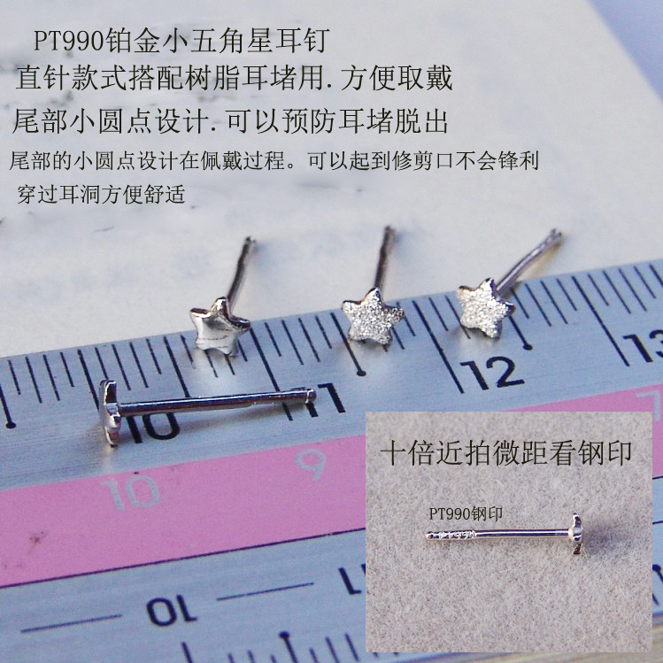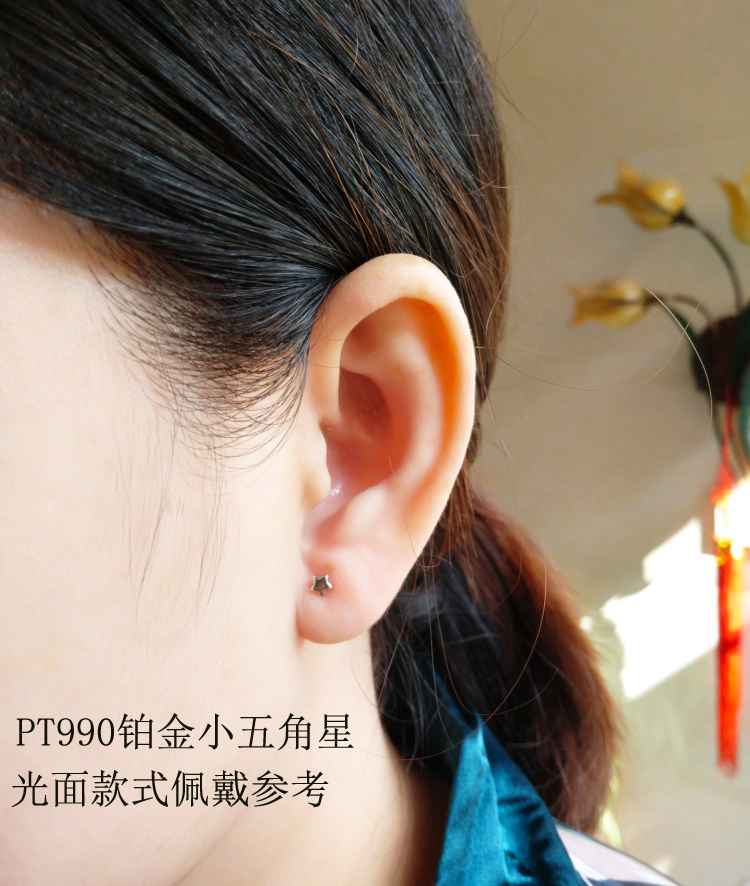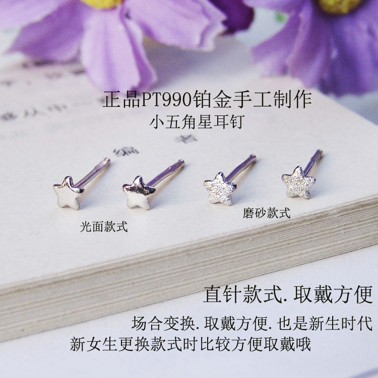 Huiyoulan platinum earrings PT990 platinum small earrings five-pointed star platinum pt950 female student white-collar foot platinum small earrings Chinese Valentine's Day gift Christmas gift 0.23g PT990 glossy small five-pointed star single * straight needle