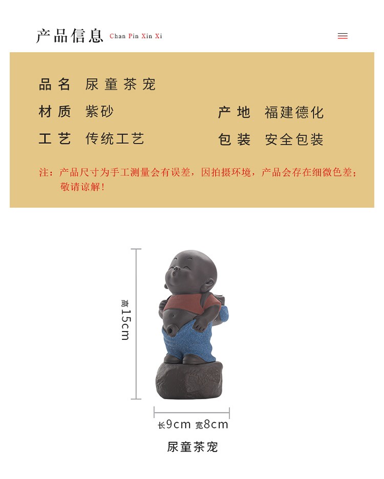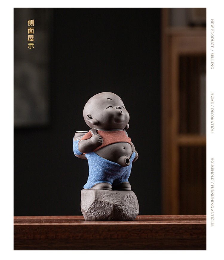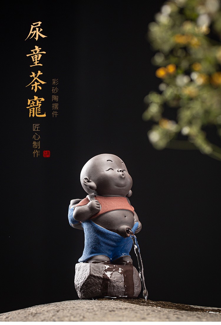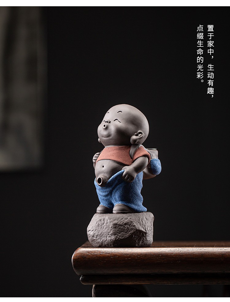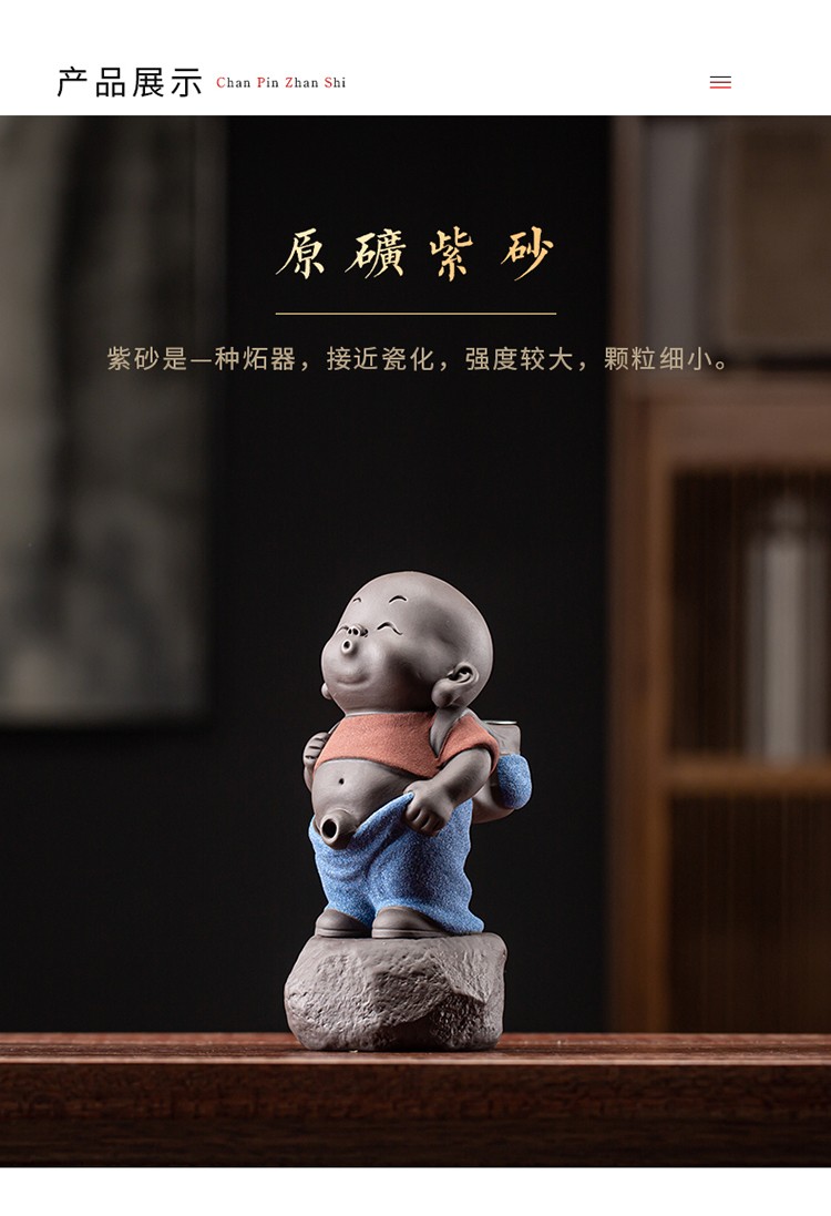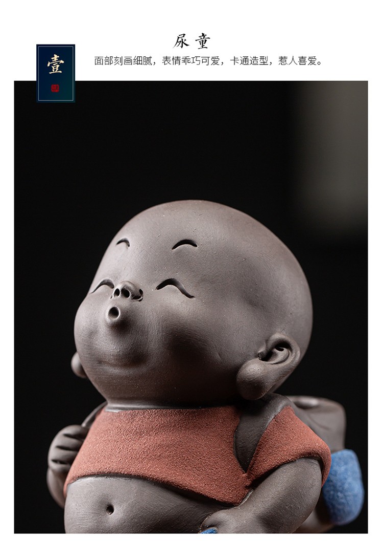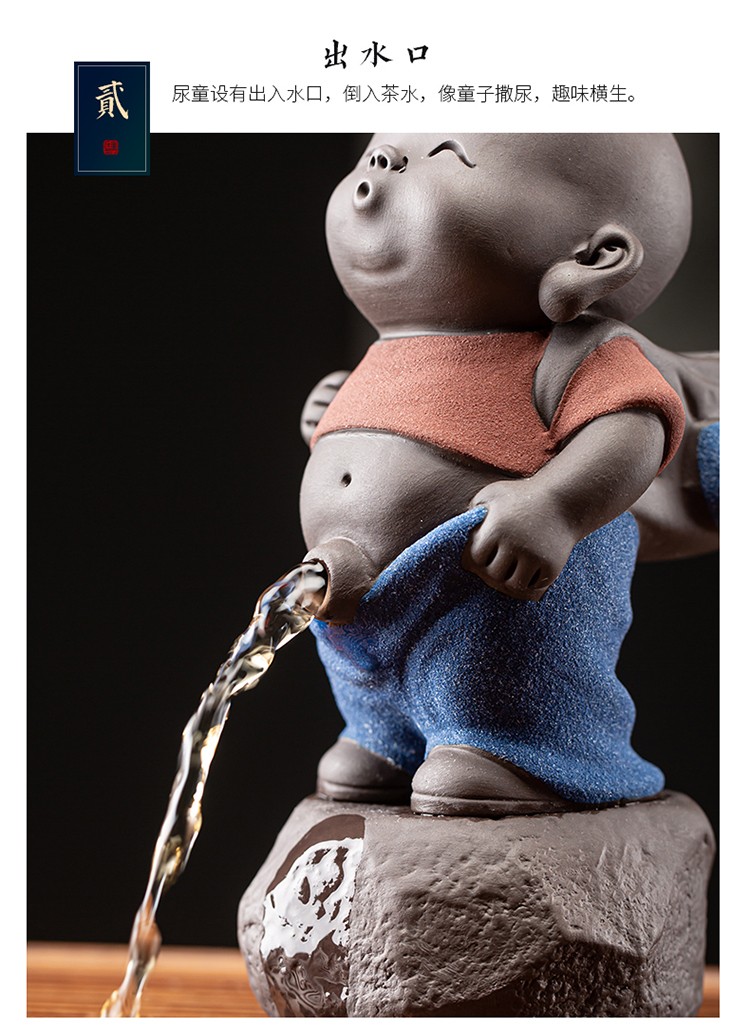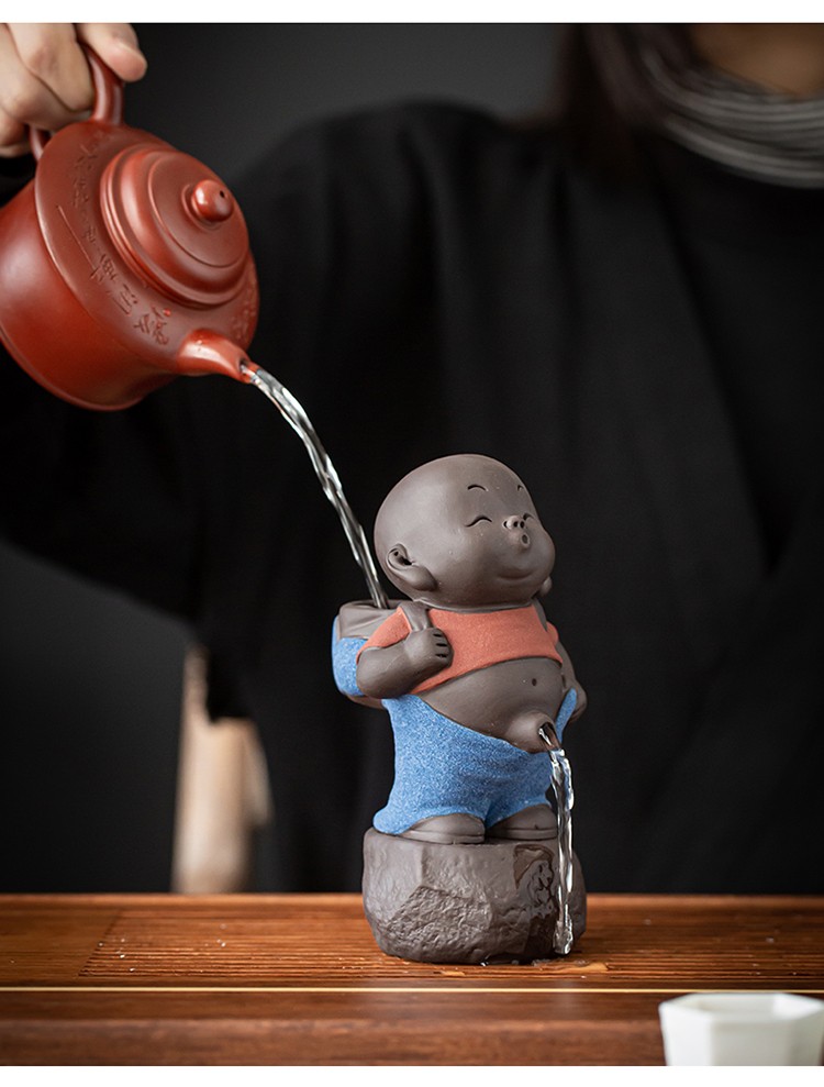 Yuxuan purple sand peeing boy tea pet water spray ornaments boutique creative little monk can cultivate tea art tea tray tea set accessories new peeing boy---Yuan