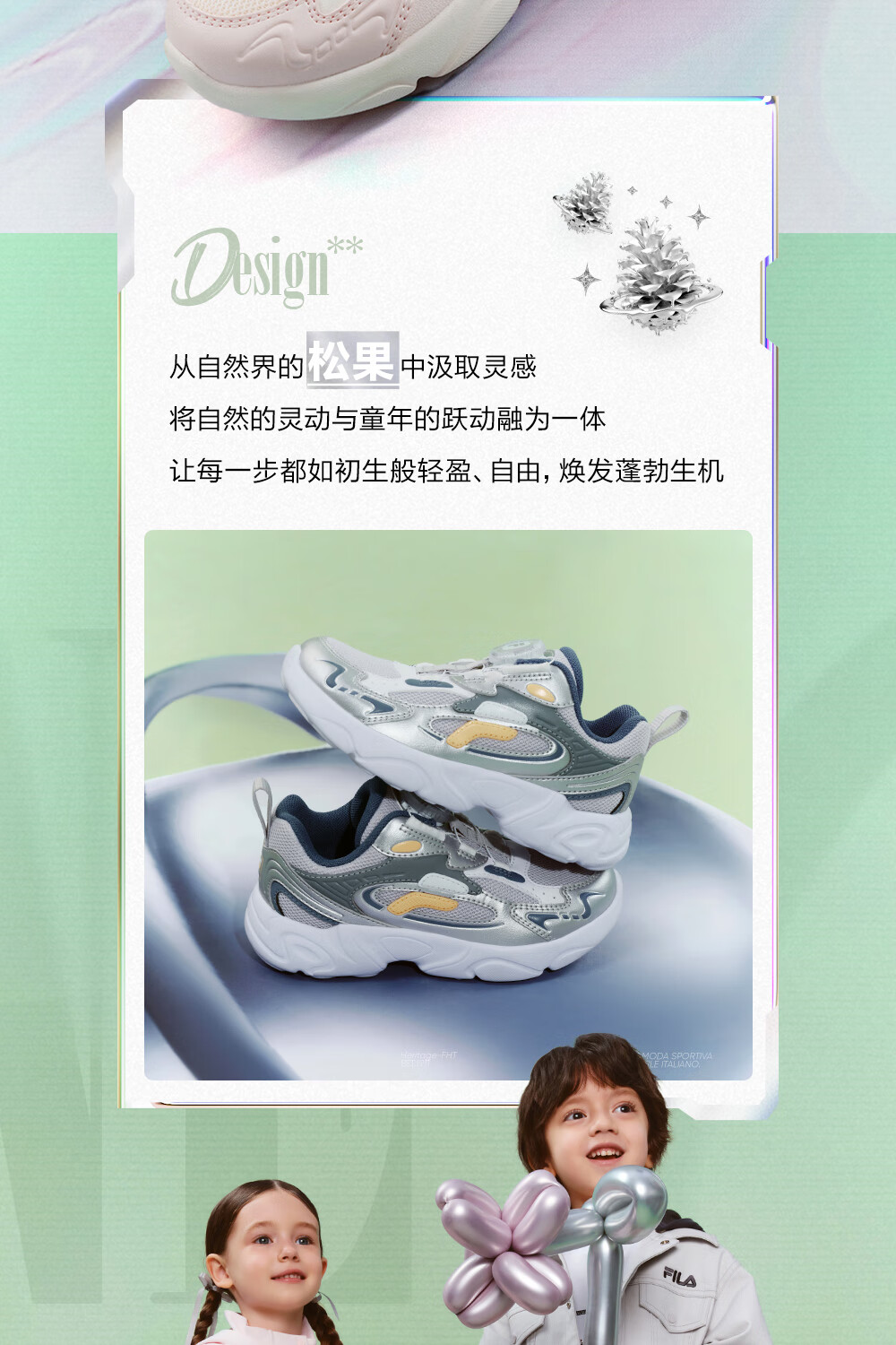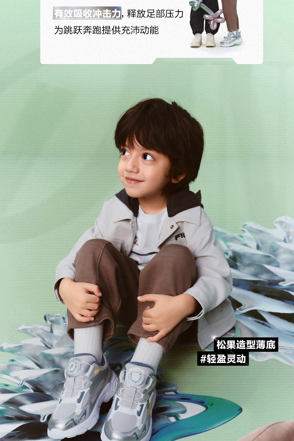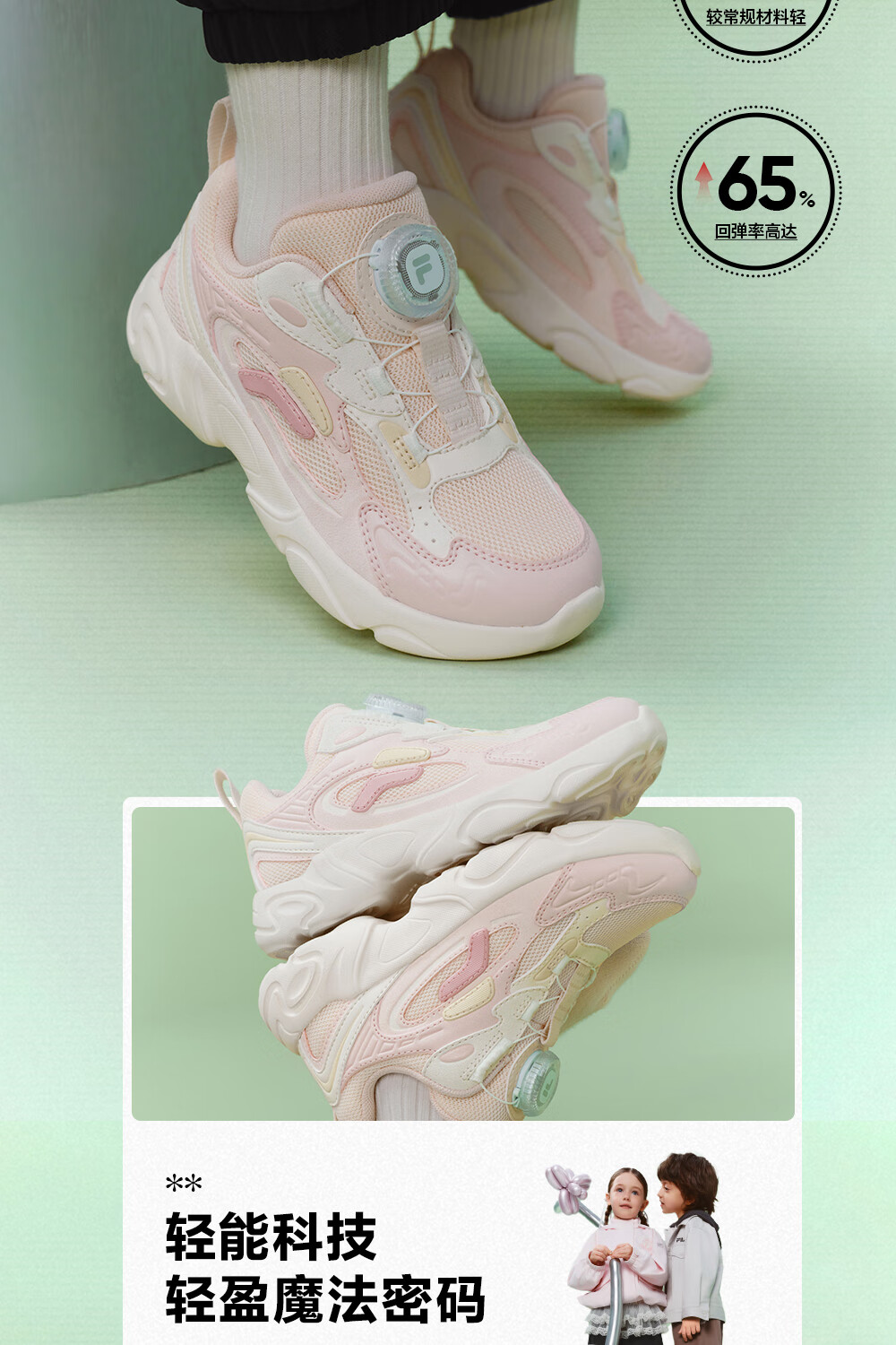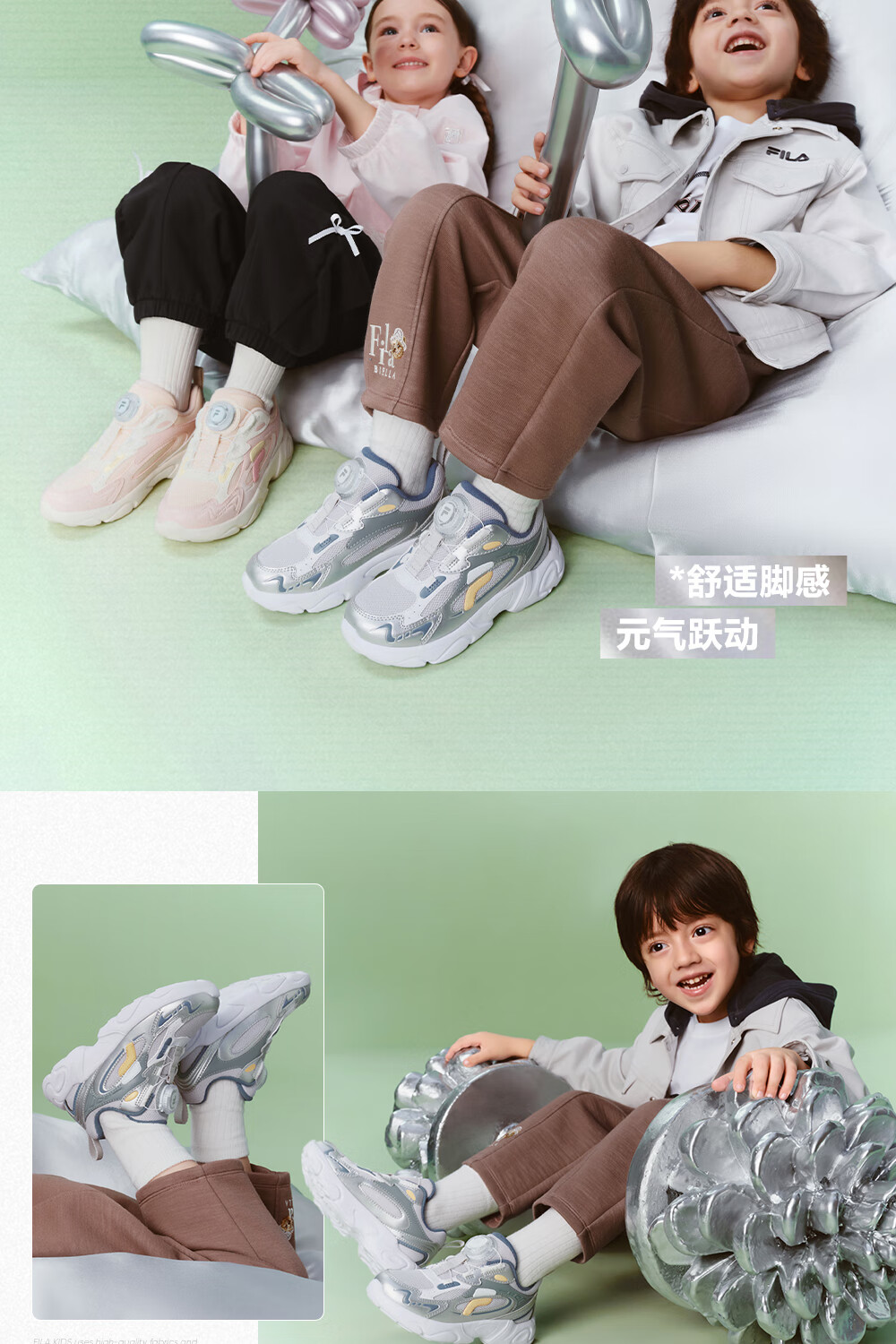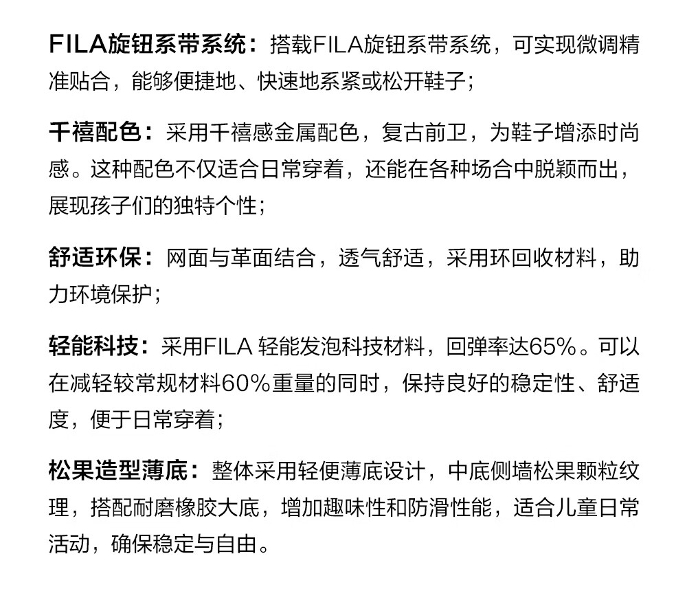 FILA children's shoes running shoes 2026 spring boys and girls knob buckle sports shoes pine cone
