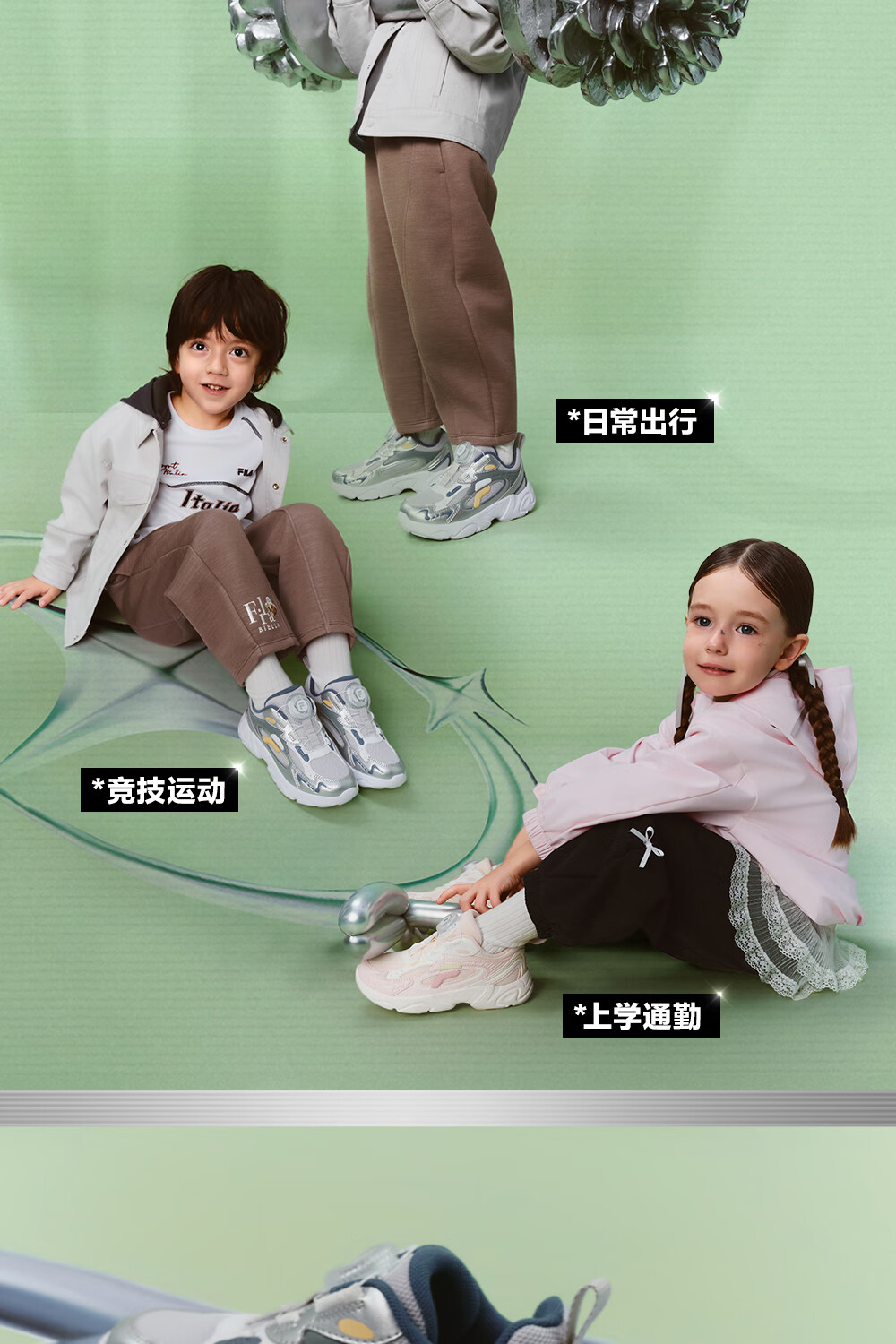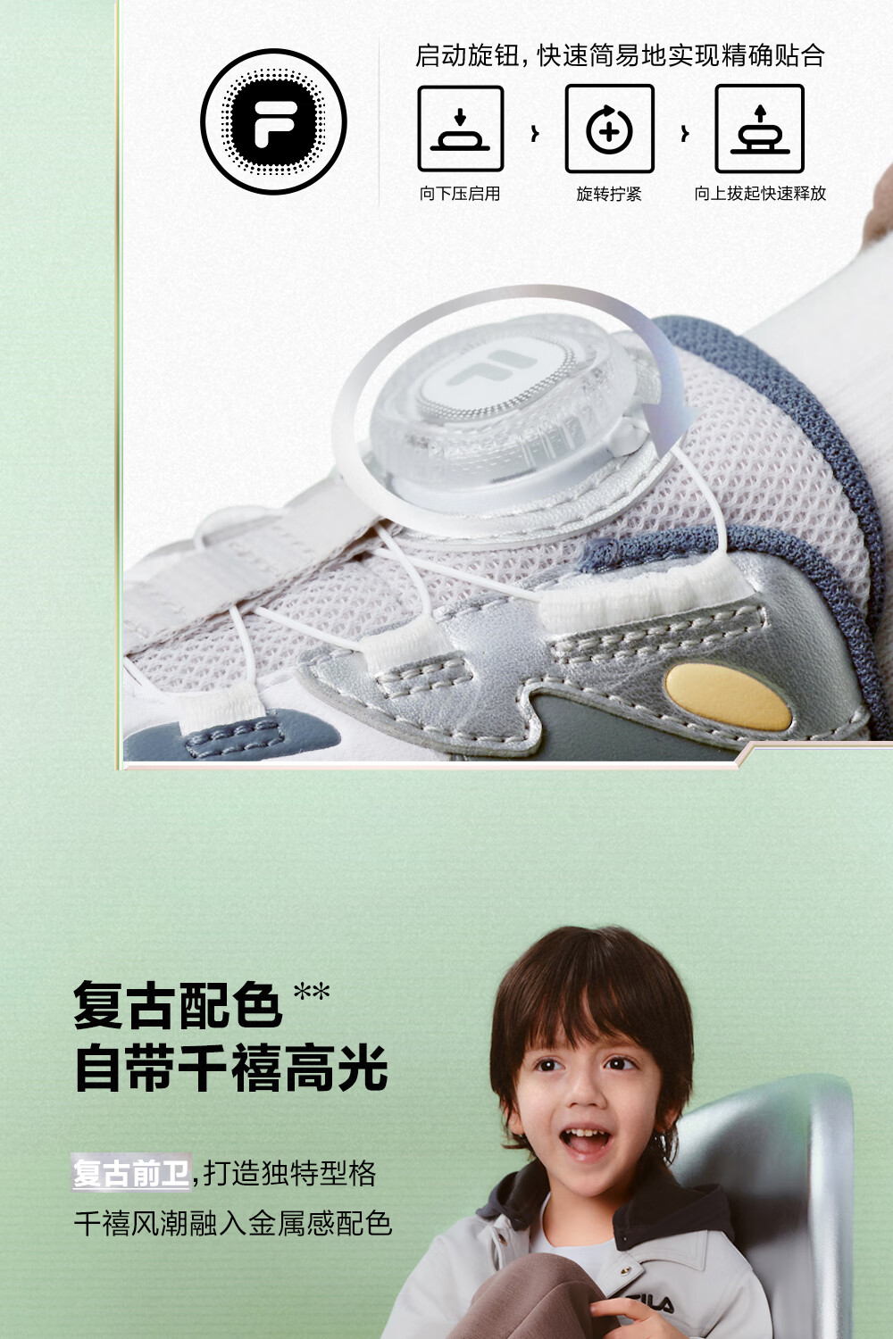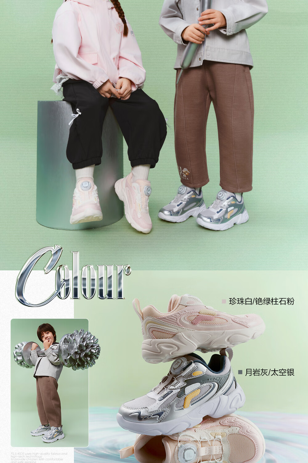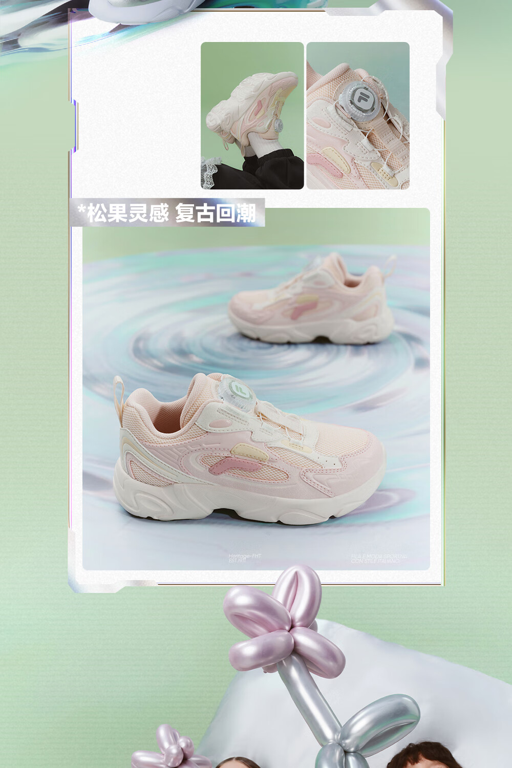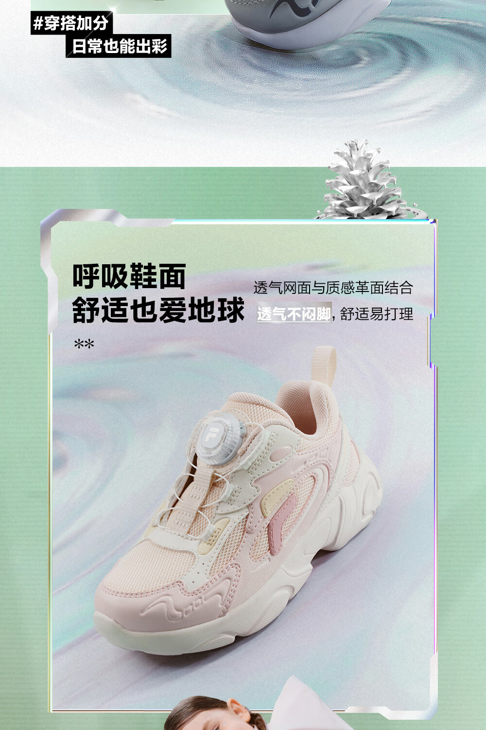 FILA children's shoes running shoes 2026 spring boys and girls knob buckle sports shoes pine cone