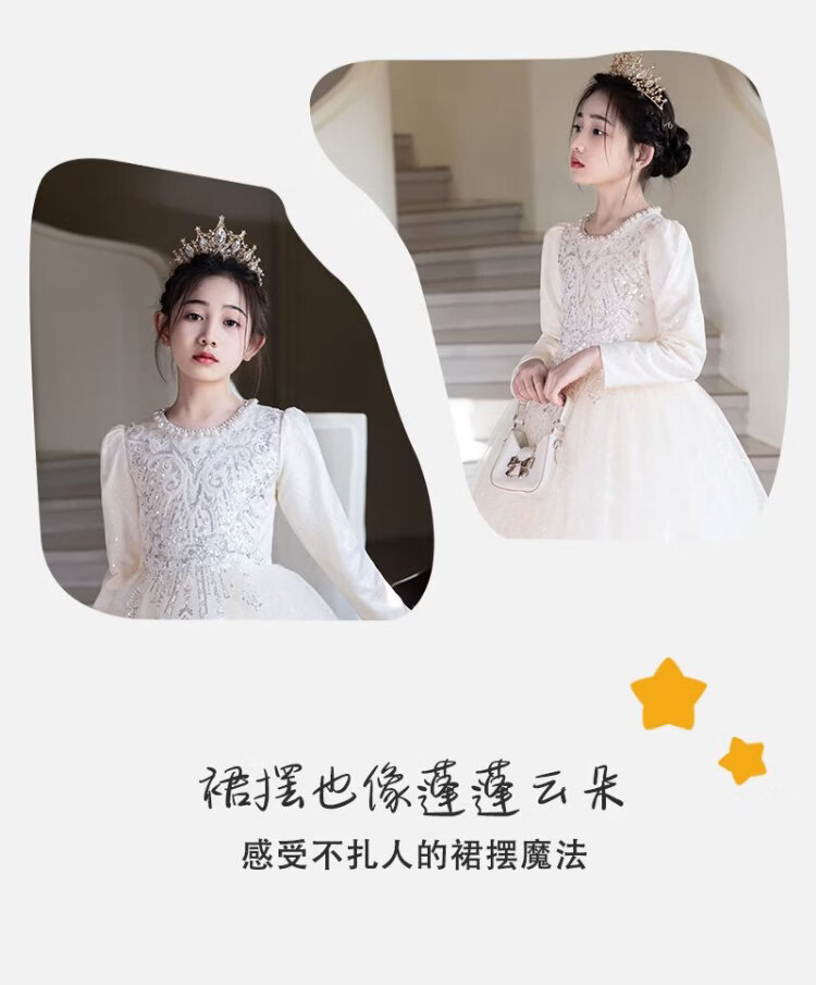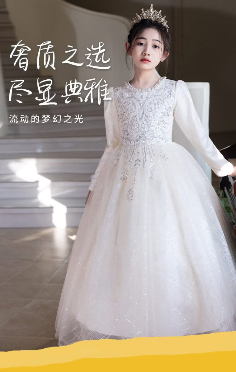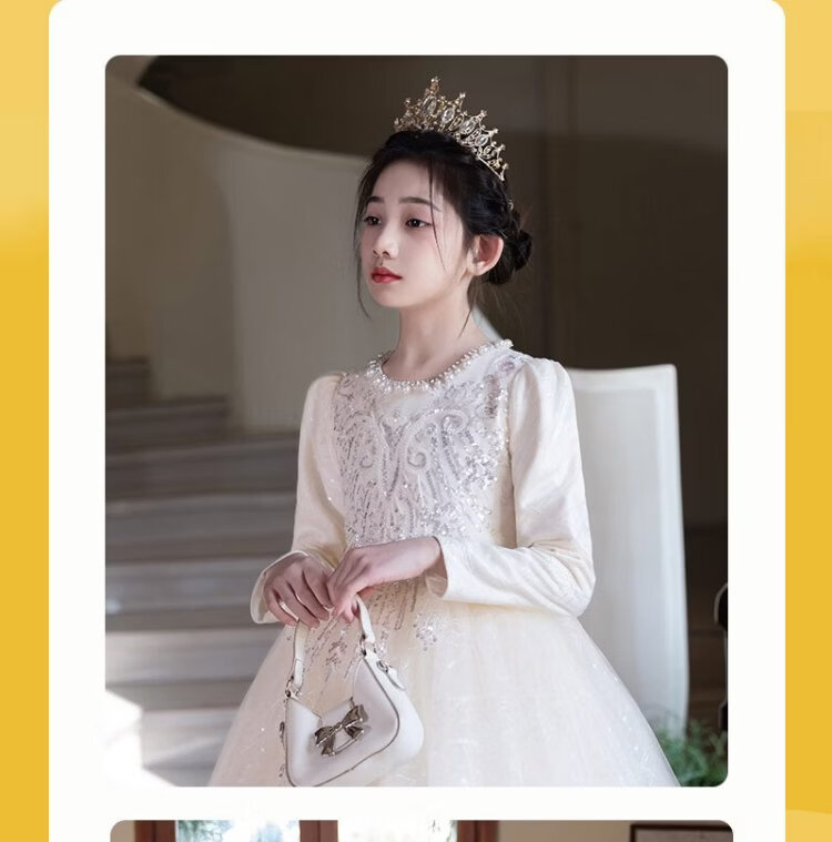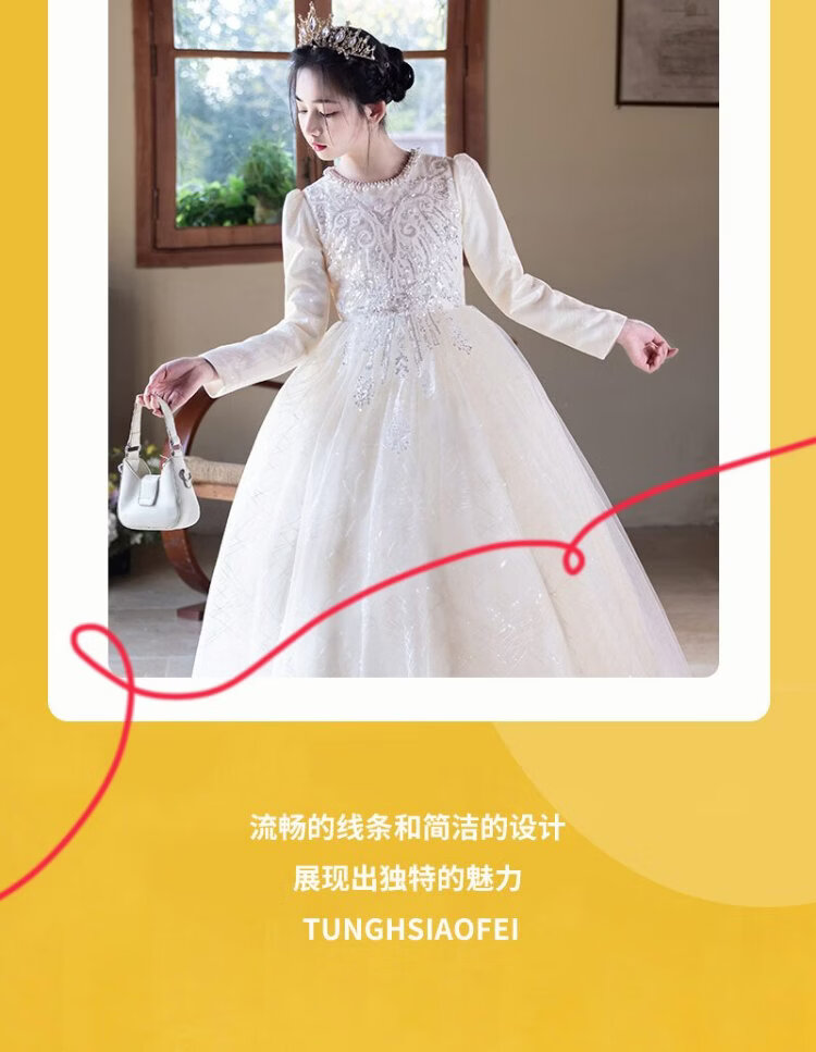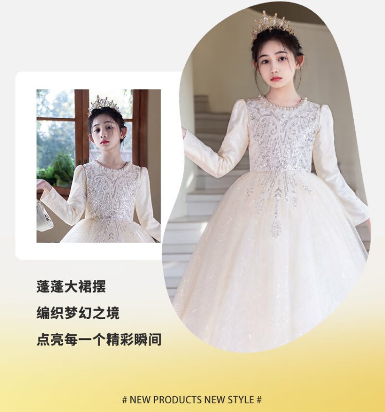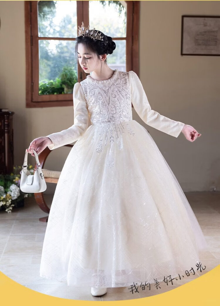 Hanquan girls evening dress autumn and winter new high-end flower girl wedding princess dress host children's piano performance clothing