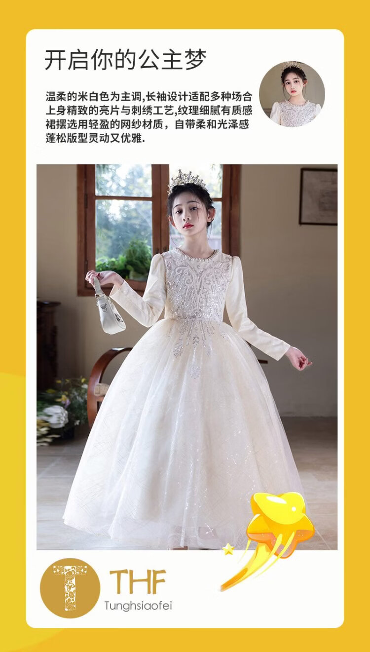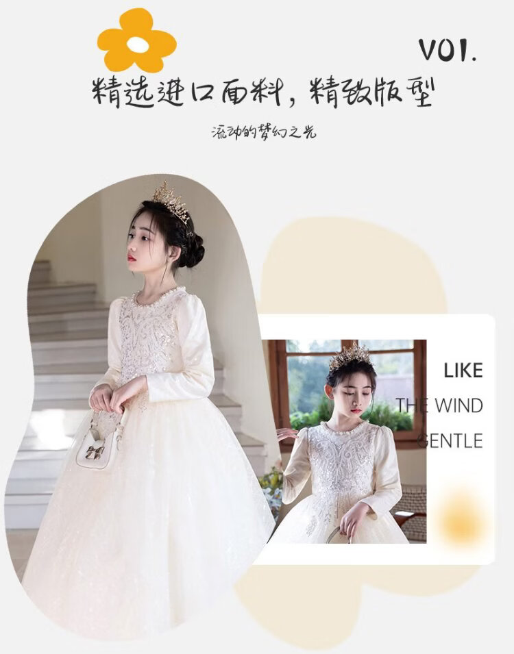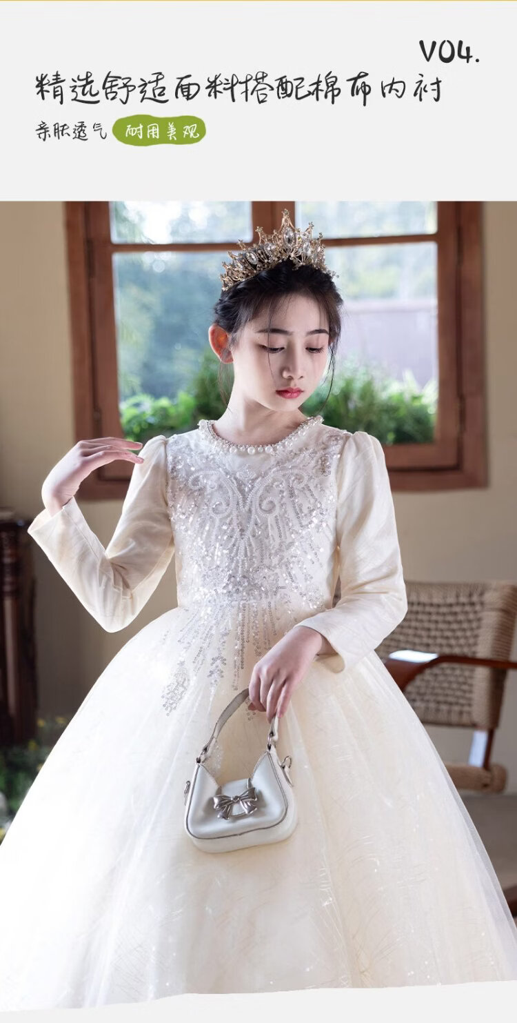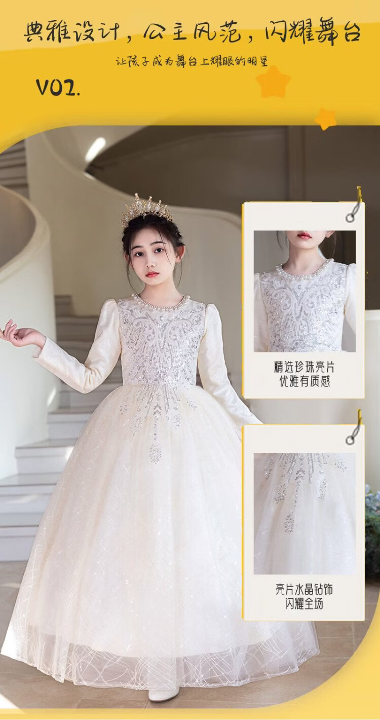 Hanquan girls evening dress autumn and winter new high-end flower girl wedding princess dress host children's piano performance clothing