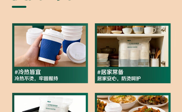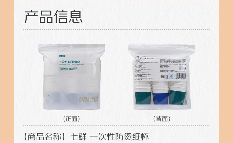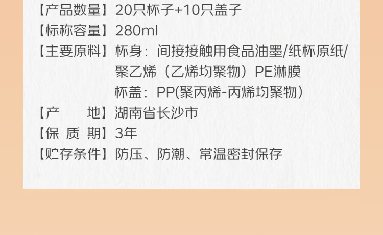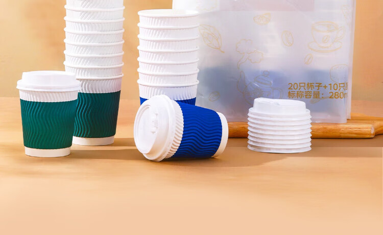 Qixian disposable anti-scald paper cups 280ml (20 cups + 10 lids)