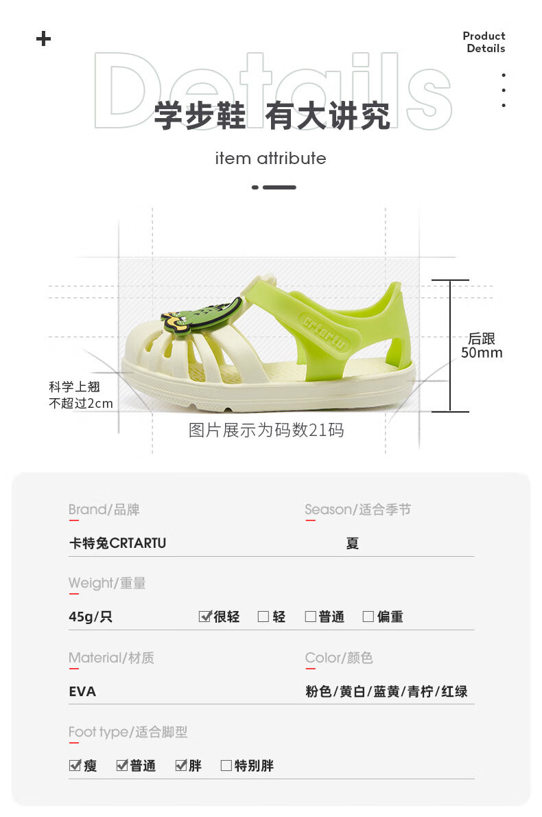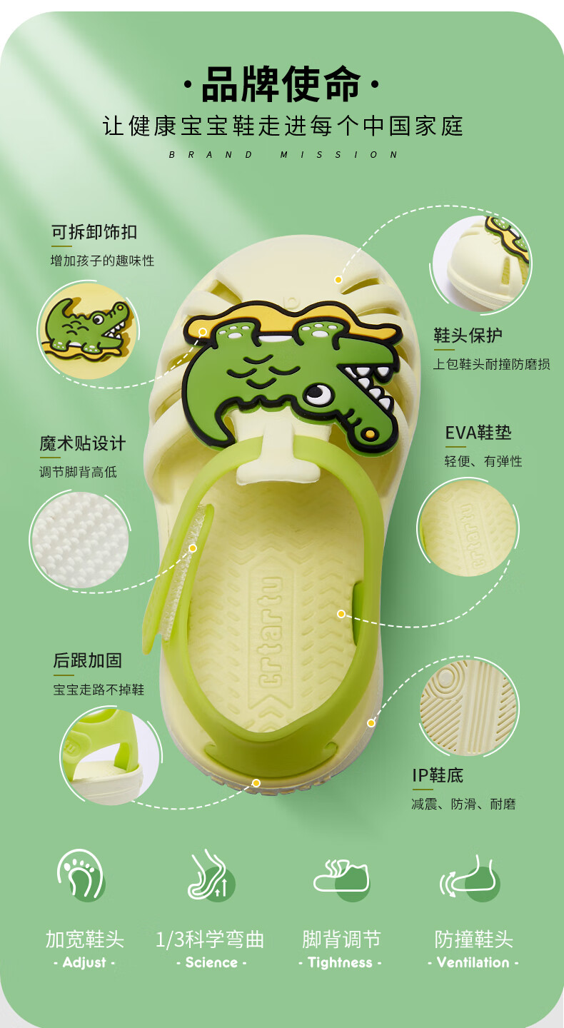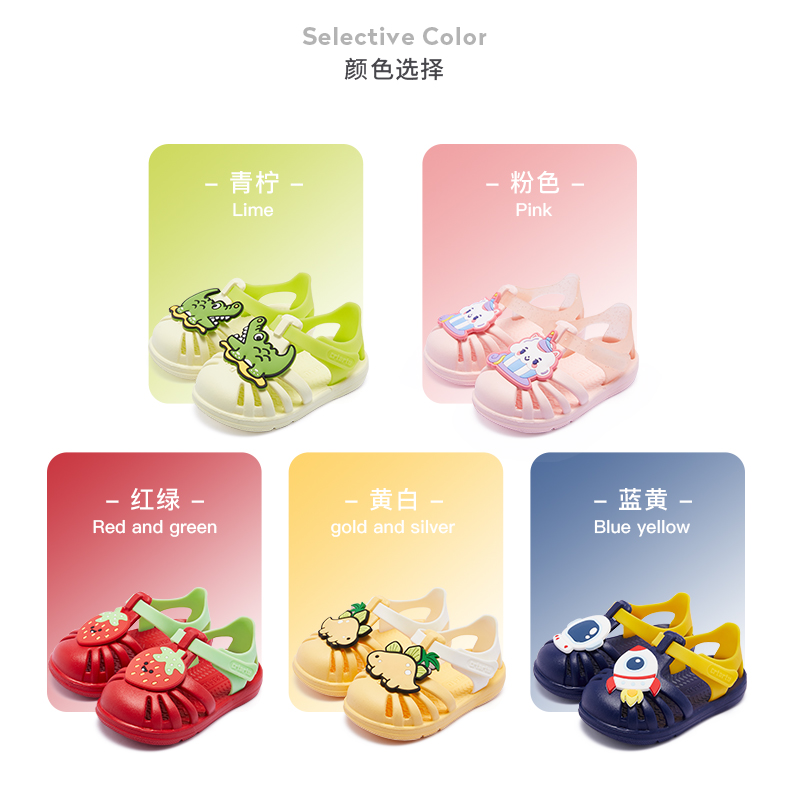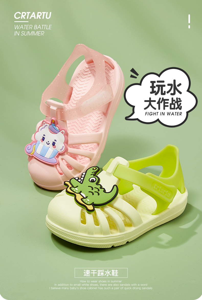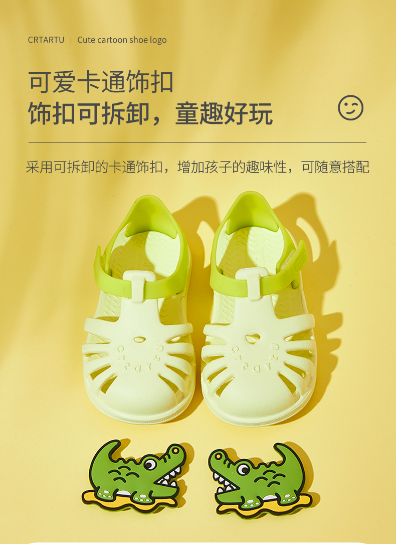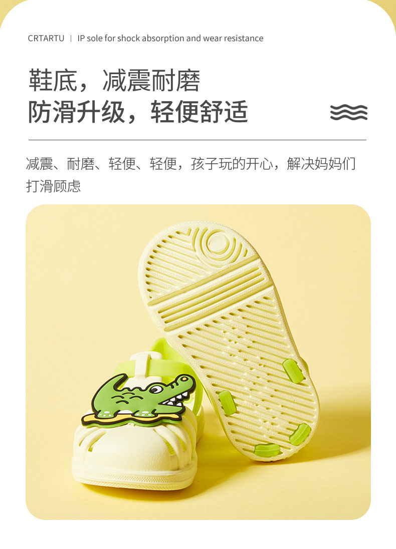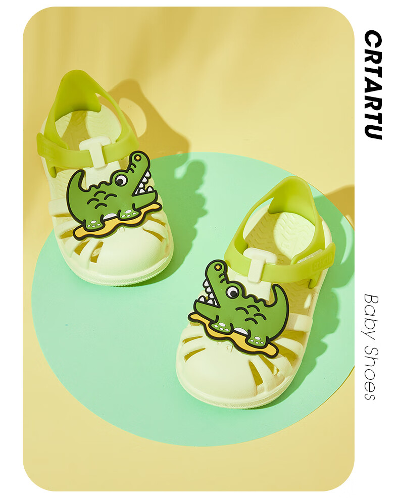 Carter Rabbit toddler shoes for boys, summer water play shoes, soft-soled girls' slippers, non-slip quick-drying beach shoes, cartoon hole shoes, lime, inner length 16cm, size 26 suitable for feet 15.5
