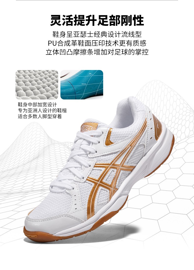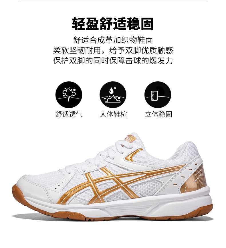 Asics table tennis shoes men's indoor non-slip professional sports badminton shoes women's shoes breathable shock-absorbing training shoes white/gold 42