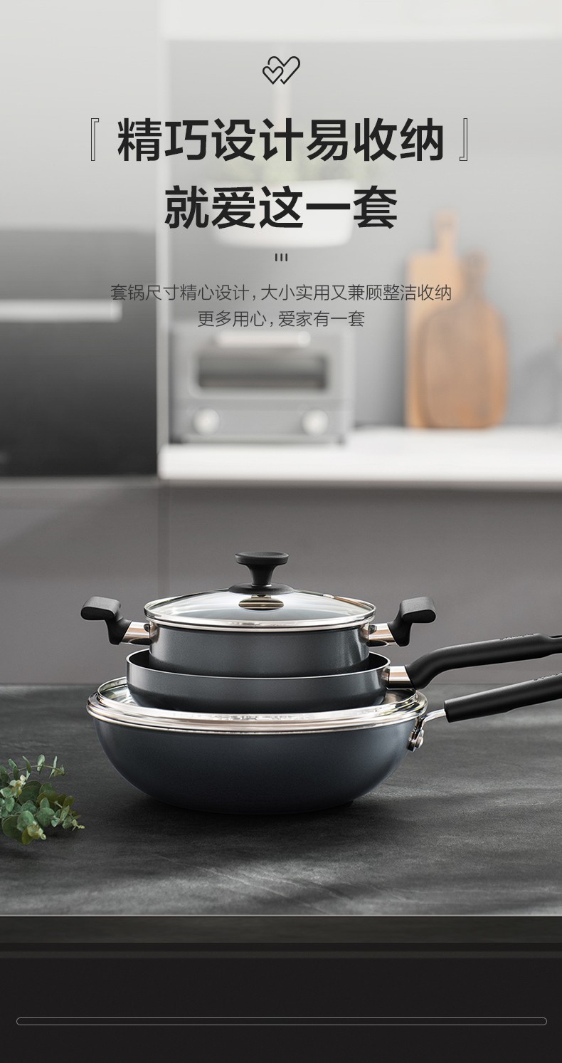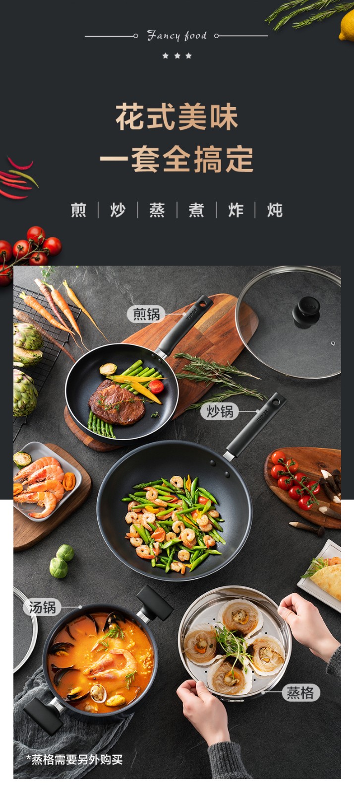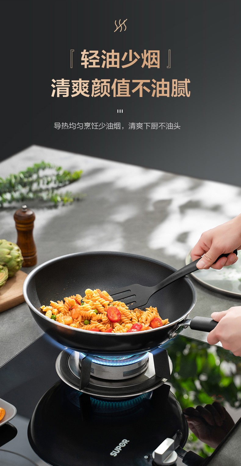 SUPOR wok pot set, pot combination kitchen utensils, soup pot, frying pan, kitchen complete set of household pots and utensils, wok, six-piece set (decoction, soup, steaming, knife, spatula)