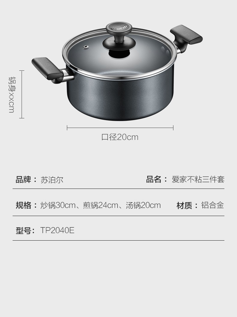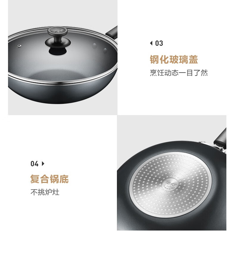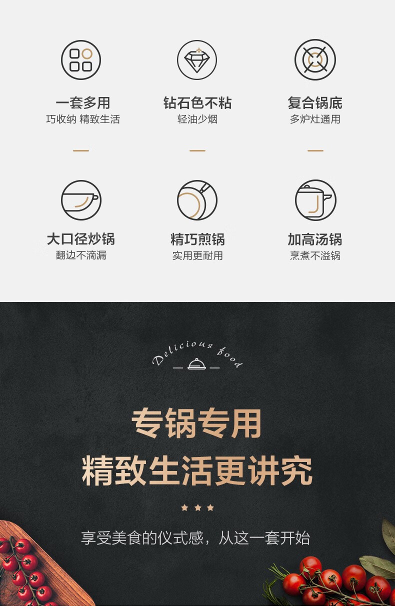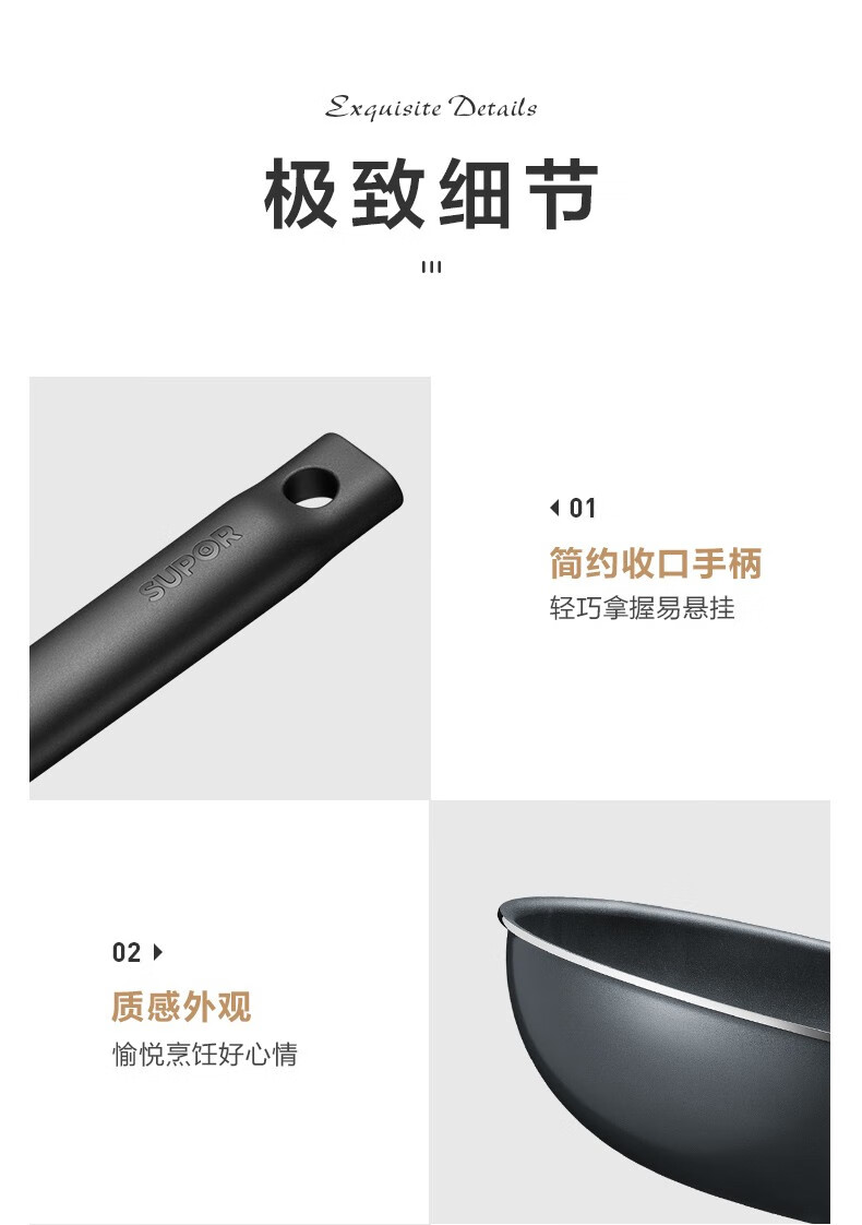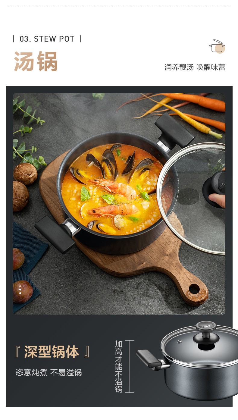 SUPOR wok pot set, pot combination kitchen utensils, soup pot, frying pan, kitchen complete set of household pots and utensils, wok, six-piece set (decoction, soup, steaming, knife, spatula)