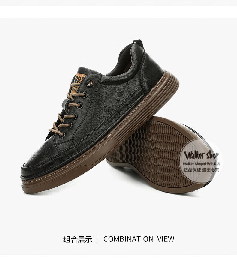 Walker Shop Casual Shoes Men's Breathable Elastic Strap High Quality Cowhide Business Shoes Trendy Shoes Casual Leather Shoes Black 41