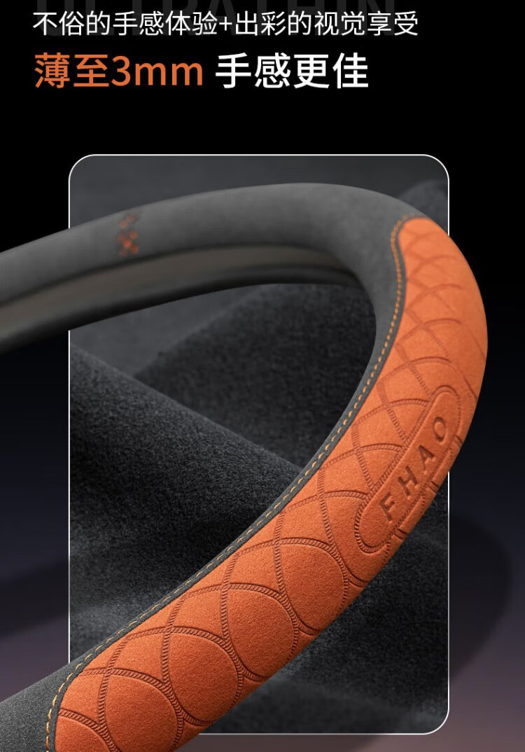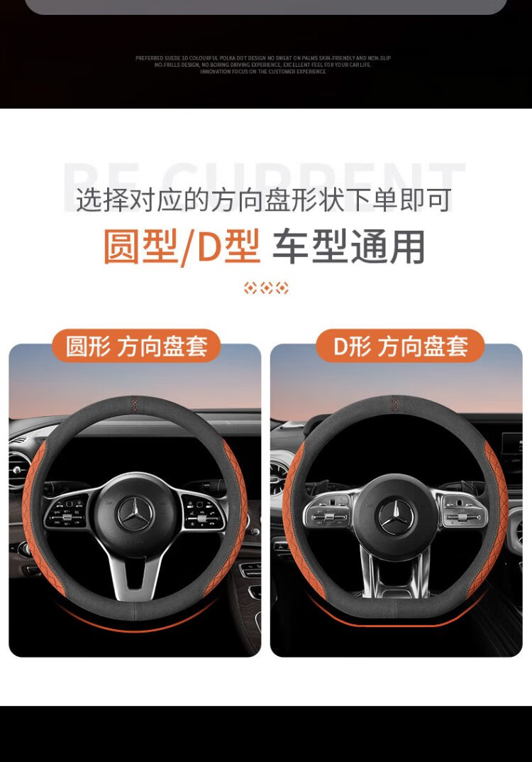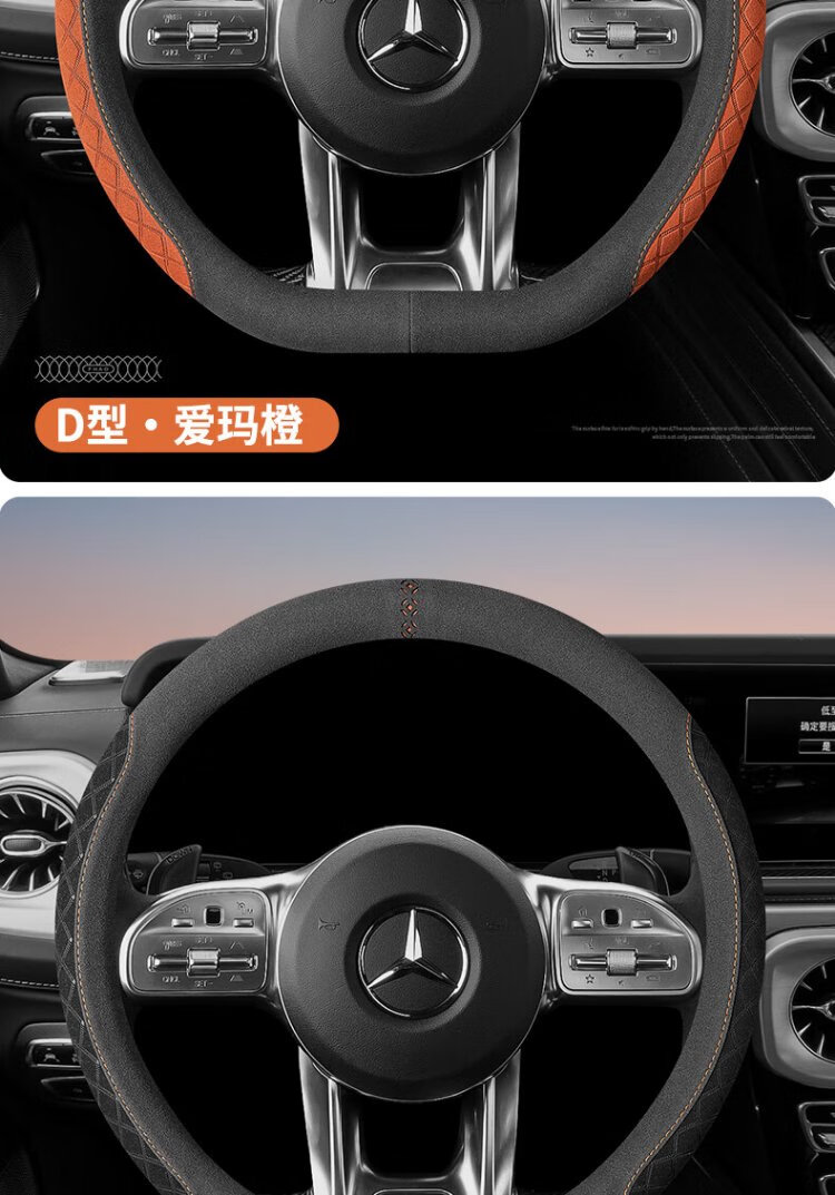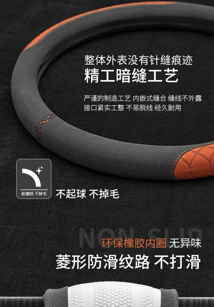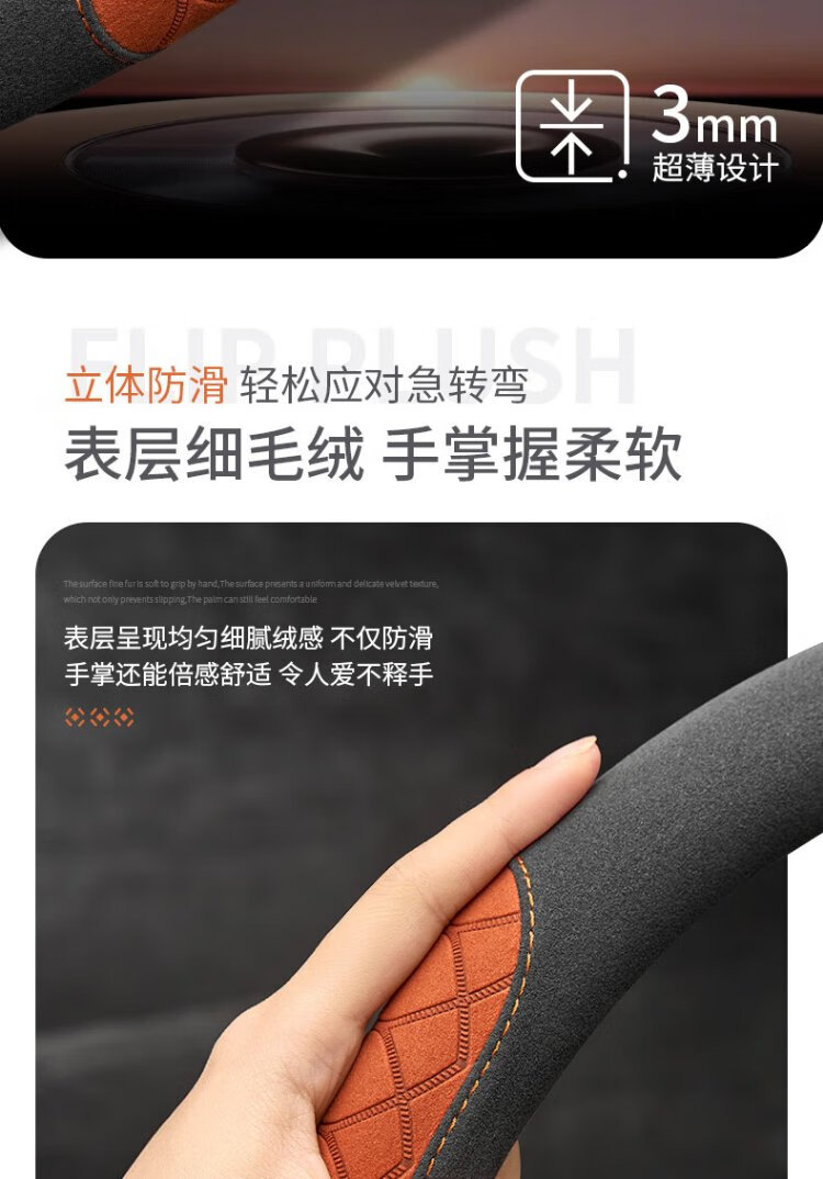 FHAO car steering wheel cover round D-shaped non-slip sweat-absorbent short-pile plush suede suede leather handlebar cover for all seasons