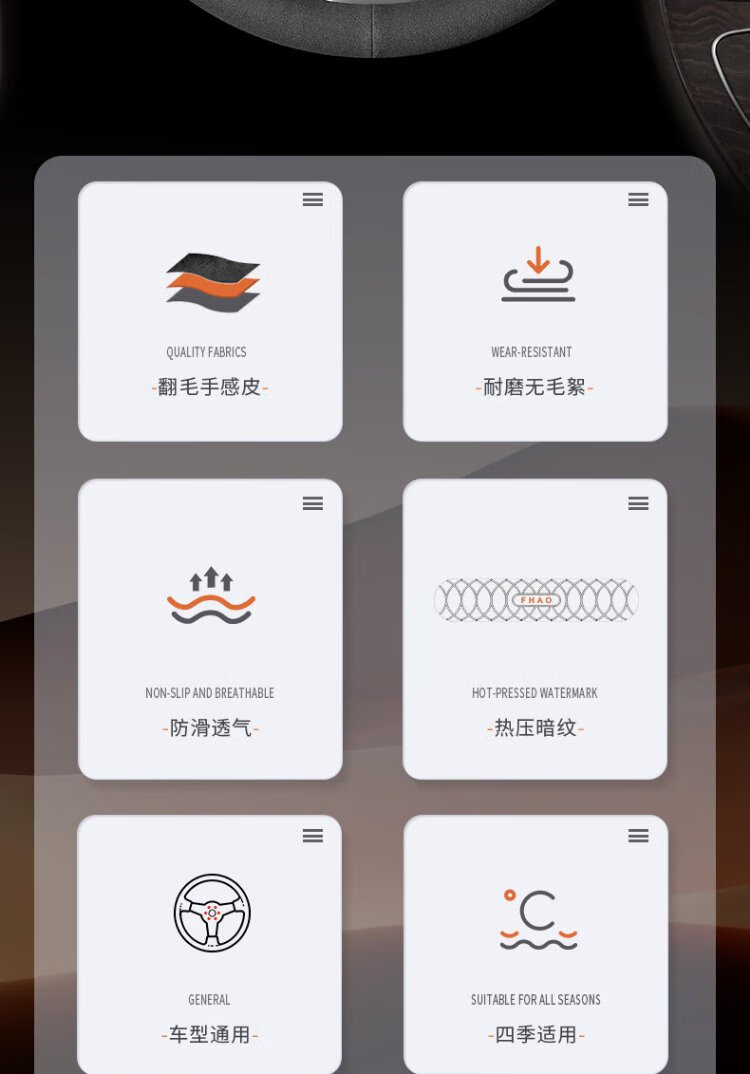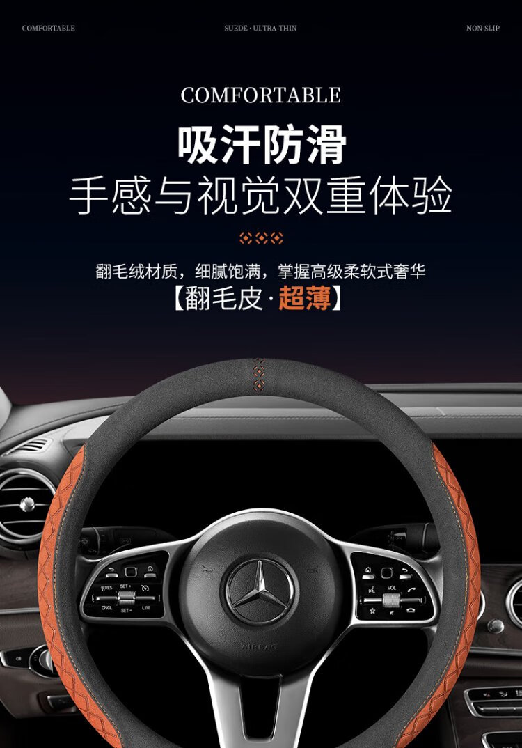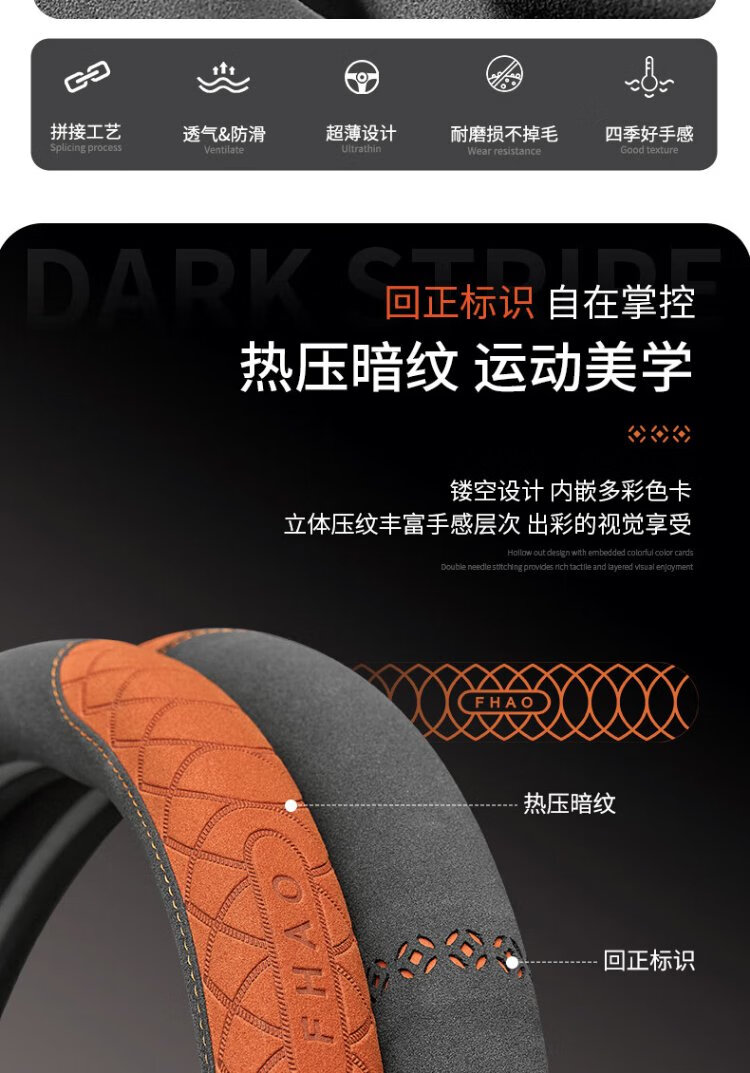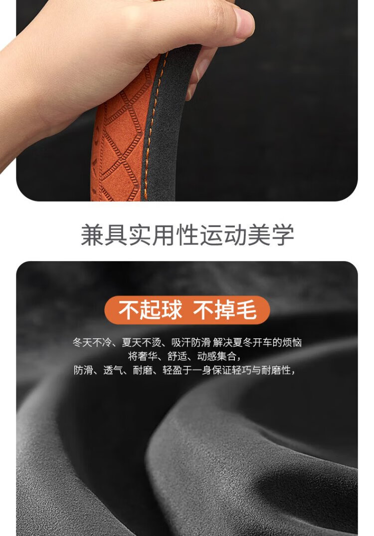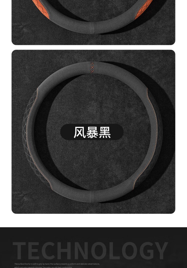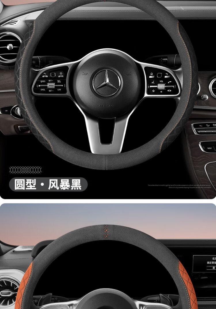 FHAO car steering wheel cover round D-shaped non-slip sweat-absorbent short-pile plush suede suede leather handlebar cover for all seasons