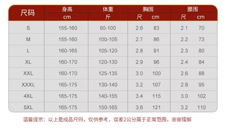 China (cm) 160-165/84-86 165-170 / 88-90 167-172 / 92-96 168-173 / 98-102 170-176 / 106-110