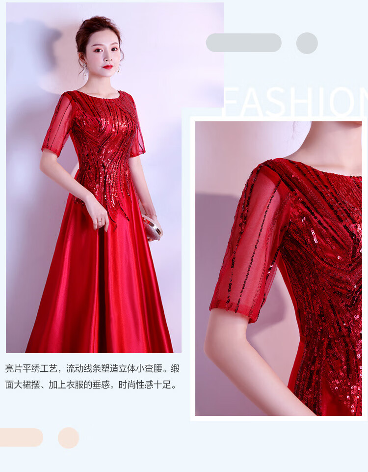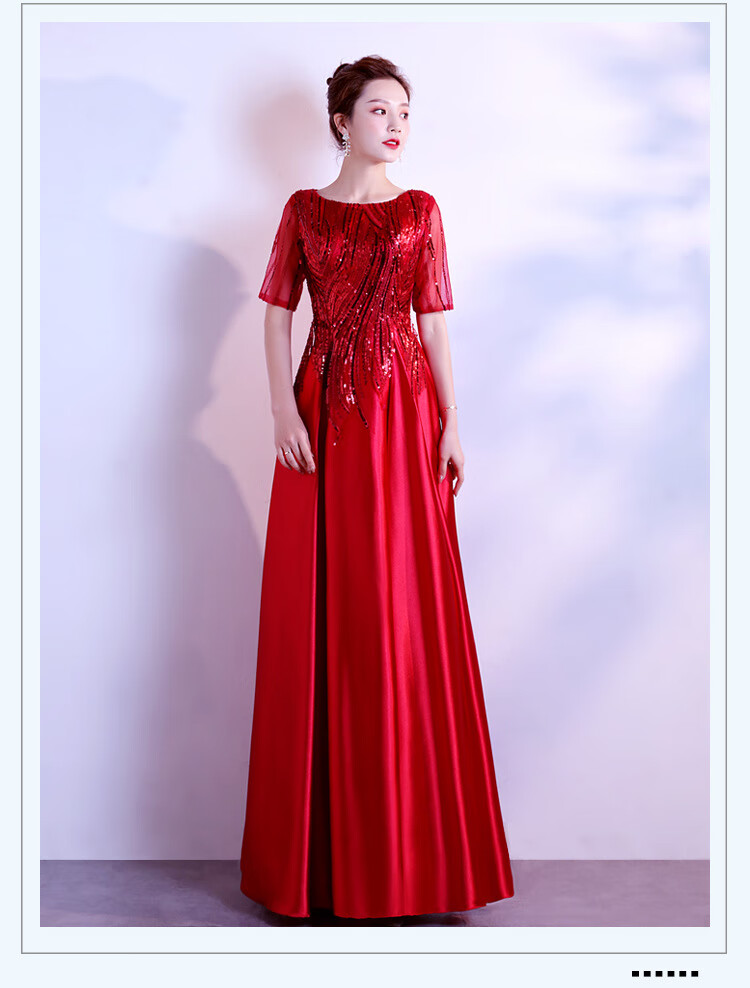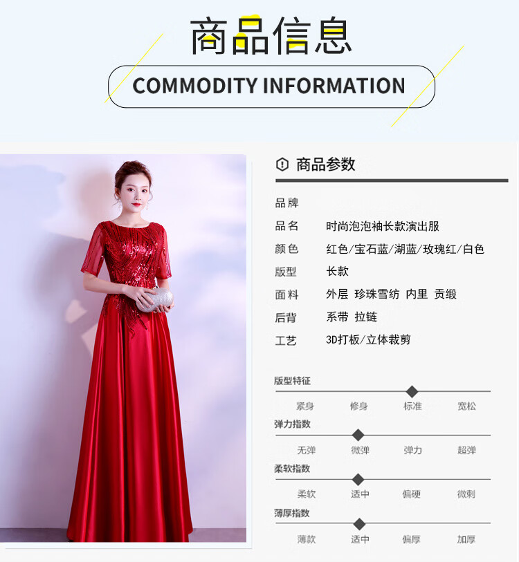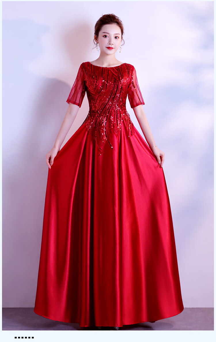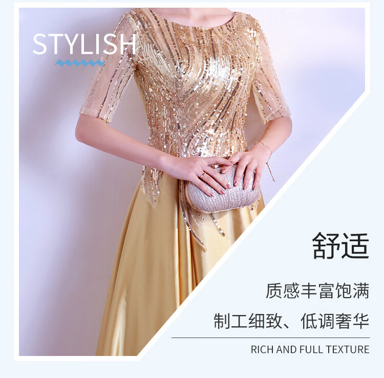 Pugos New Cantata Performance Clothing Women's Group Long Skirt Stage Chorus Clothing Student Host Poetry Recitation Evening Dress Champagne Color Middle-aged and Elderly Chorus Clothing XL